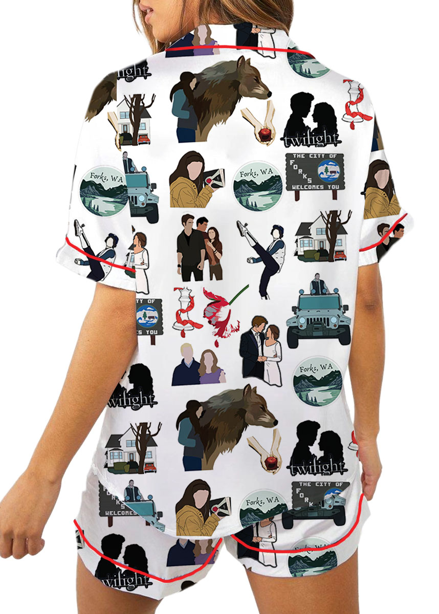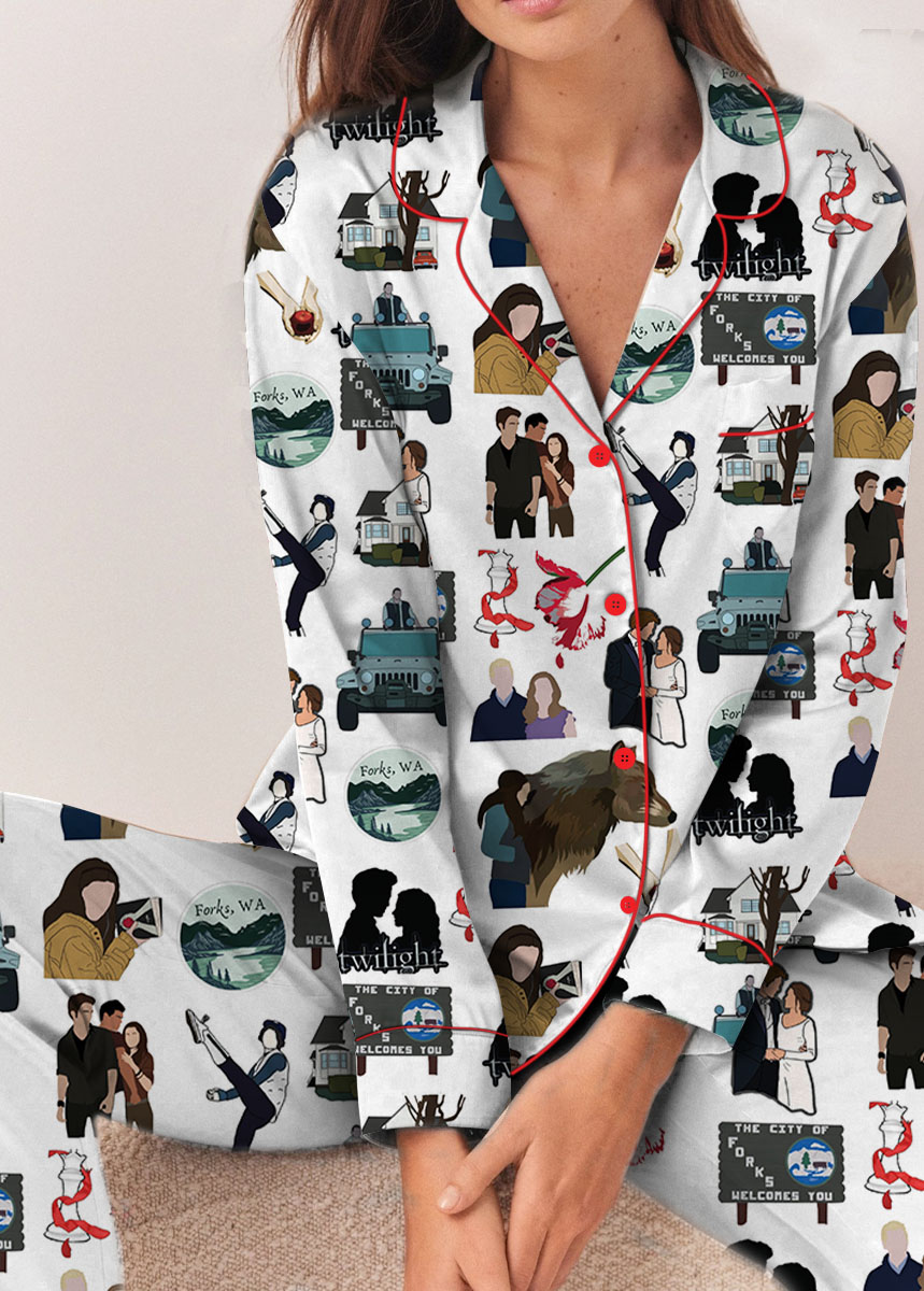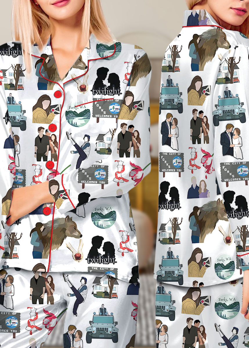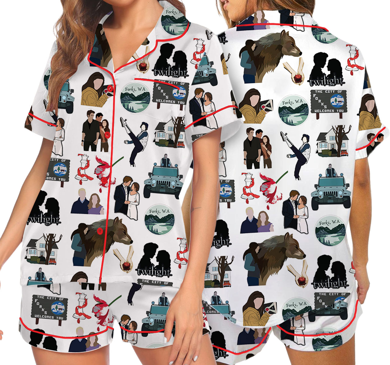 Twilight Inspired City Of Forks Satin Pajamas Set For Women