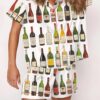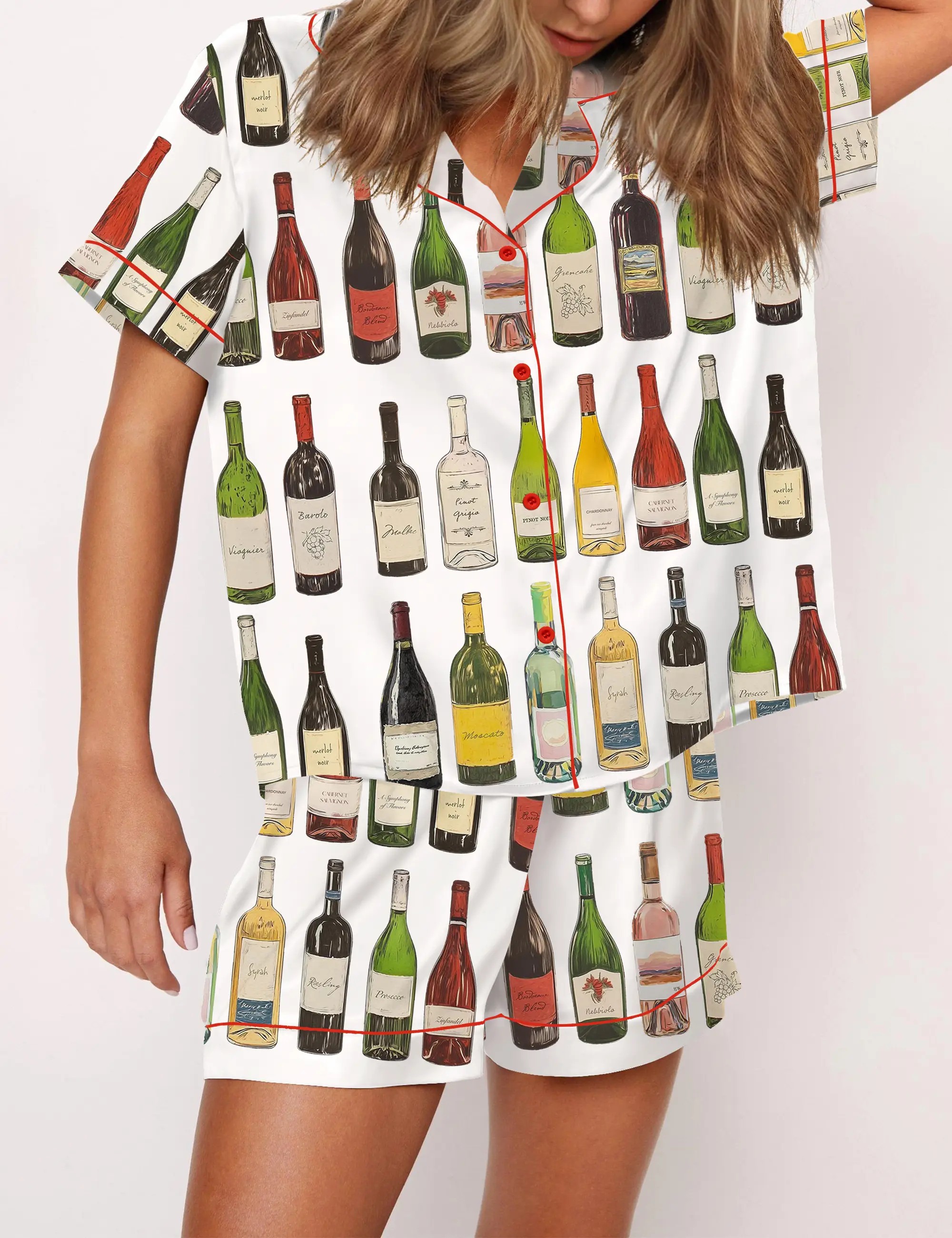 Vintage Wine Bottles Silky Satin Pajama Set For Women