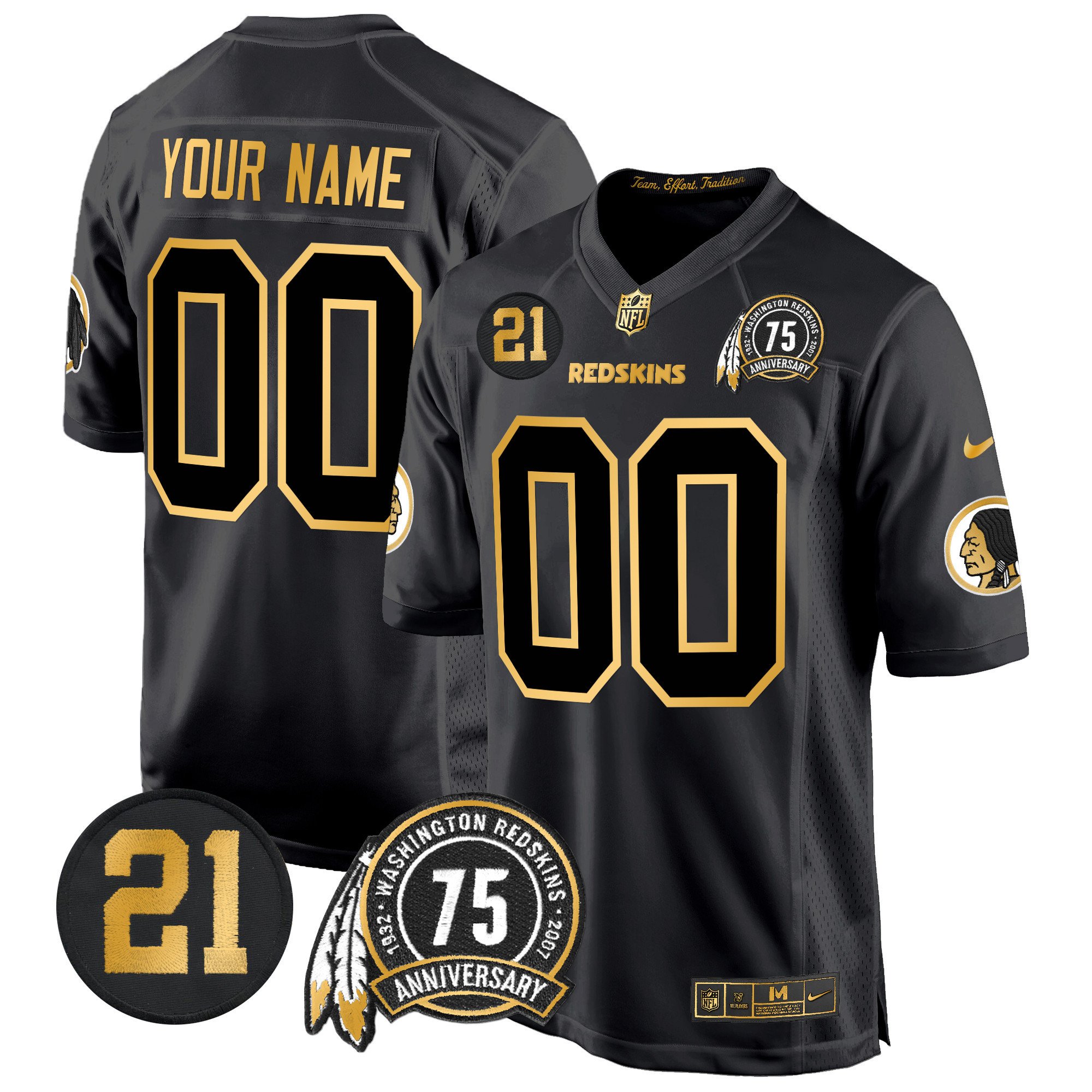 Washington Redskins 75th & Sean Taylor Patch Gold Game Custom Jersey – All Stitched