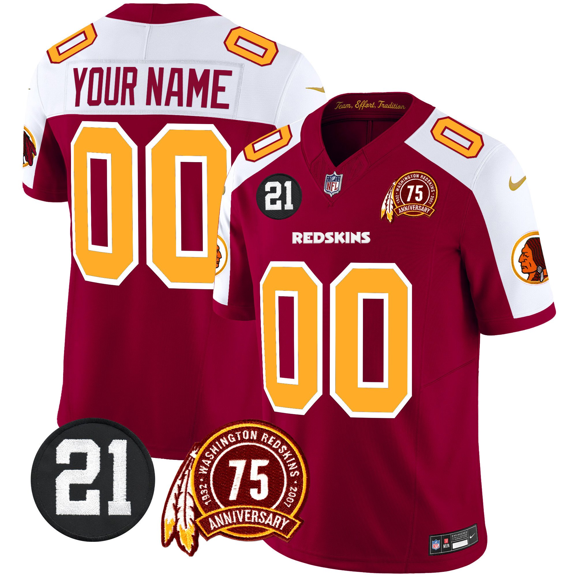 Washington Redskins 75th & Sean Taylor Patch Vapor Limited Custom Jersey – All Stitched
