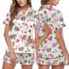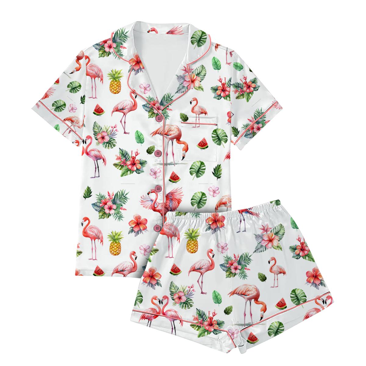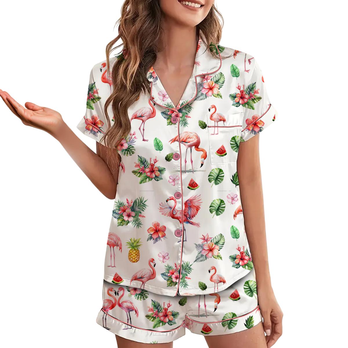 Watercolor Flamingo Silky Satin Pajama Set For Women