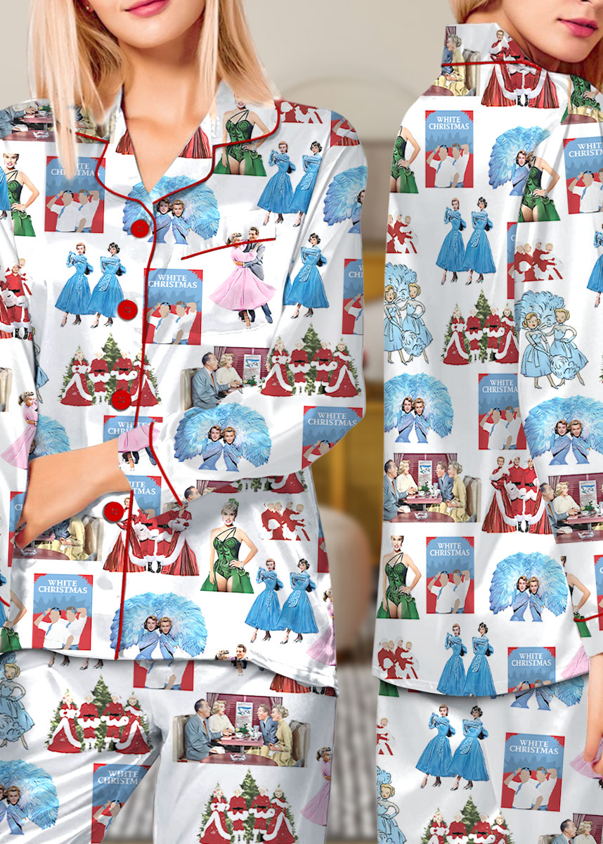 White Christmas Sisters Satin Pajama Set For Women