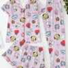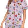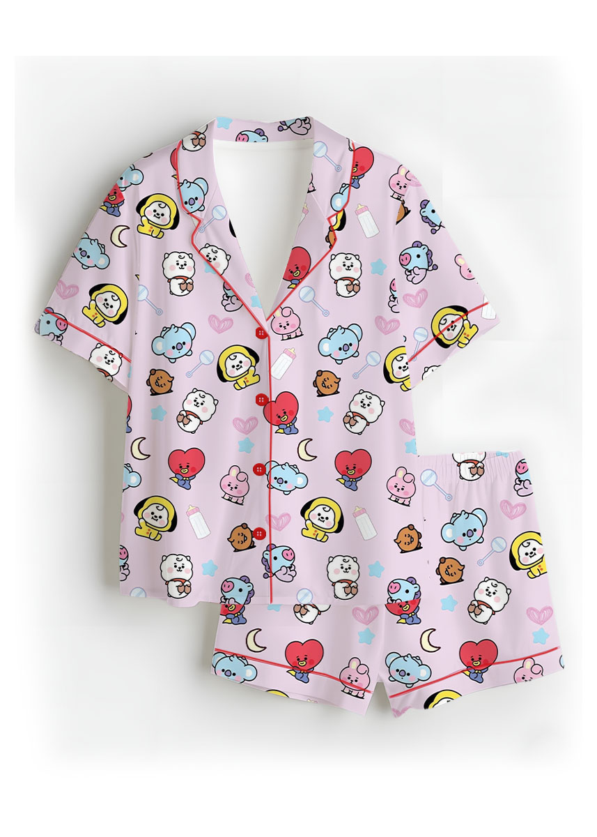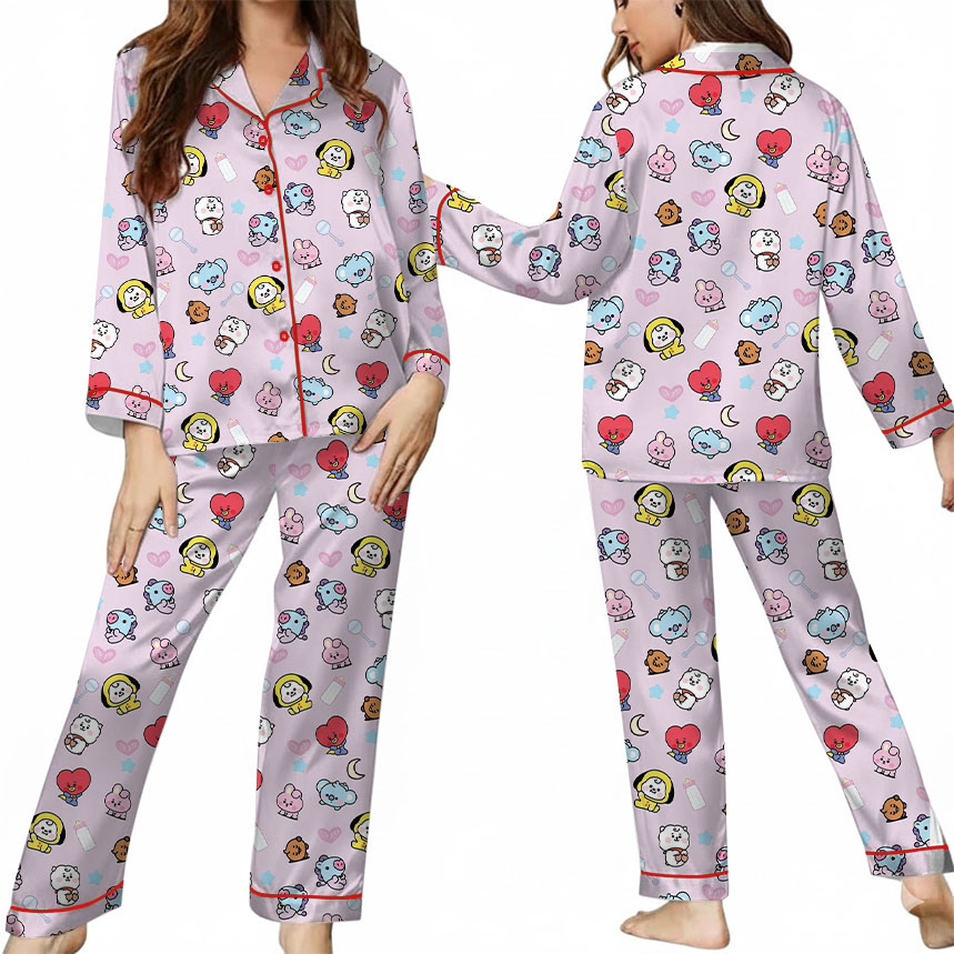 Women’s BT21 K-Pop Music Satin Pajamas Set For Women, Pink Color, US Size S-5XL