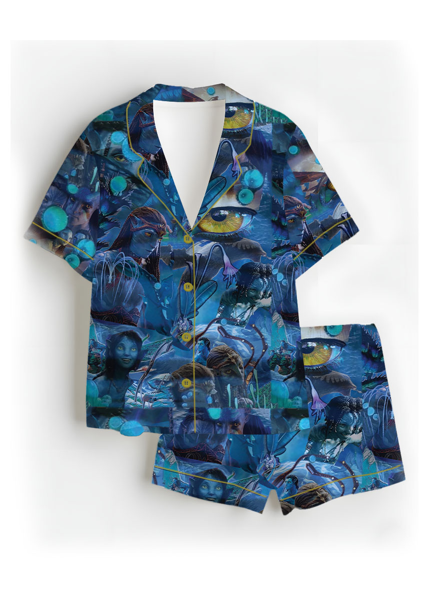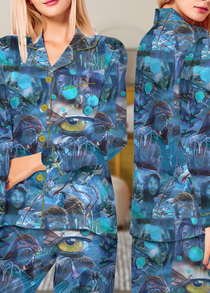 Women’s Avatar The Way Of Water Satin Pajamas Set For Women, Dark Ocean Blue Color, US Size S-5XL