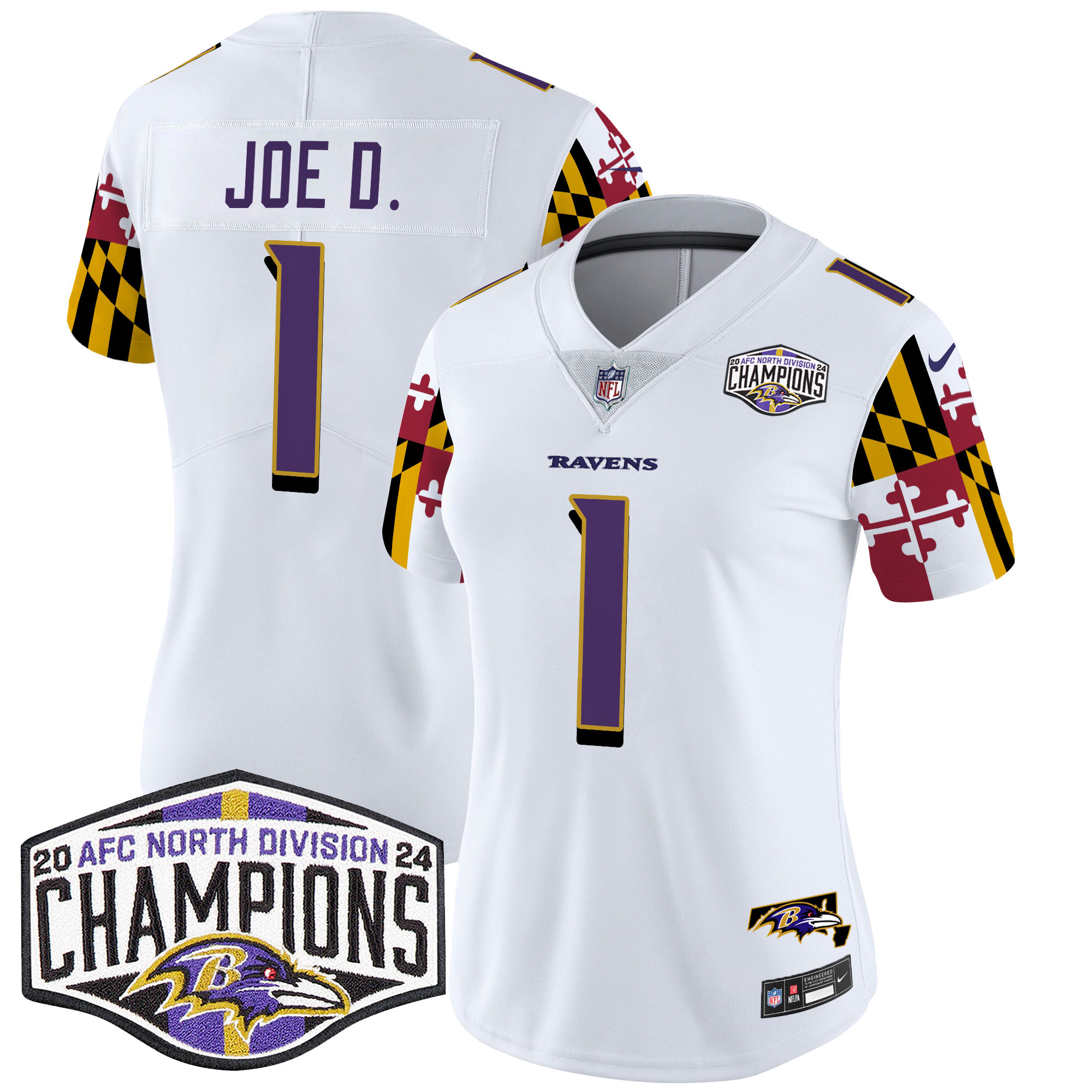 Women’s Baltimore Ravens Maryland Flag 2024 AFC North Division Champions Patch Vapor Limited Jersey – All Stitched