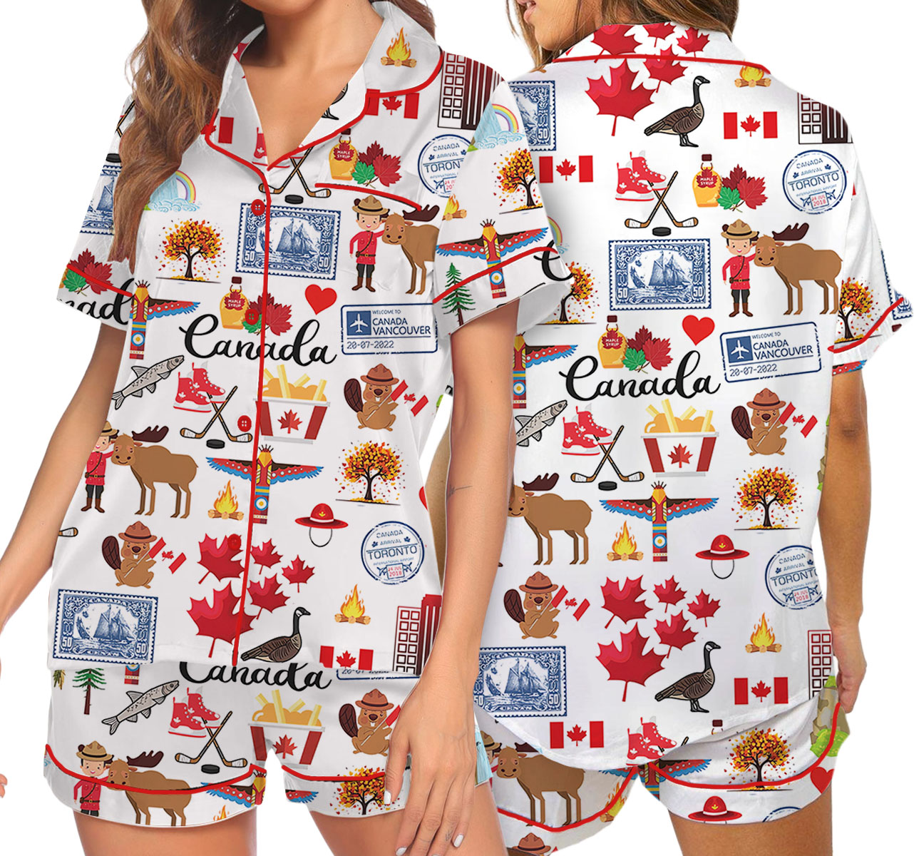 Women’s Canada Travel Satin Pajamas Set For Women
