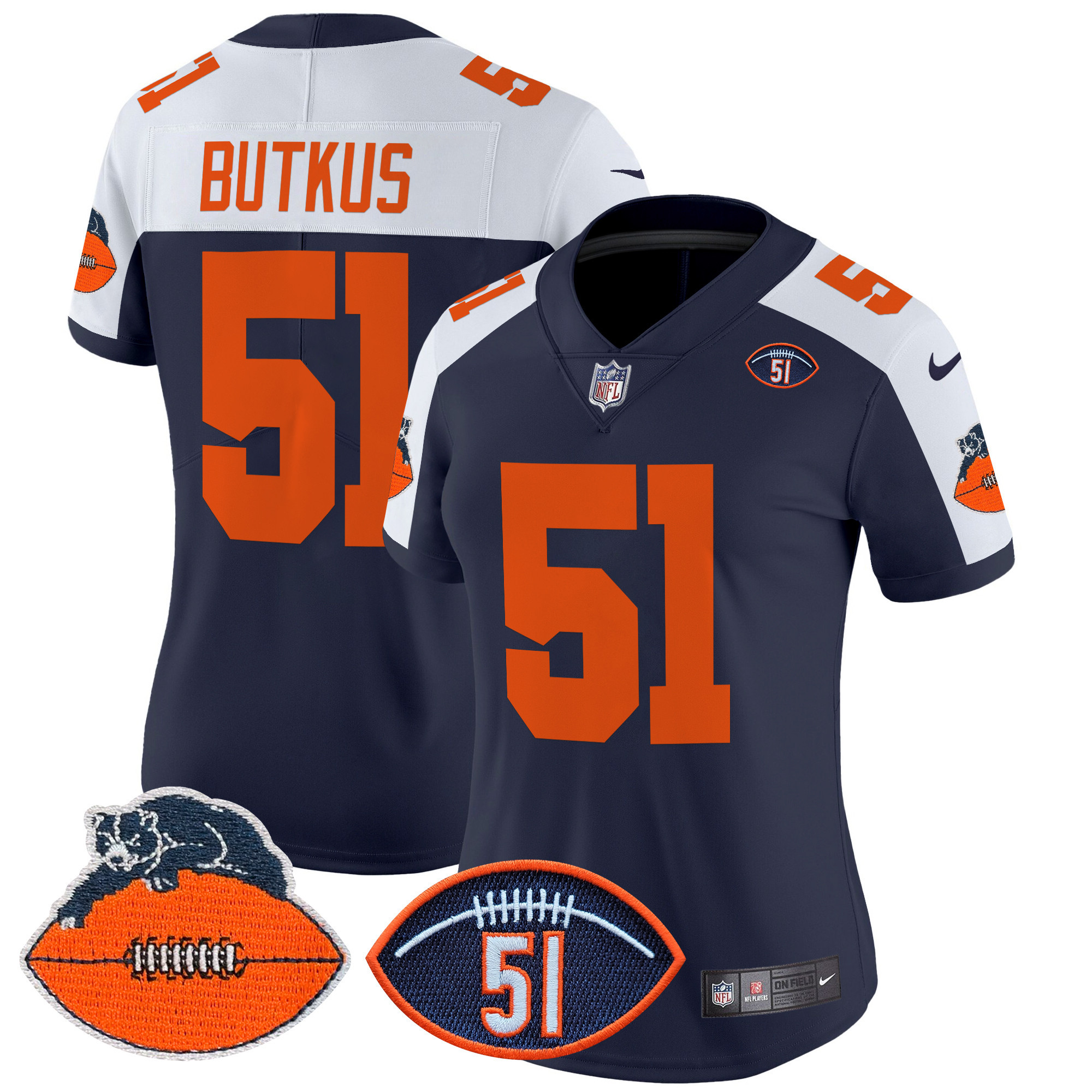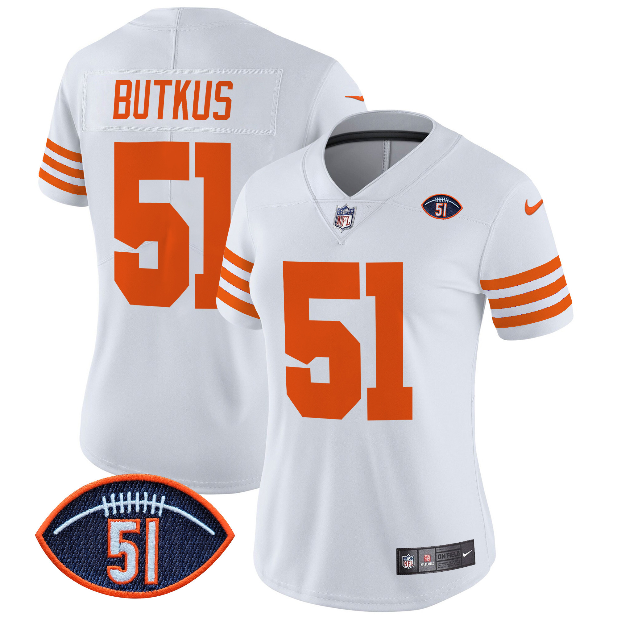Women’s Chicago Bears Dick Butkus Patch Throwback Vapor Limited Jersey – All Stitched