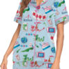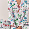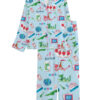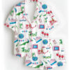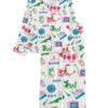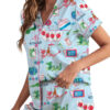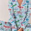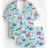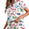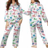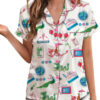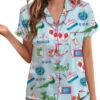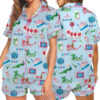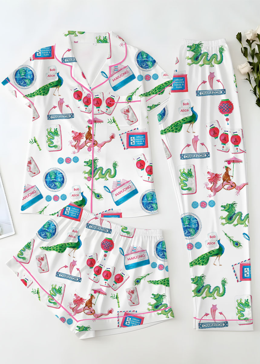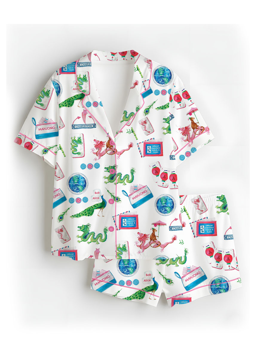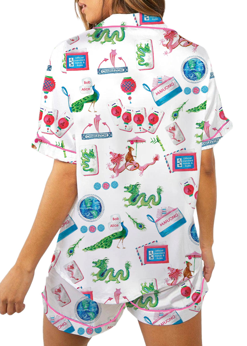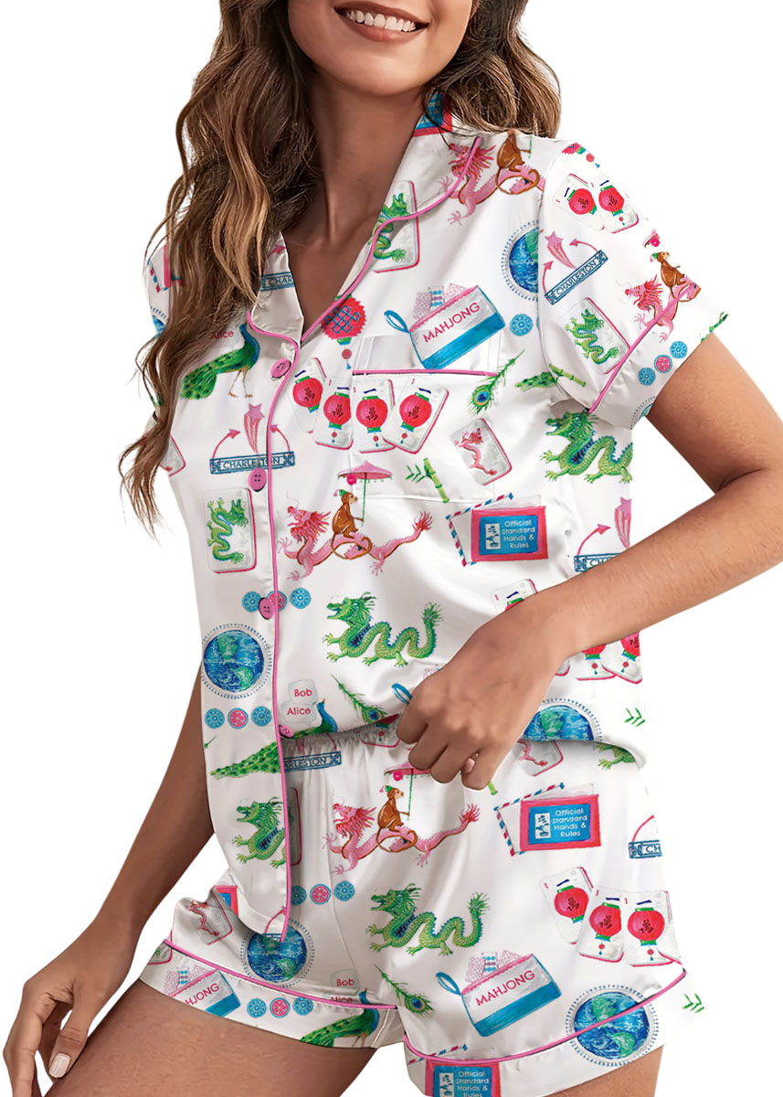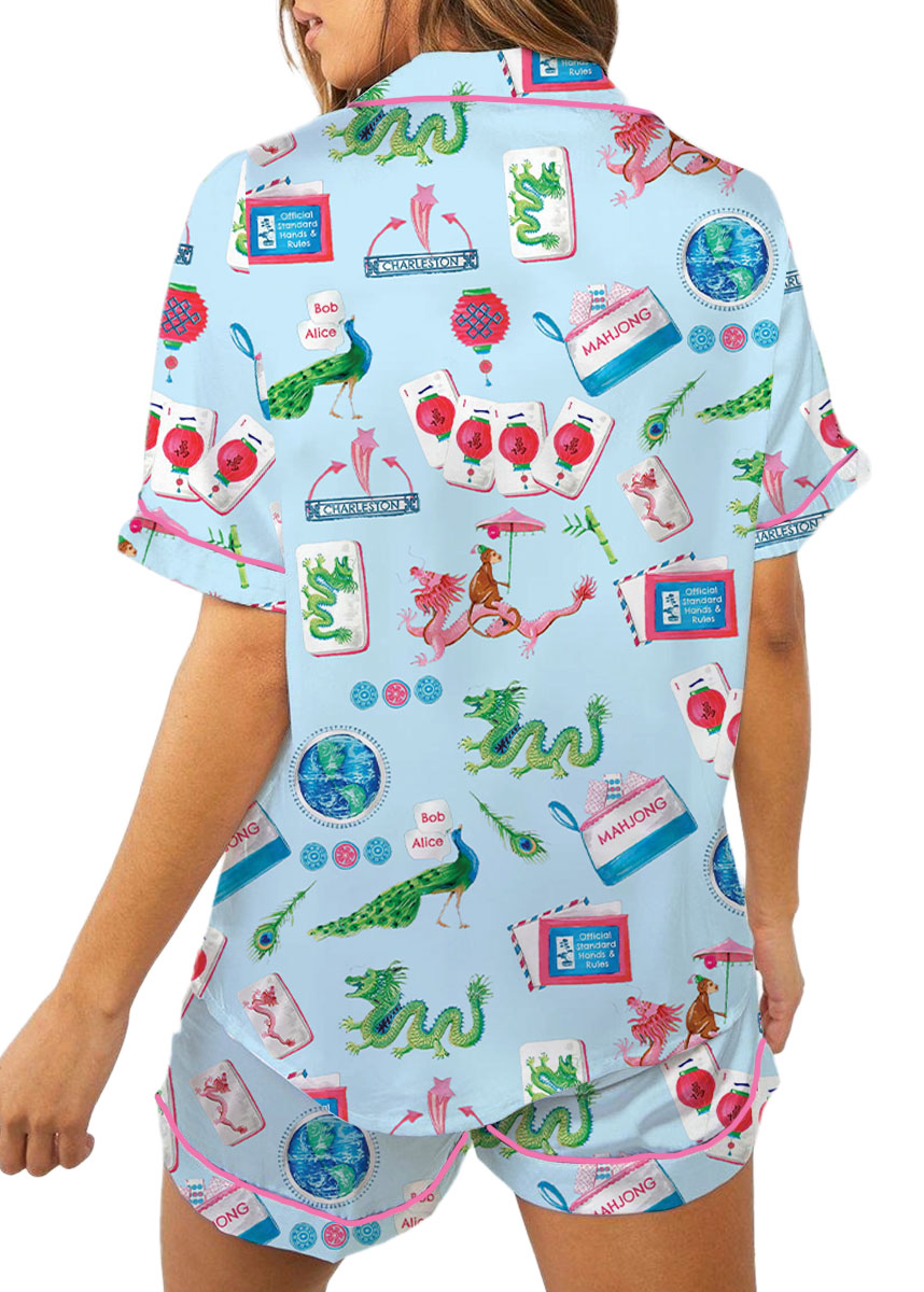 Women’s Chinoiserie Mahjong Satin Pajamas Set For Women, White And Light Blue Color, US Size S-5XL