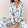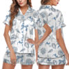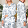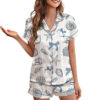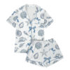 Women’s Coquette Seashell Beach Coastal Summer Vibes Print Satin Pajama Set