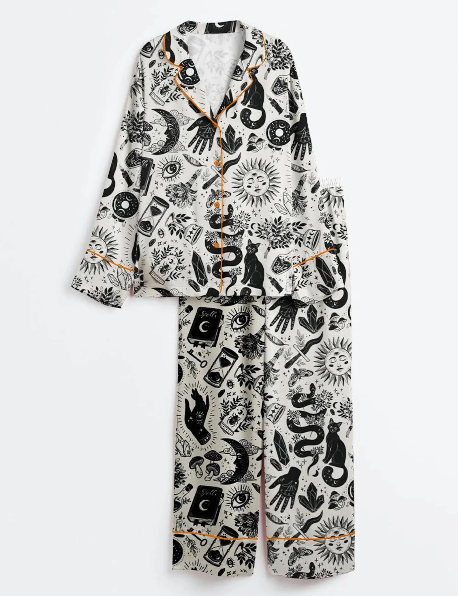 Women’s Cute Ghosts And Pumpkins Halloween Satin Pajama Set
