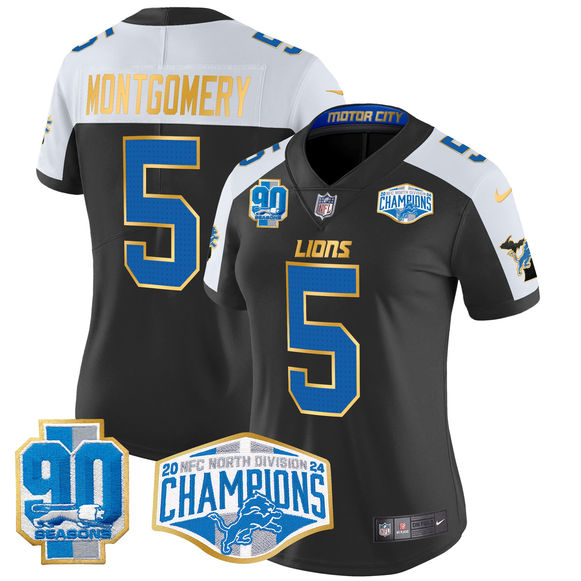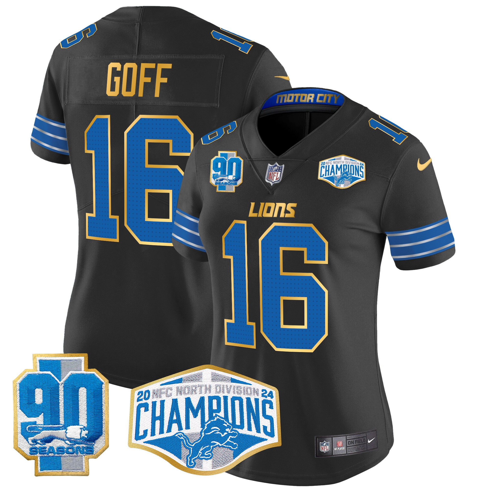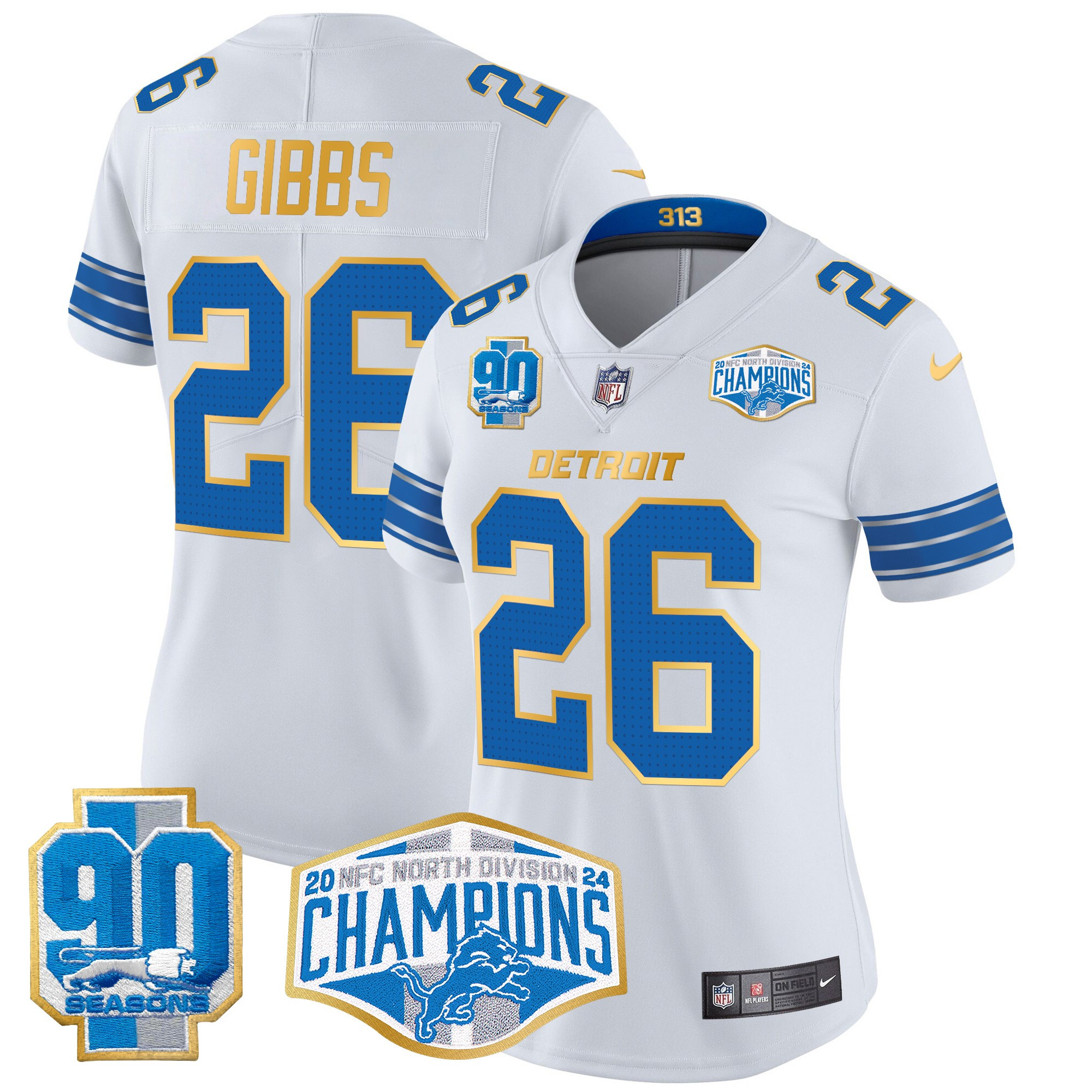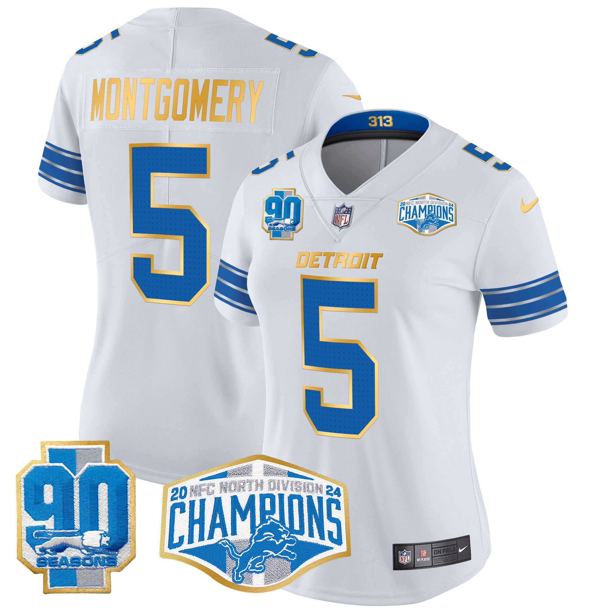 Women’s Detroit Lions 2024 NFC North Division Champions Patch Gold Trim Vapor Limited Jersey – All Stitched