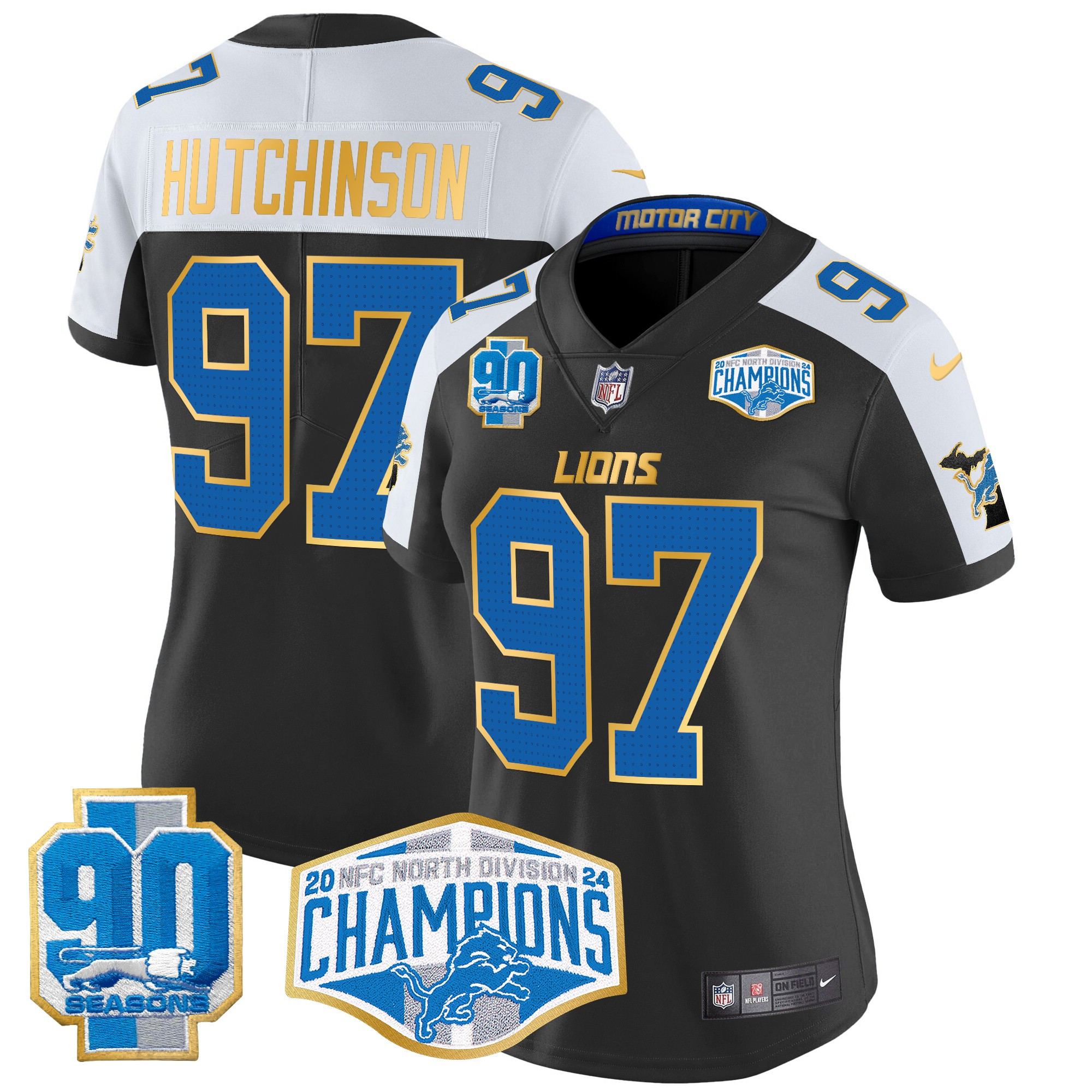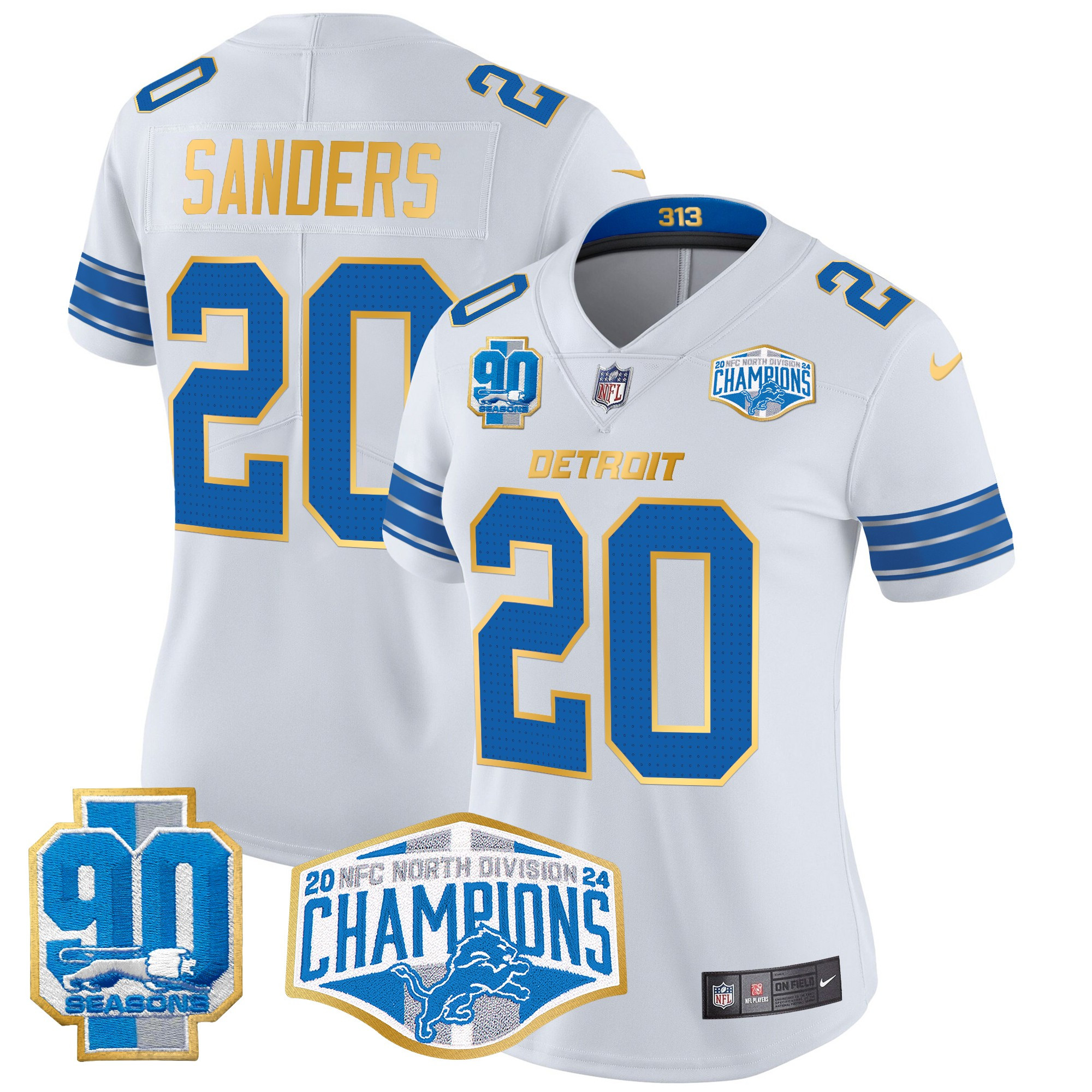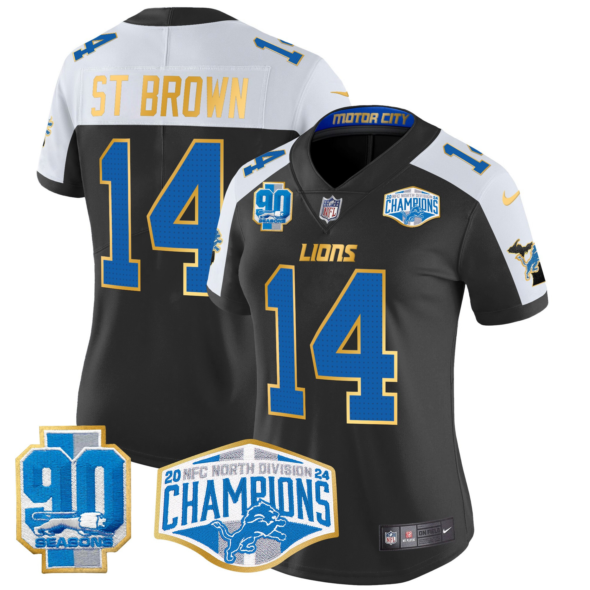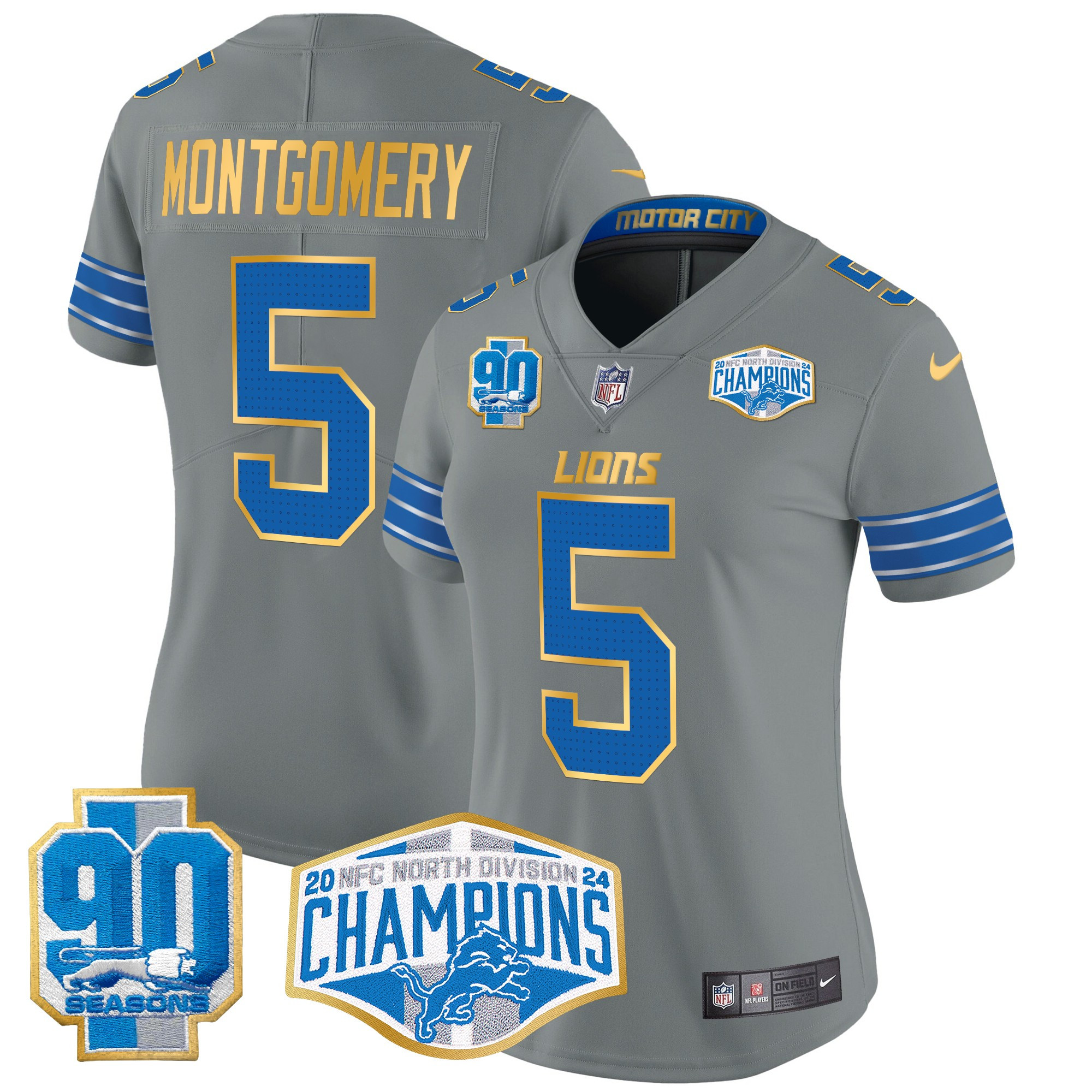 Women’s Detroit Lions 2024 NFC North Division Champions Patch Gold Trim Vapor Limited Jersey – All Stitched