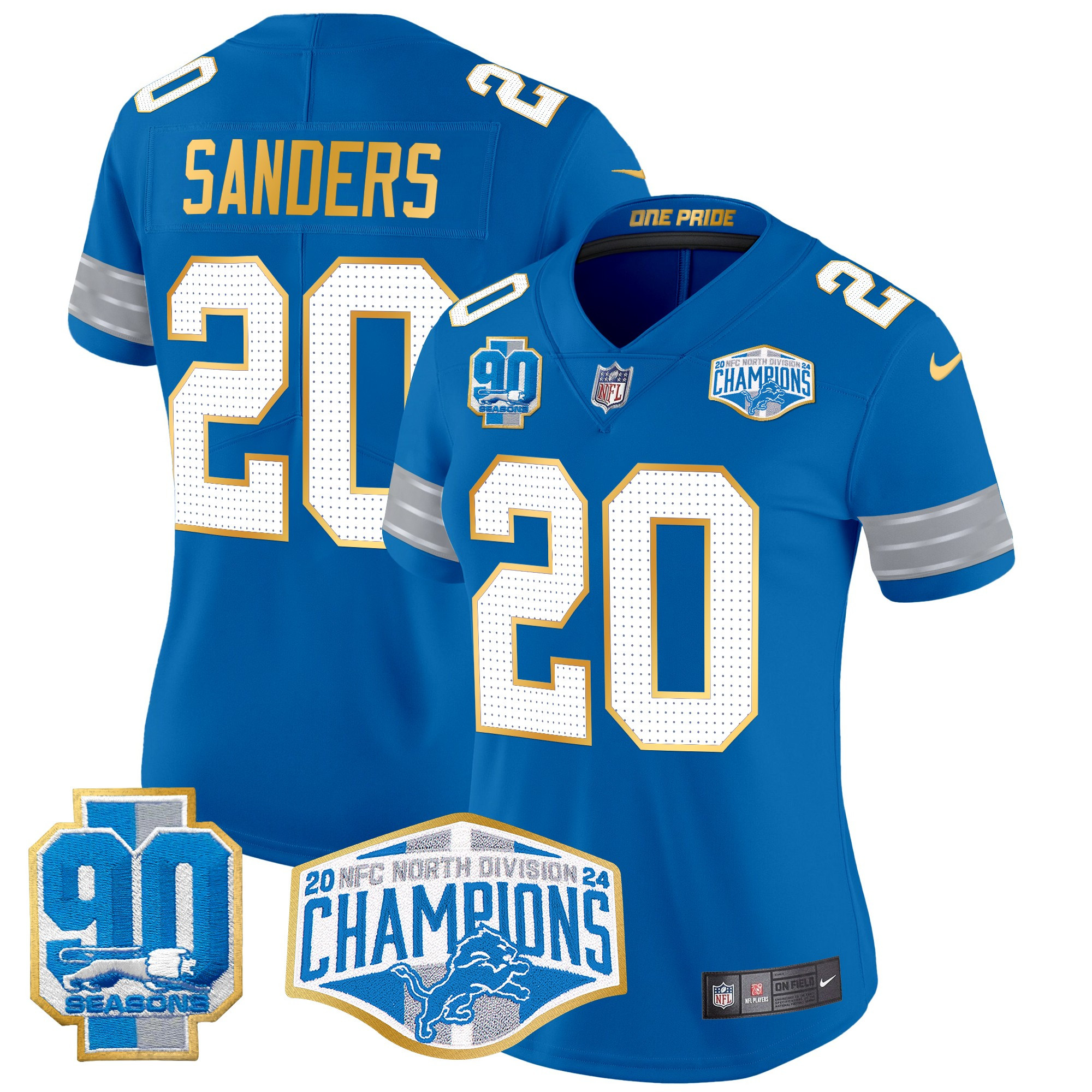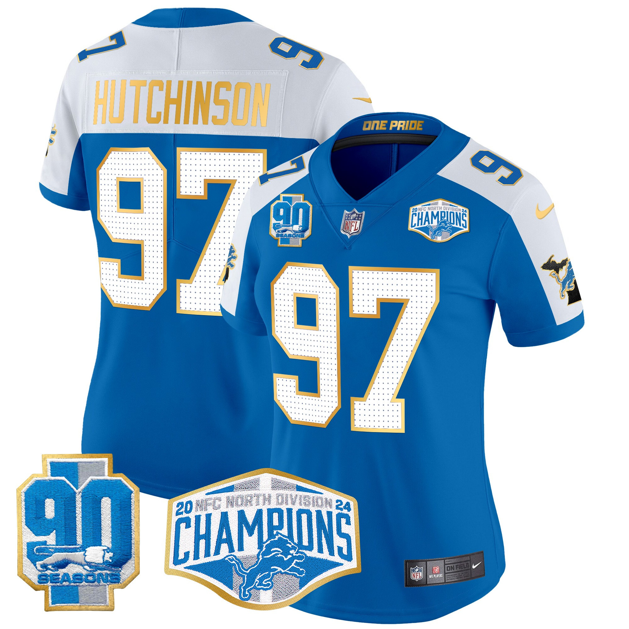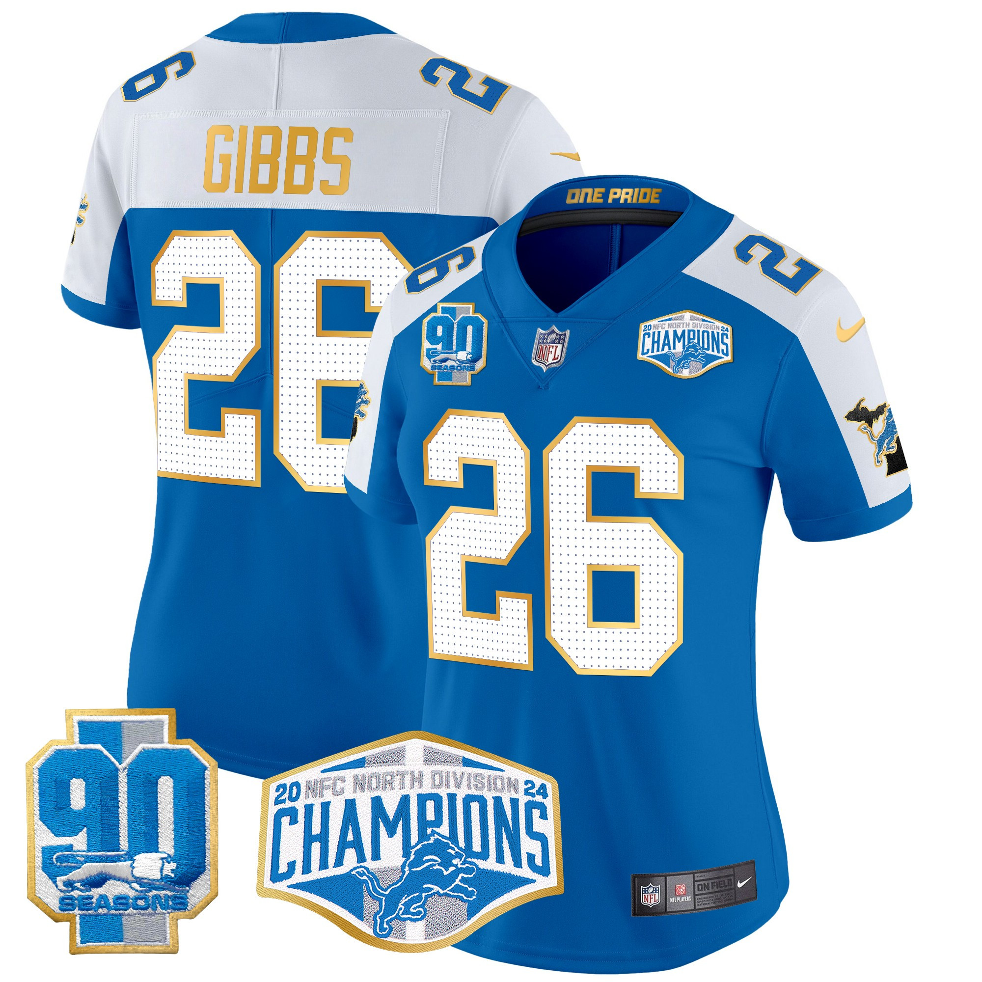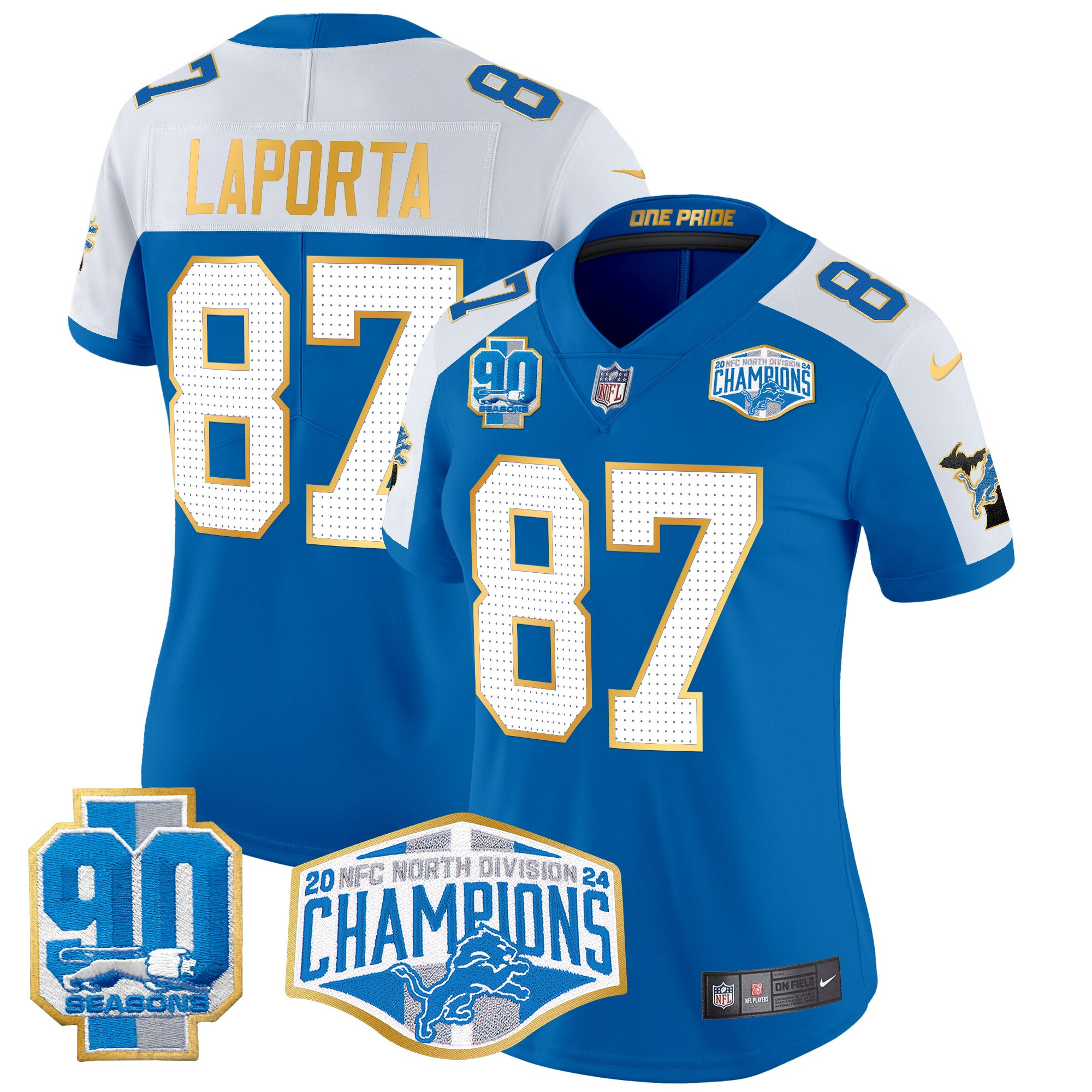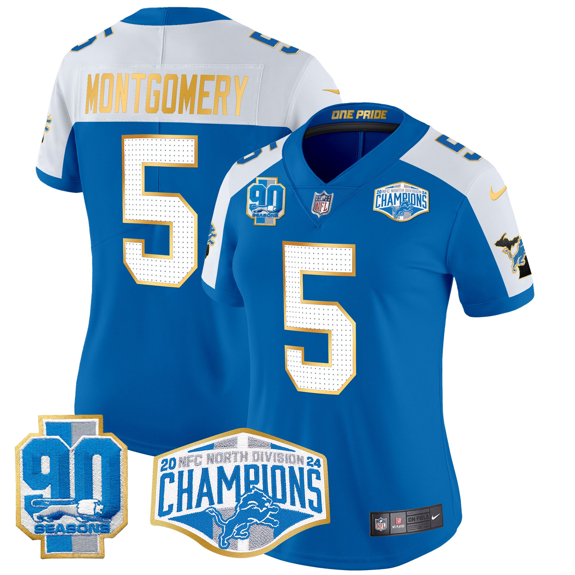 Women’s Detroit Lions 2024 NFC North Division Champions Patch Gold Trim Vapor Limited Jersey – All Stitched