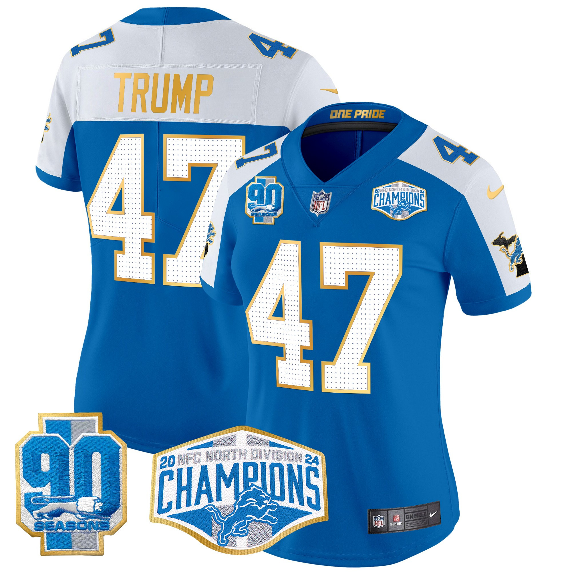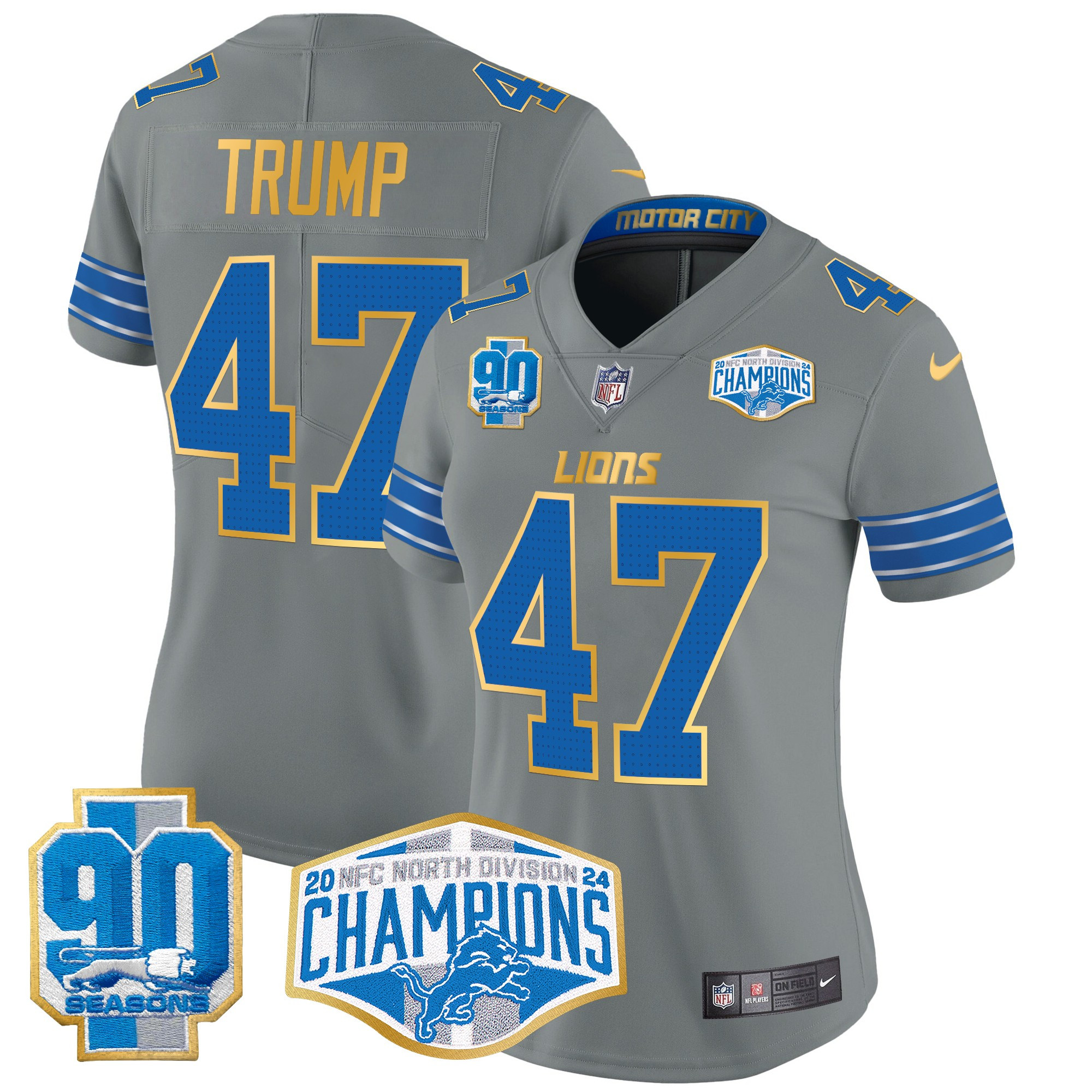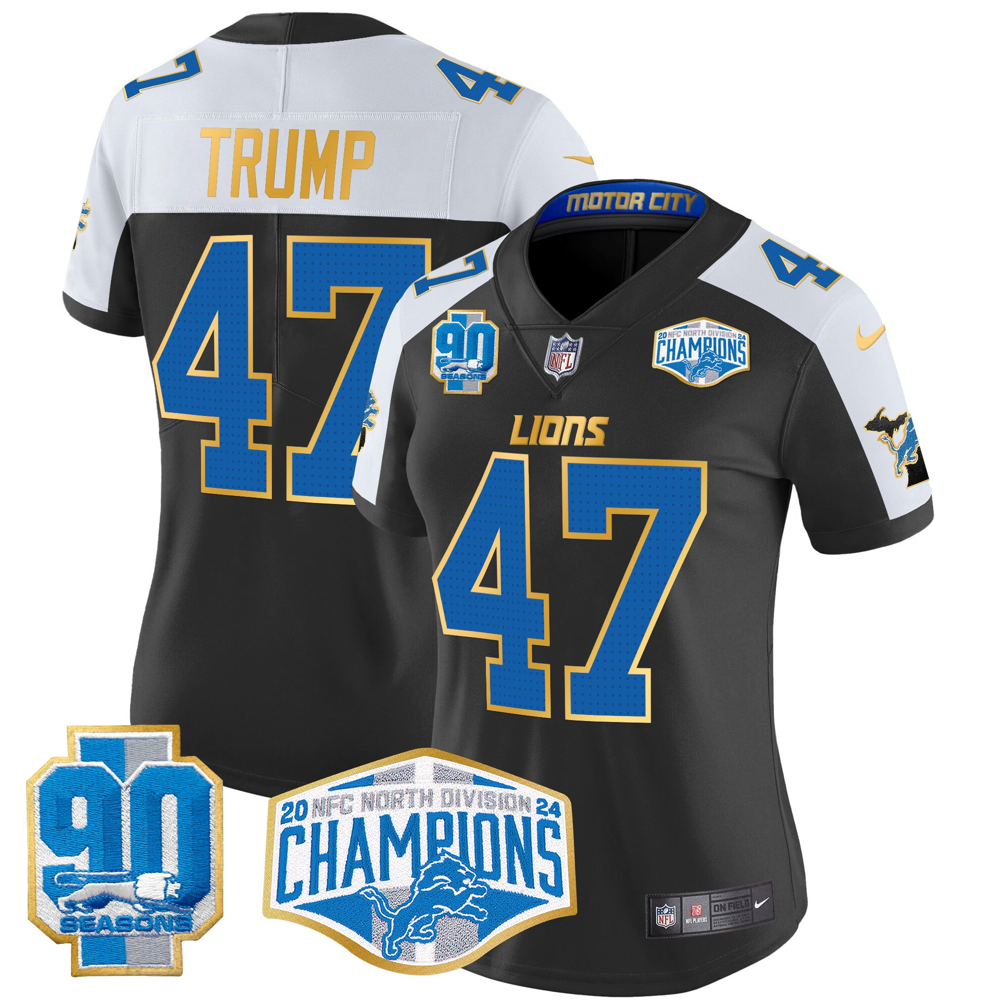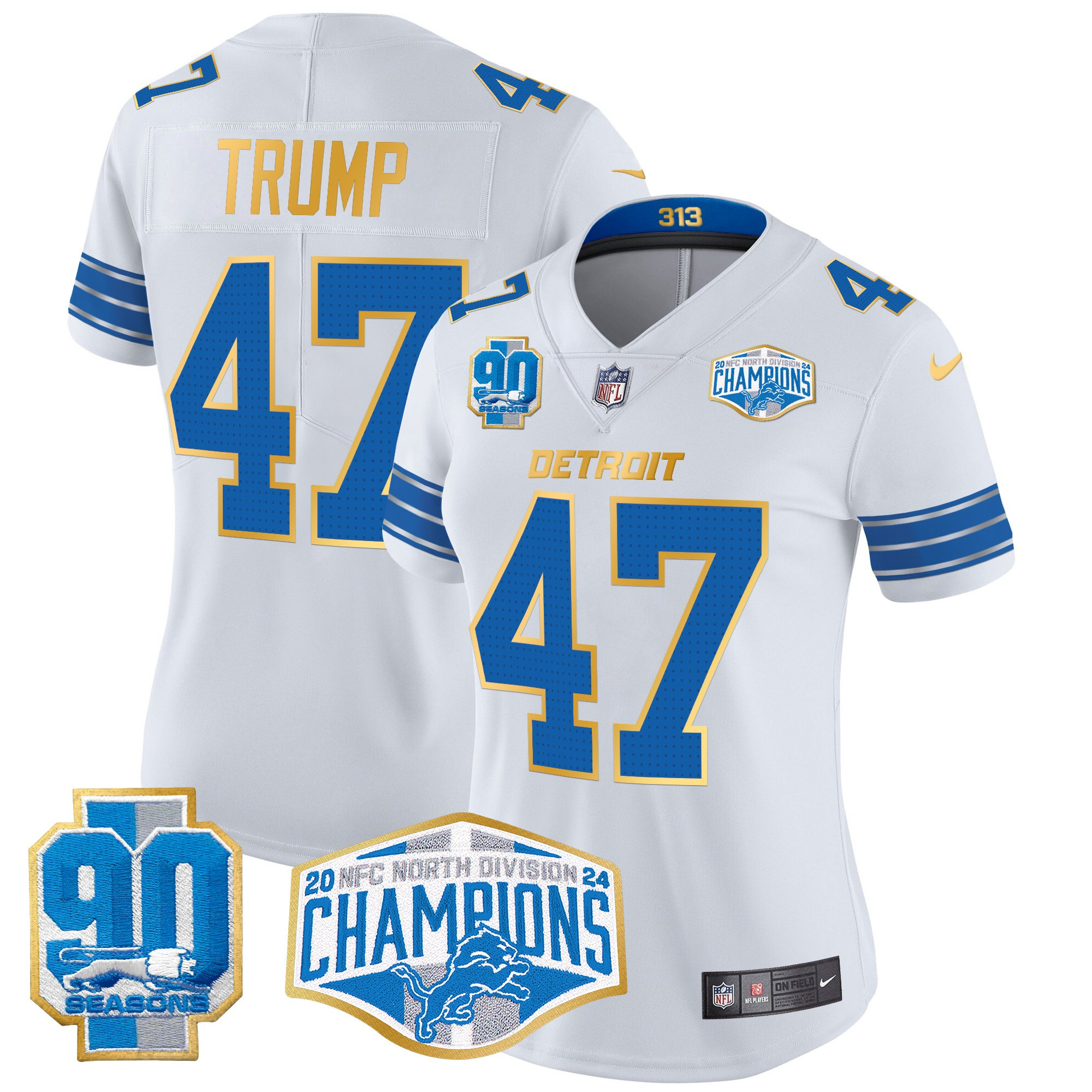 Women’s Detroit Lions 2024 NFC North Division Champions Patch Gold Trim Vapor Limited Jersey – All Stitched