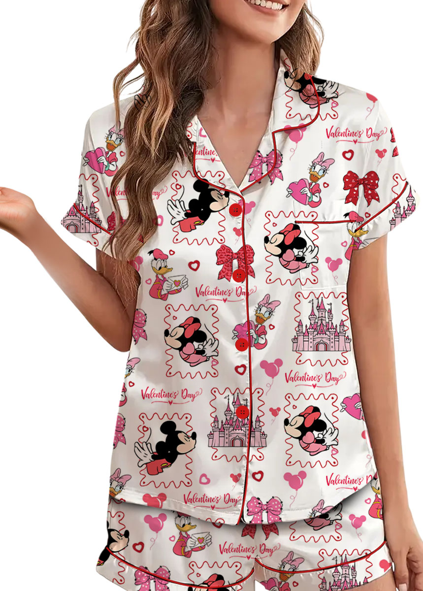 Women’s Disney Minnie Satin Pajamas Set, White Color, US Size S-5XL