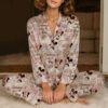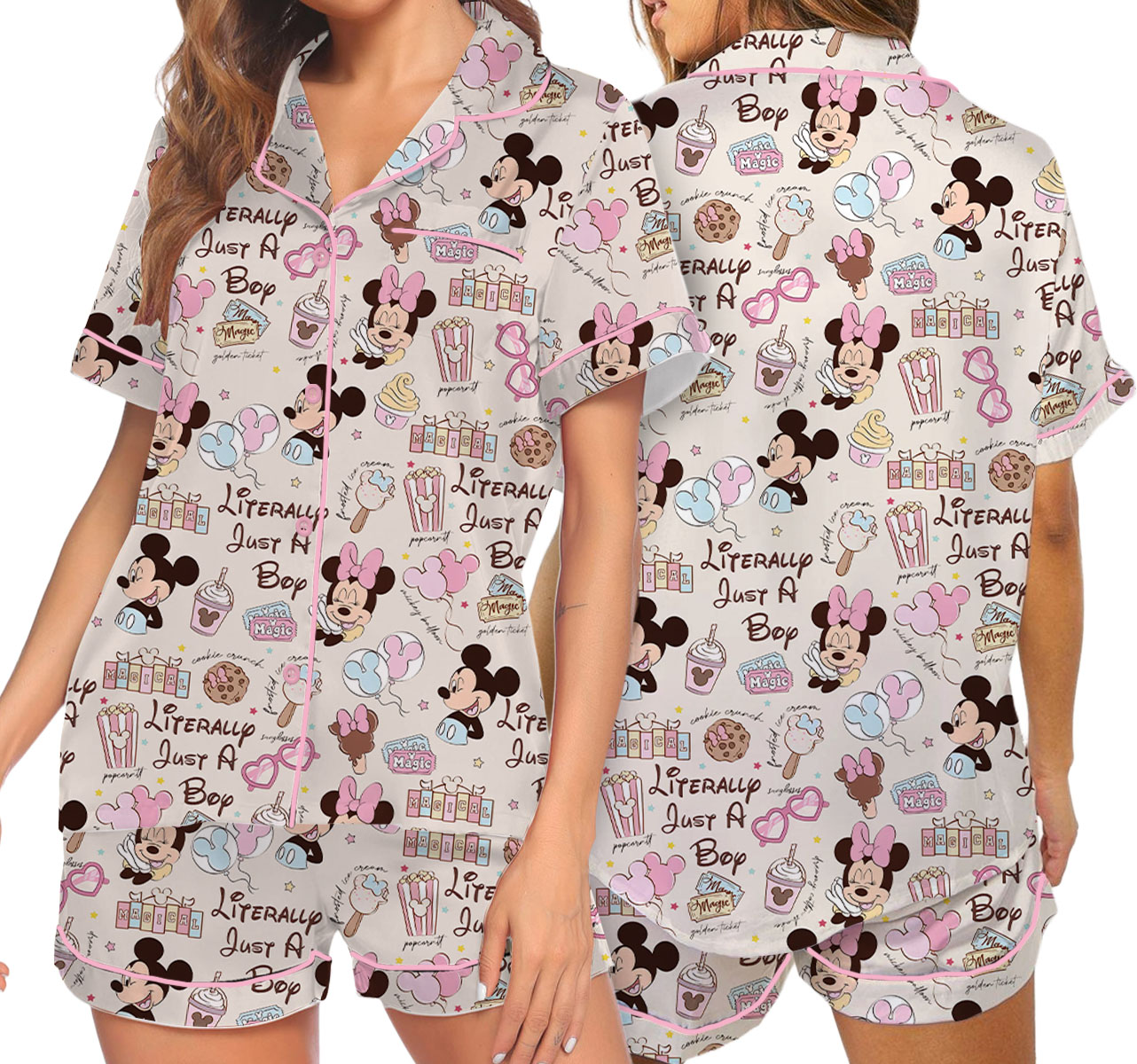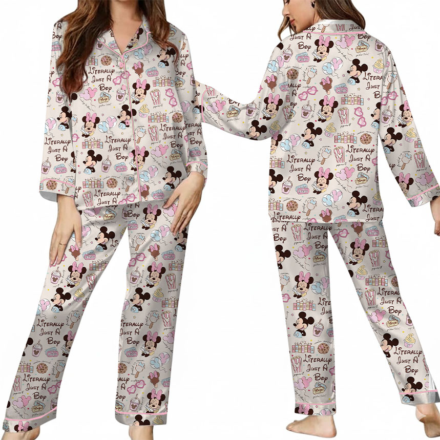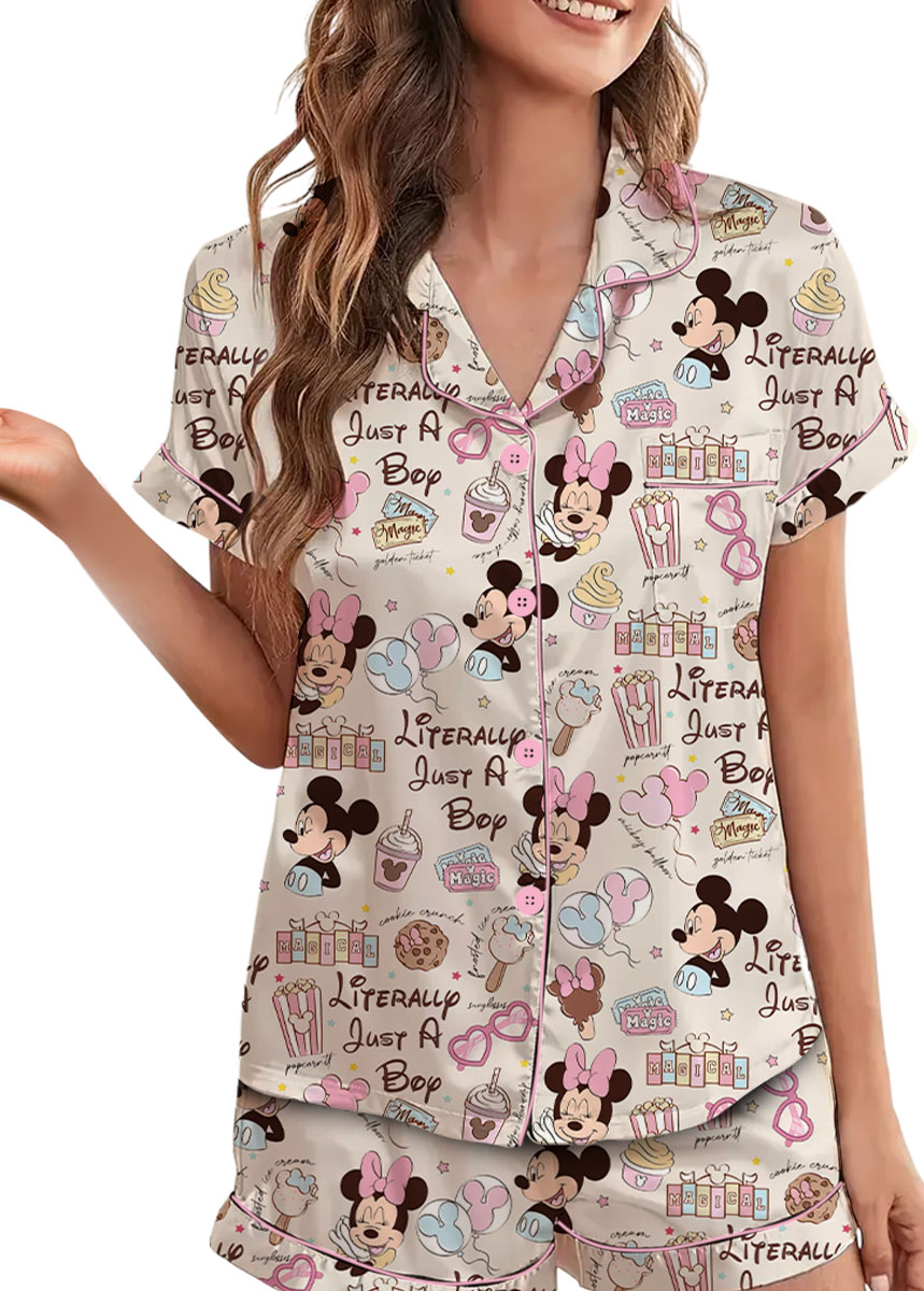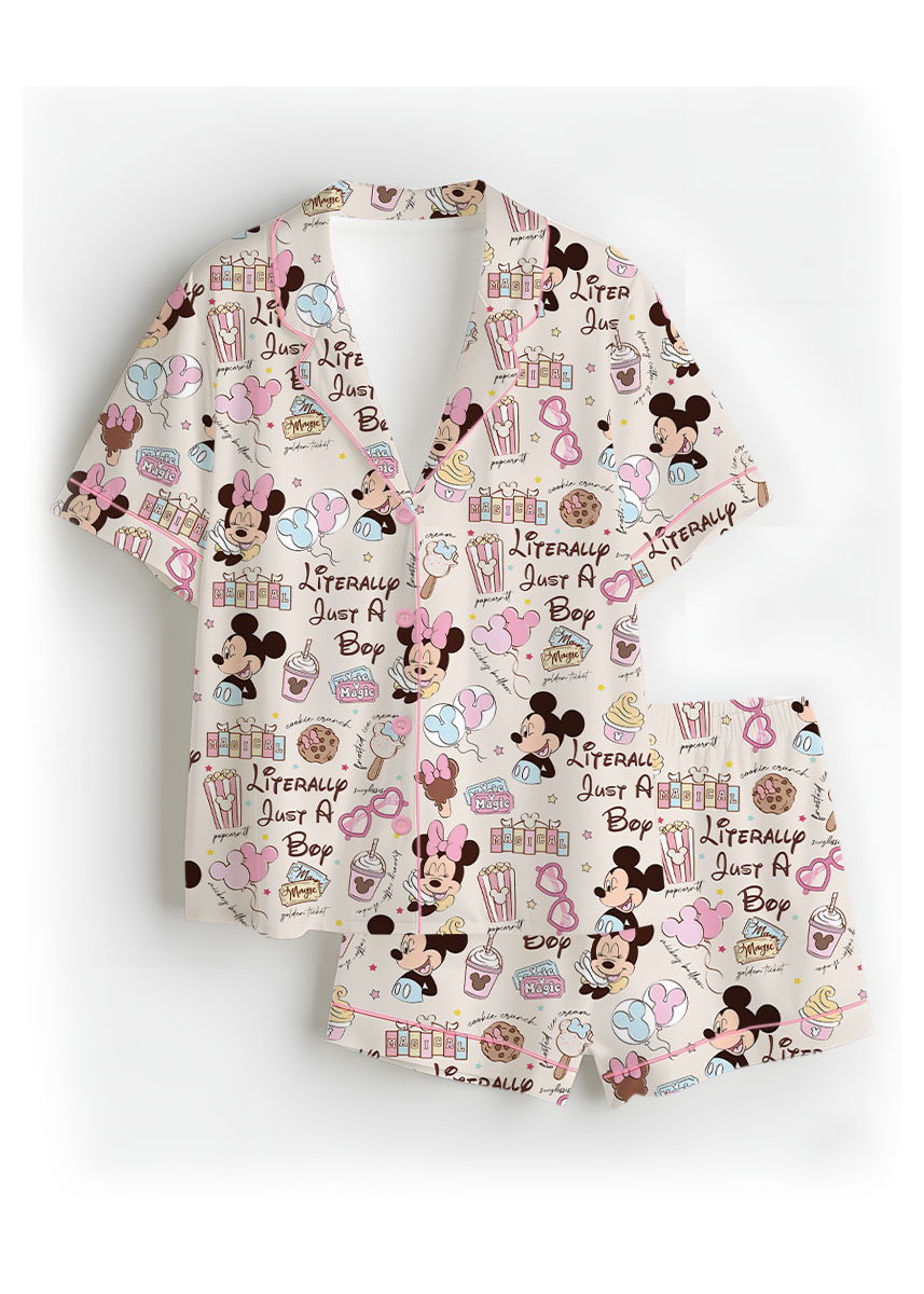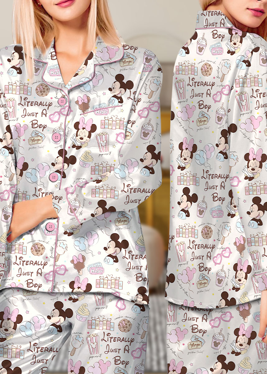Women’s Disneyland Magic Snacks Satin Pajamas Set For Women, Beige Color, US Size S-5XL