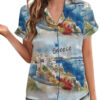 - Available in short-sleeve or long-sleeve options, with or without a chest pocket. Features a button-front design with a turn-down lapel collar and contrast piping, made from soft, breathable fabric for optimal comfort.