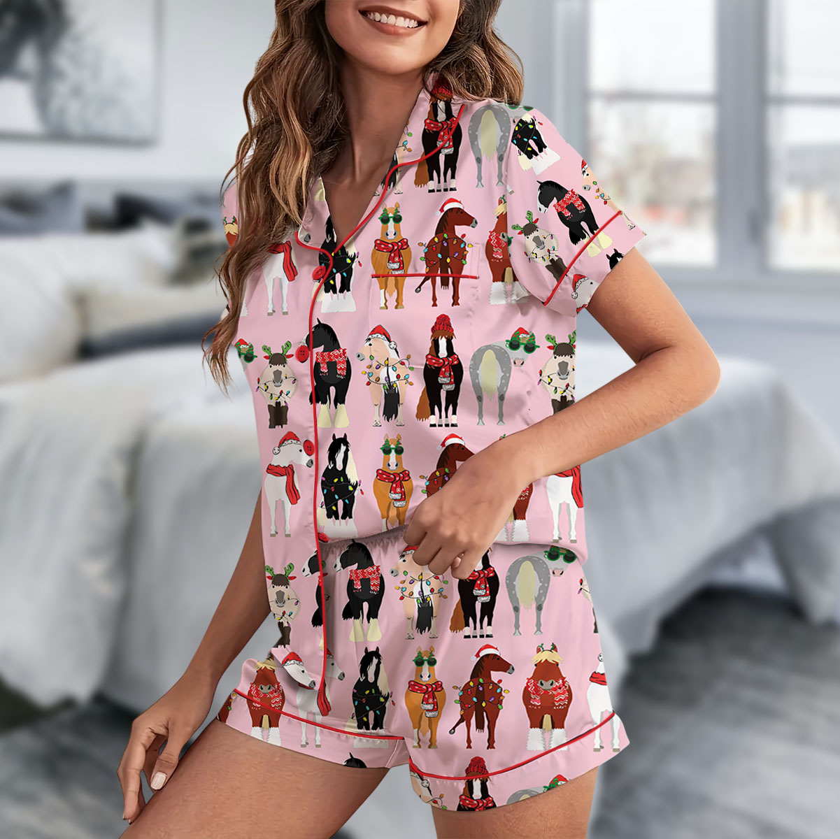 Women’s Funny Horse Christmas Satin Pajamas Set