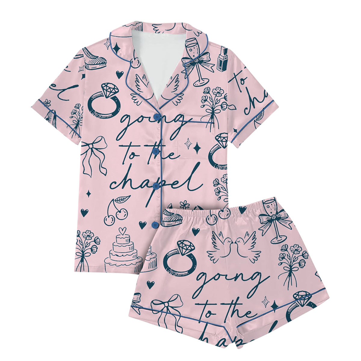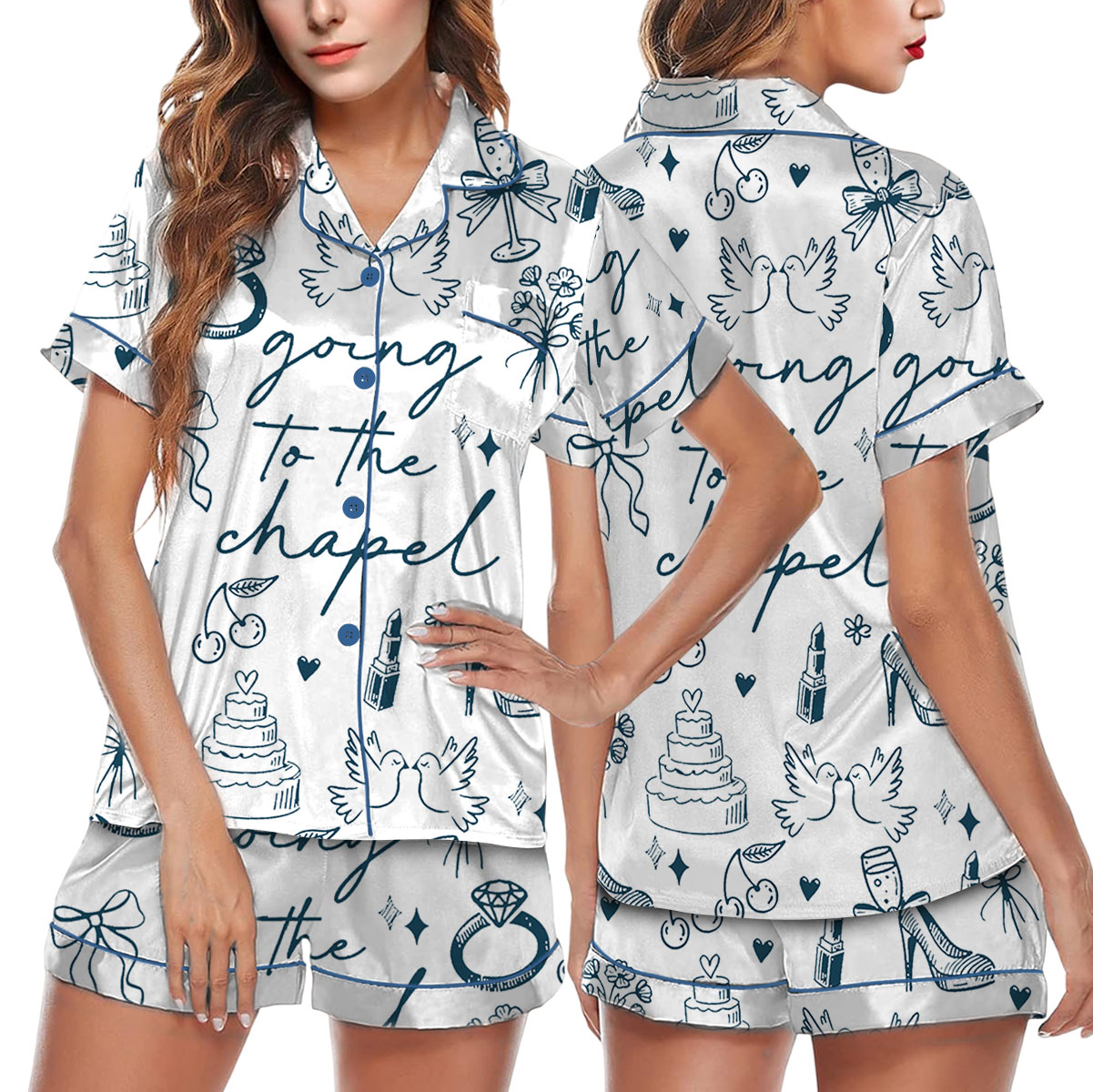 Women’s Going To The Chapel Coquette Bachelorette Wedding Bride Satin Pajama Set