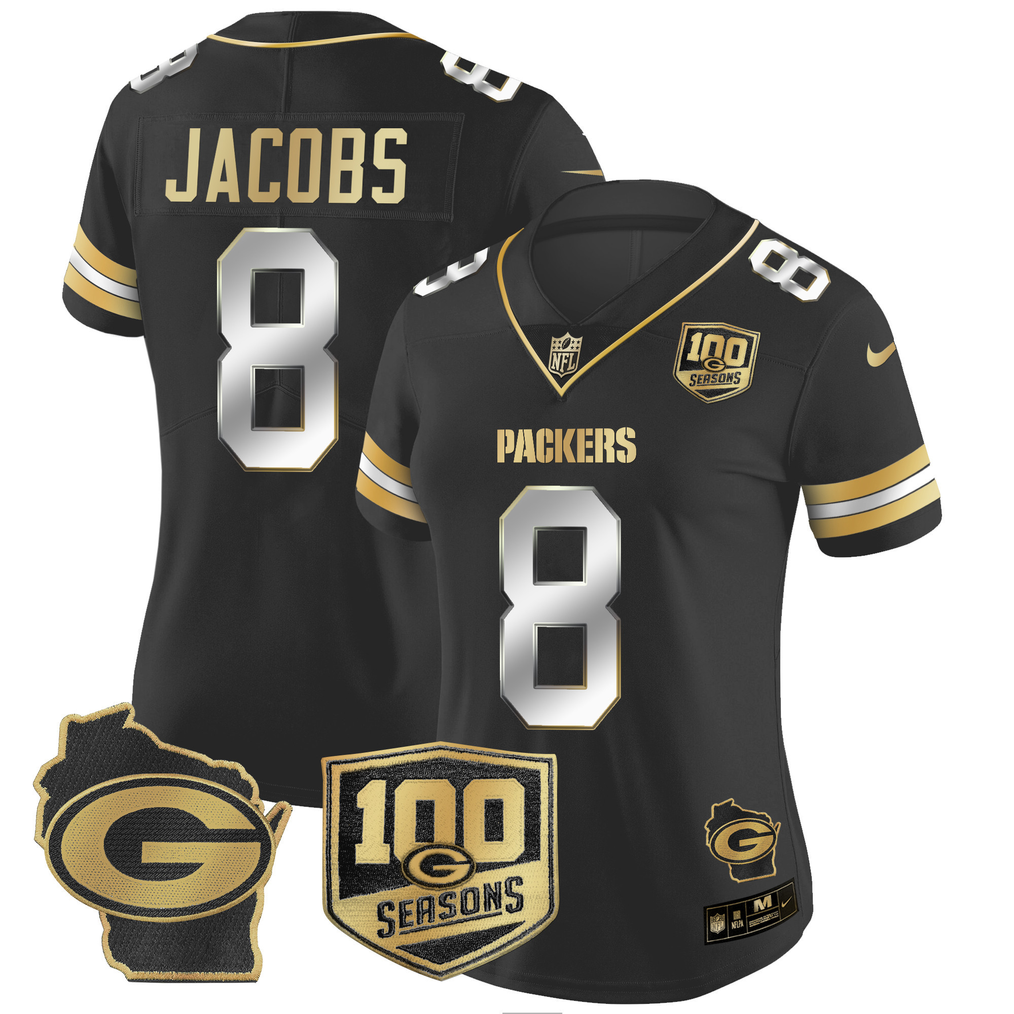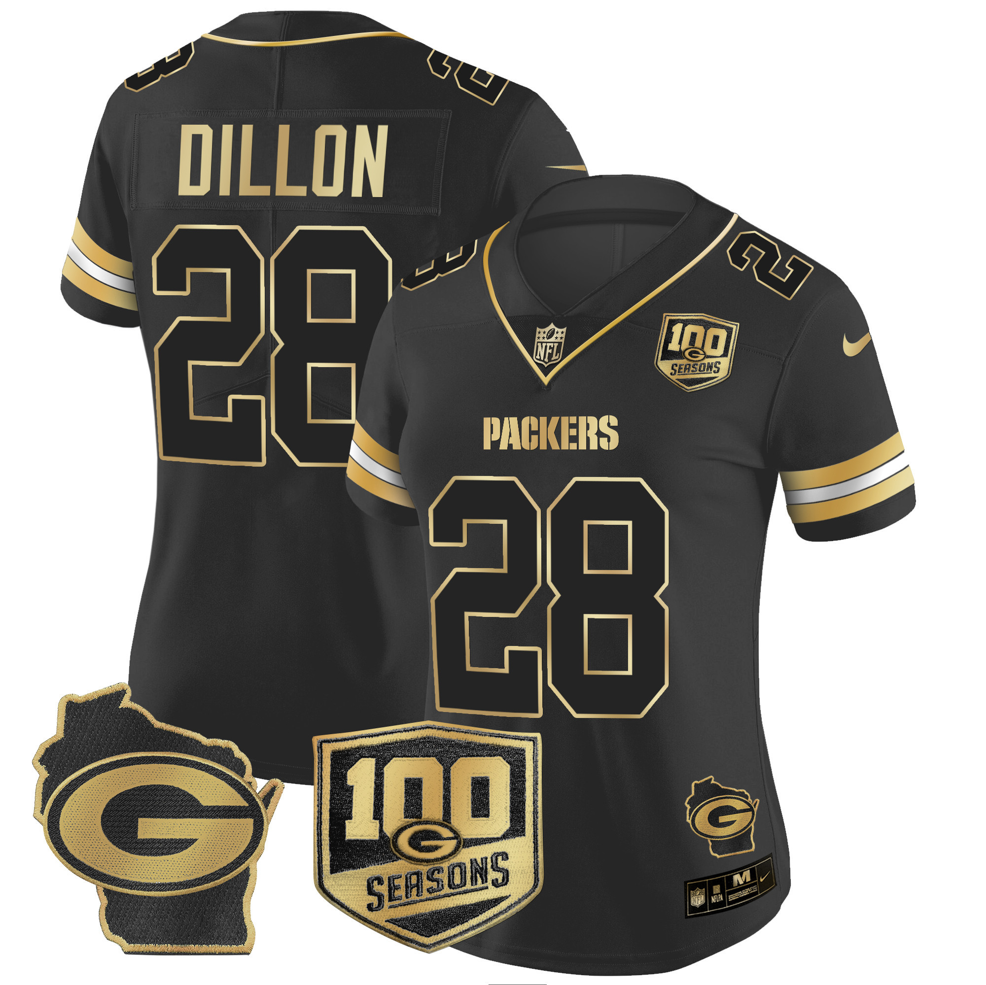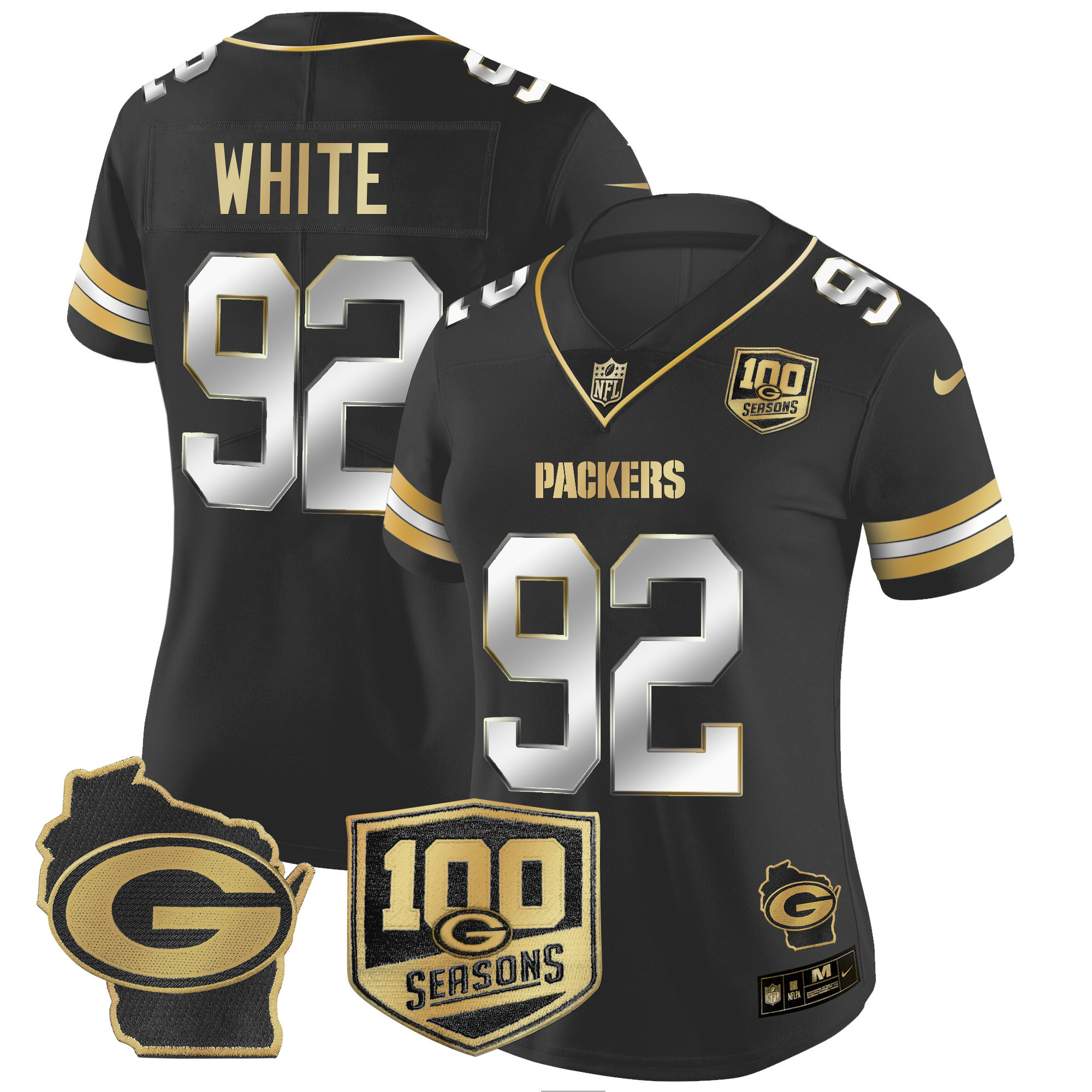 Women’s Green Bay Packers 100th Season & Home Patch Gold Vapor Limited Jersey – All Stitched