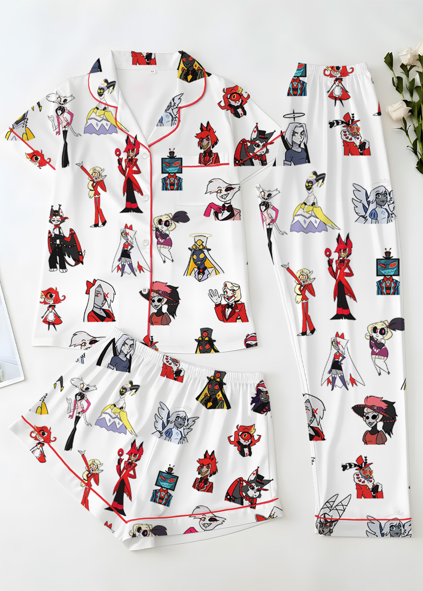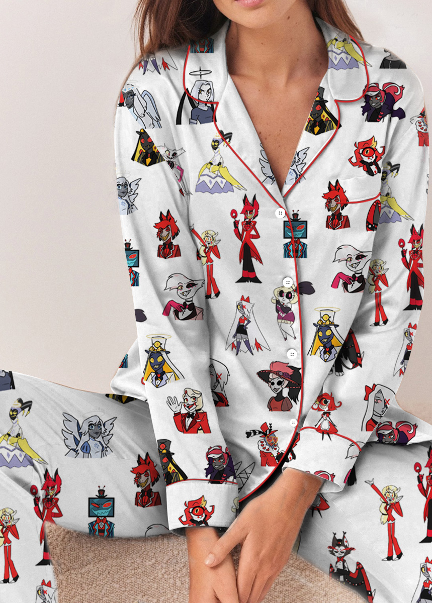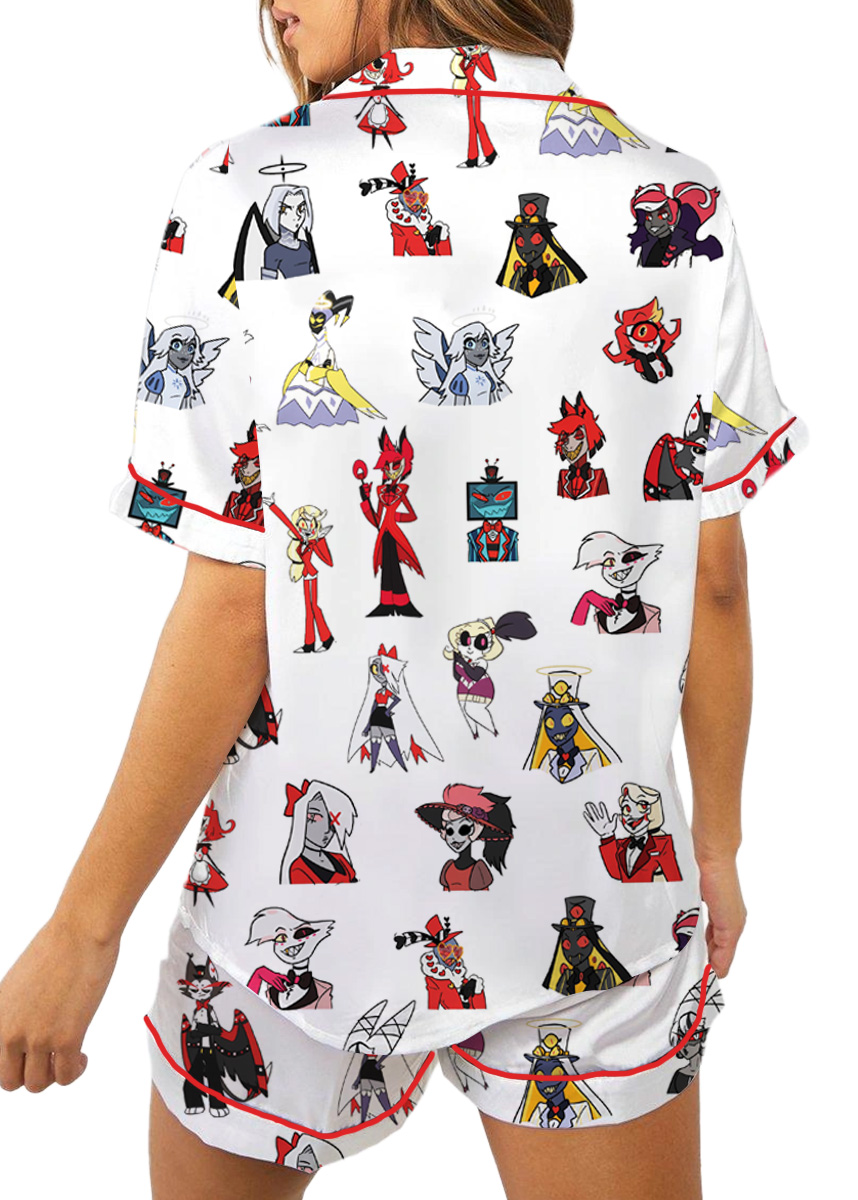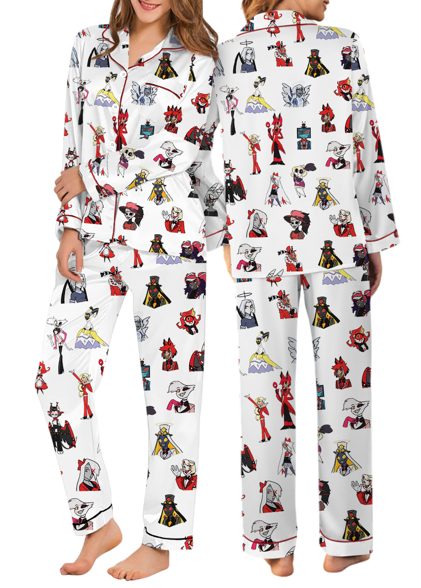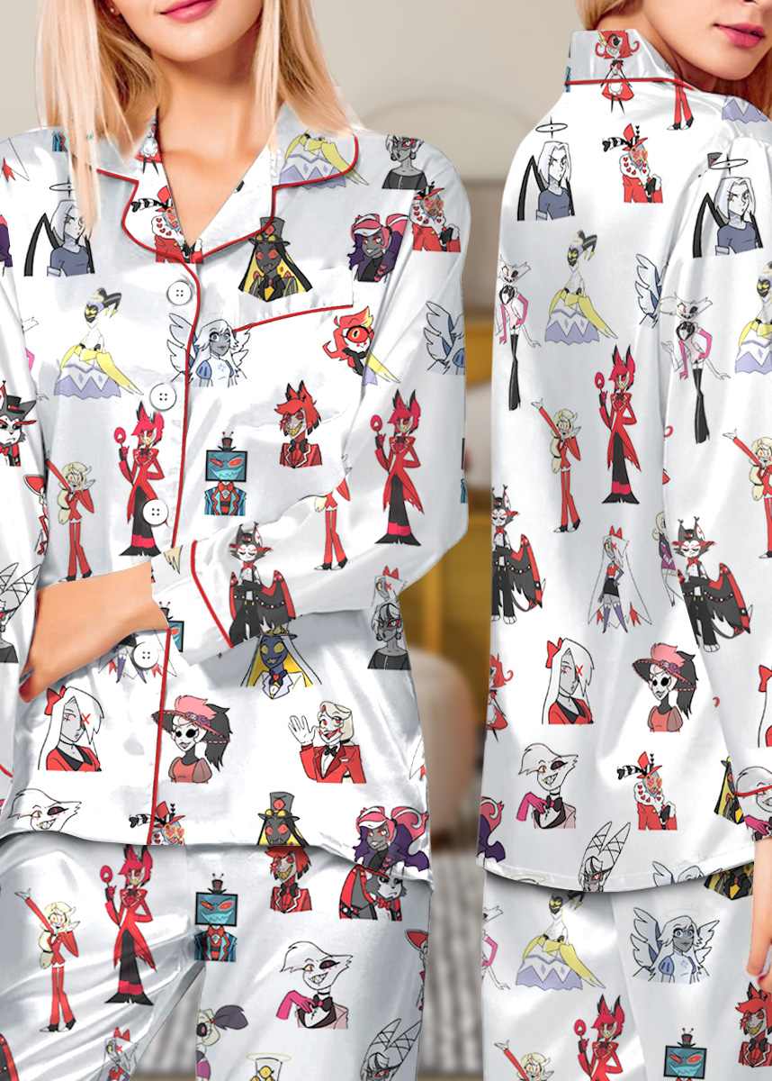 Women’s Hazbin Hotel Alastor Lucifer Satin Pajamas Set For Women, White Color, US Size S-5XL