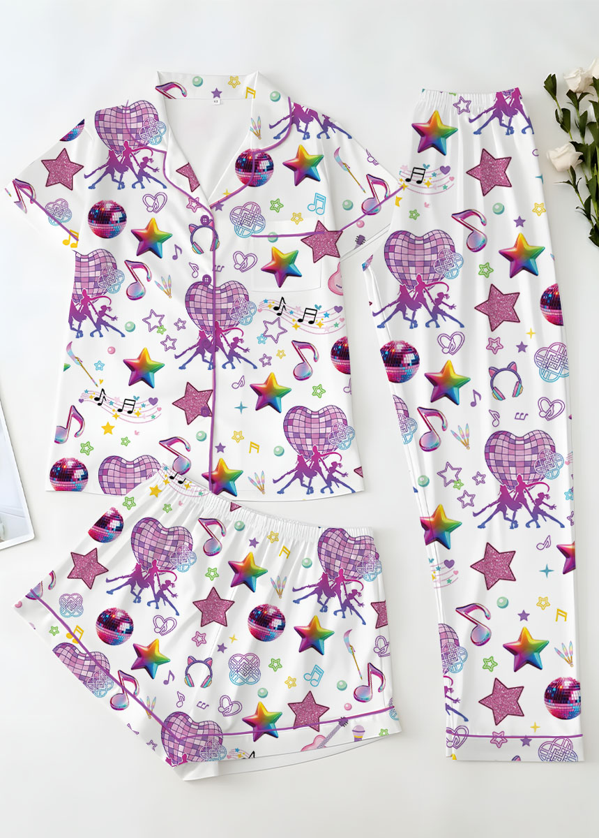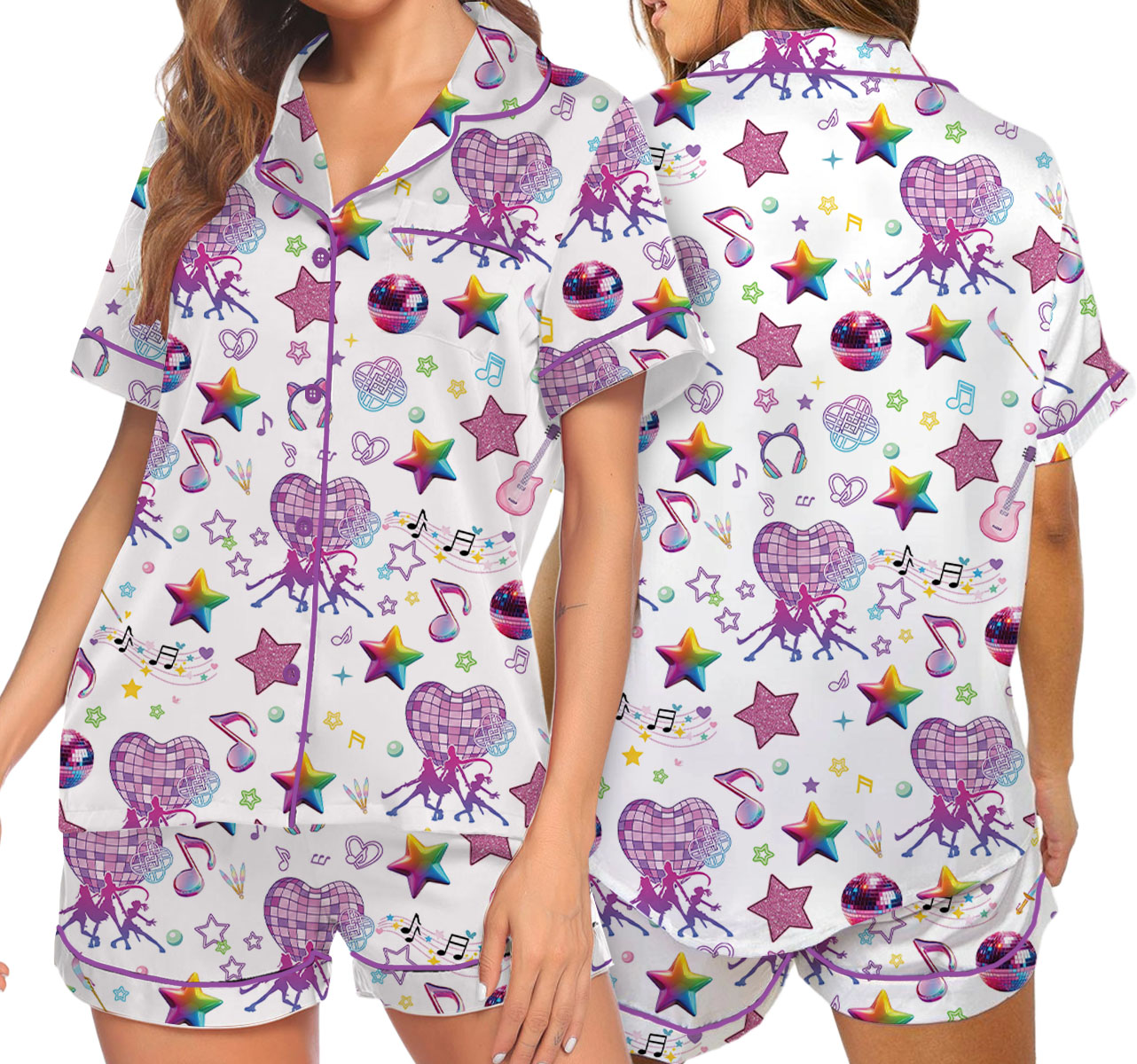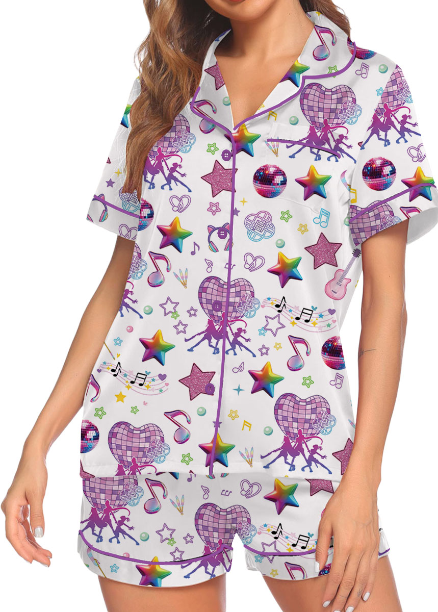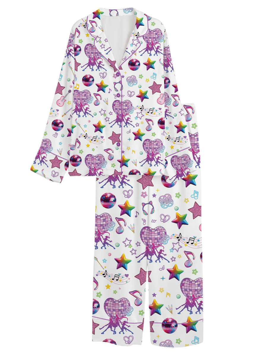 Women’s K-Pop Demon Hunters Satin Pajamas Set For Women, White Color, US Size S-5XL