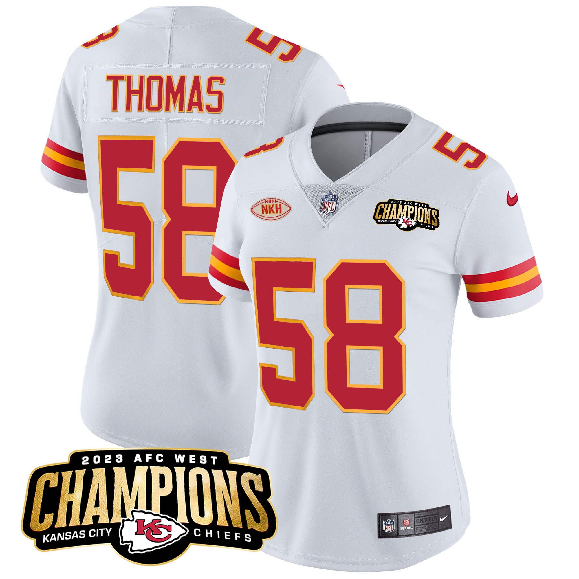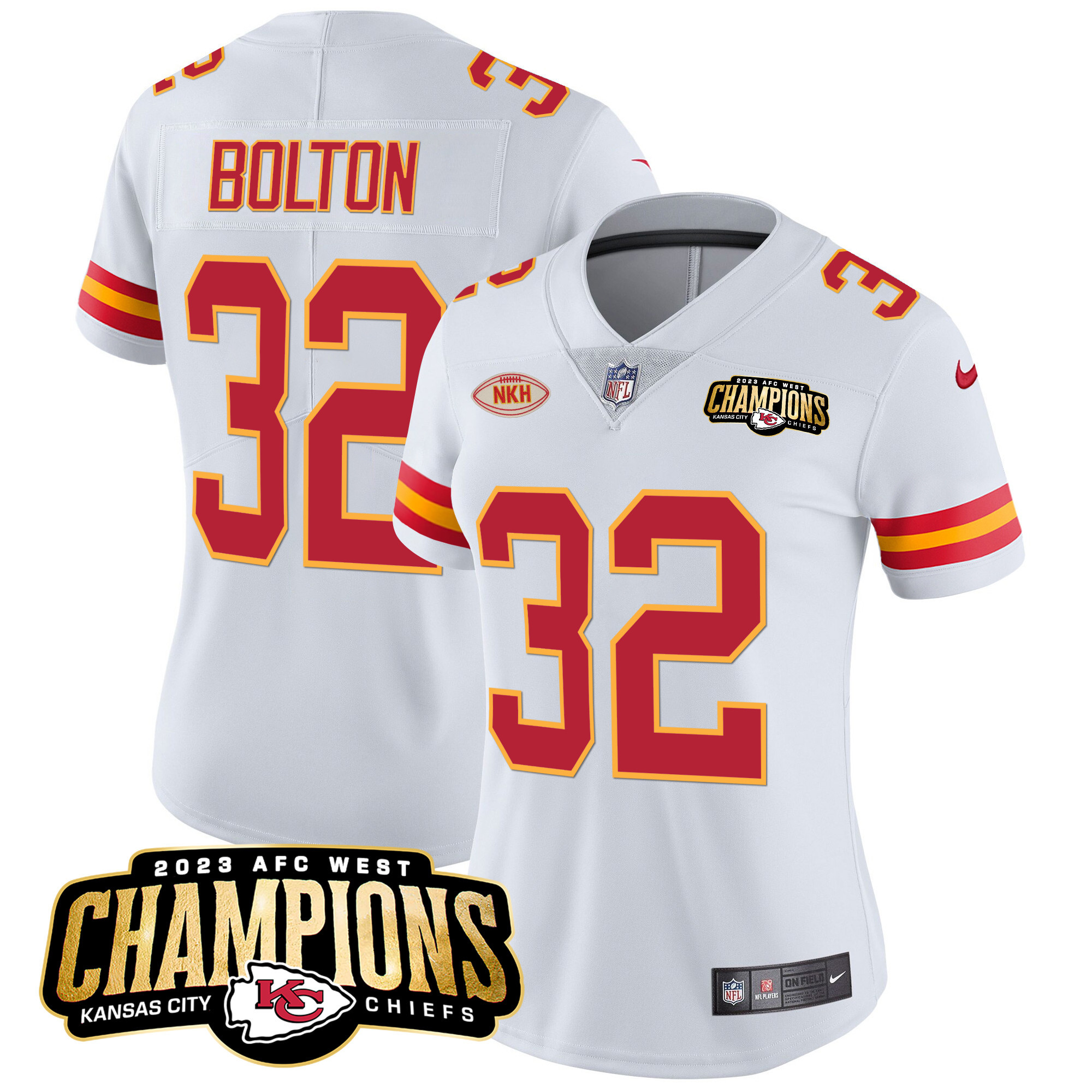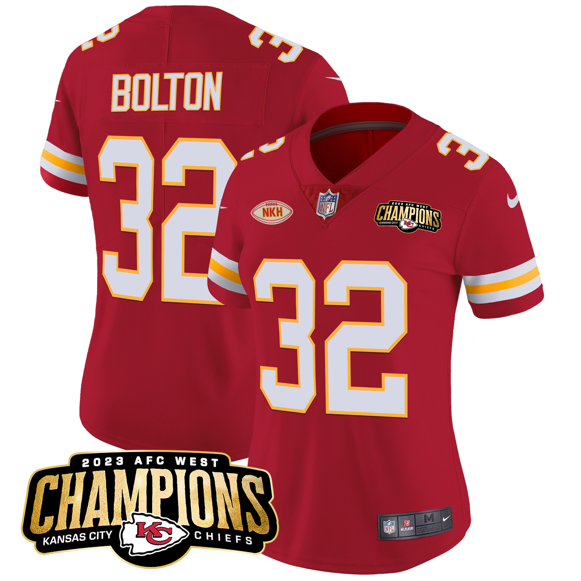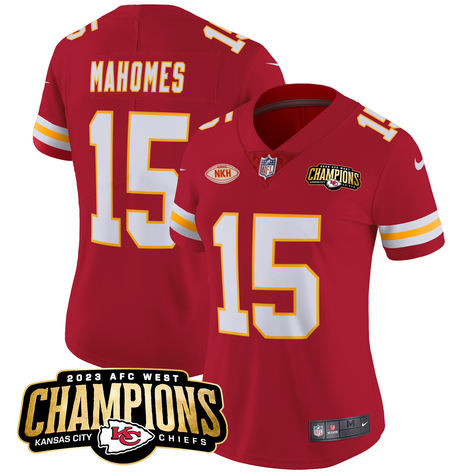 Women’s Kansas City Chiefs 2023 AFC West Champions Patch Vapor Limited Jersey – All Stitched