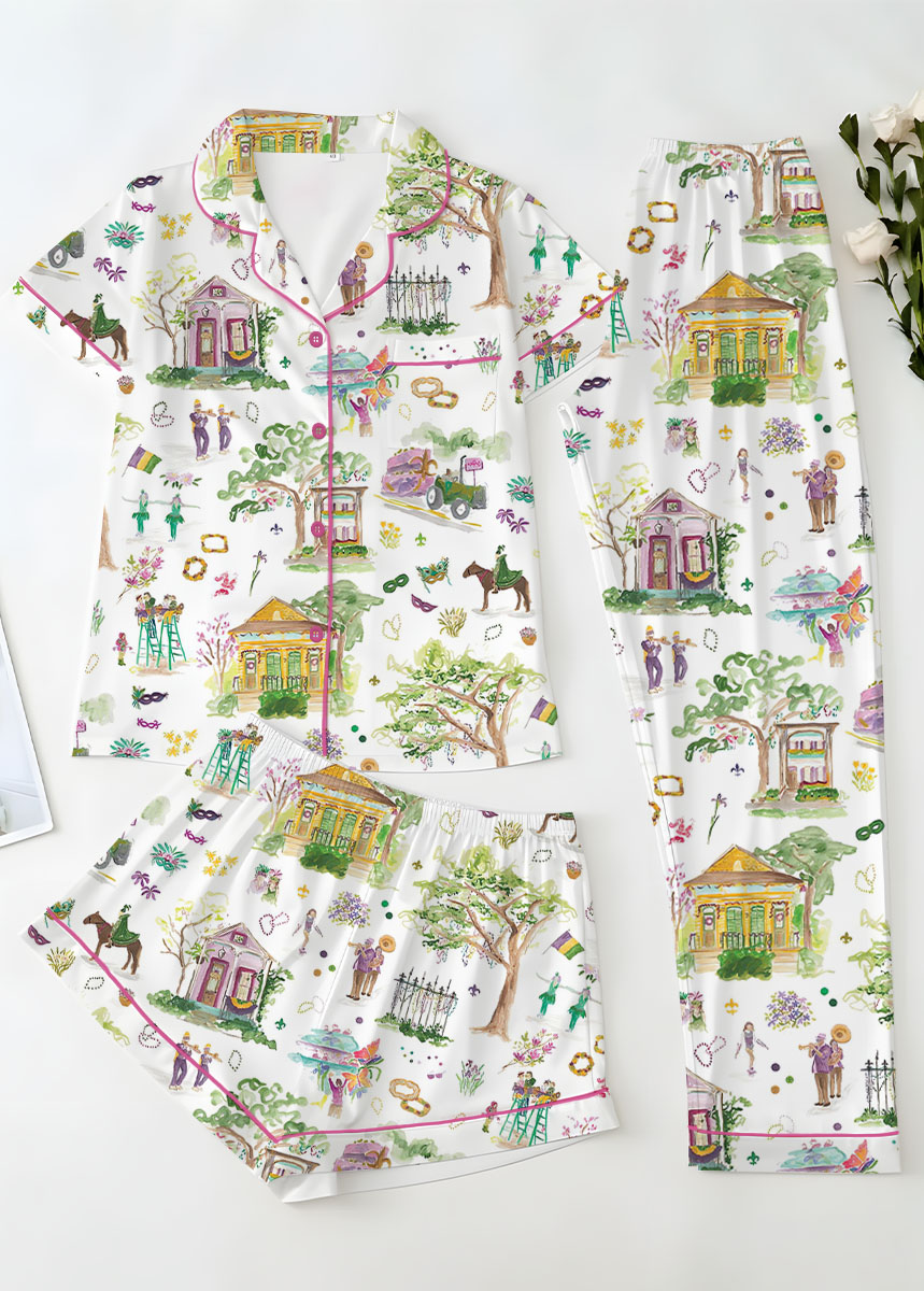 Women’s Mardi Gras Parade Satin Pajamas Set For Women, White Color, US Size S-5XL