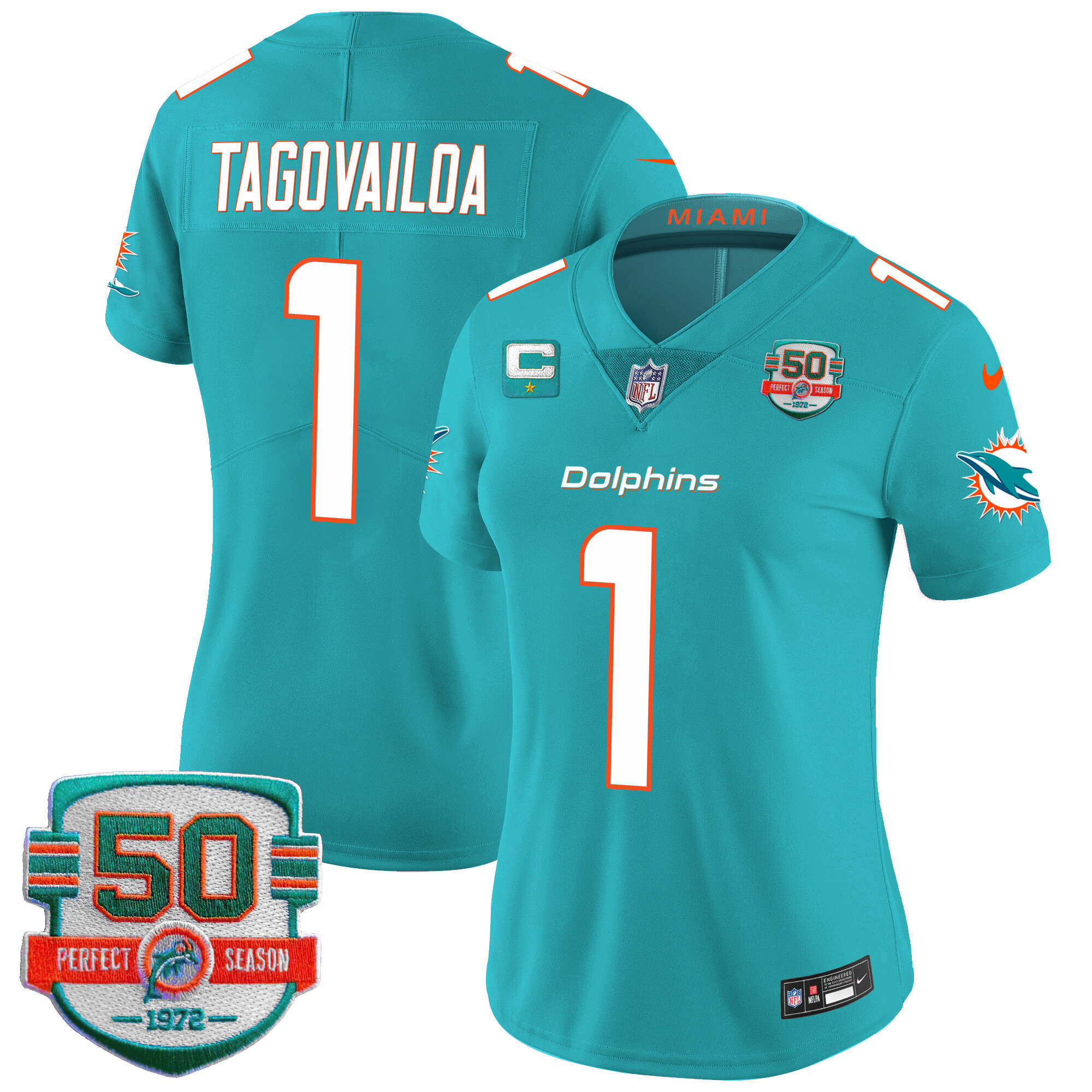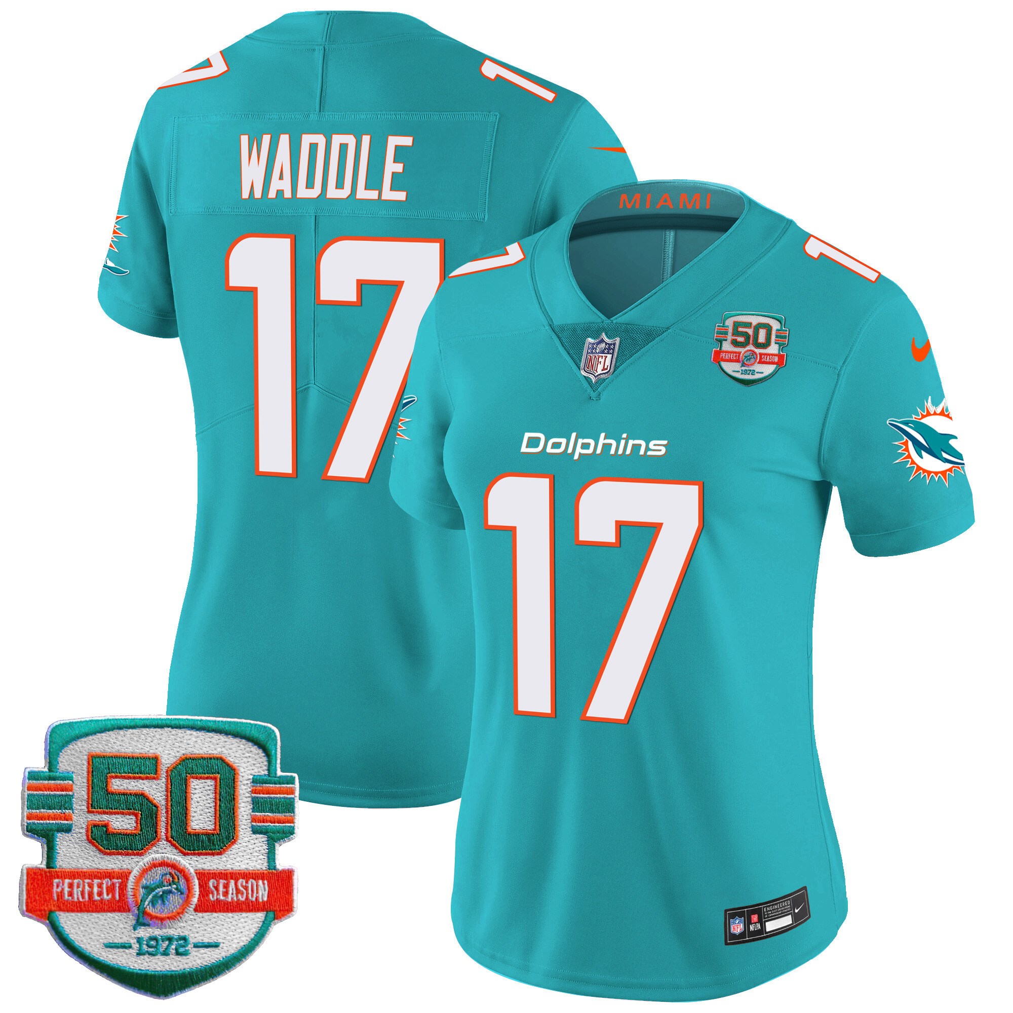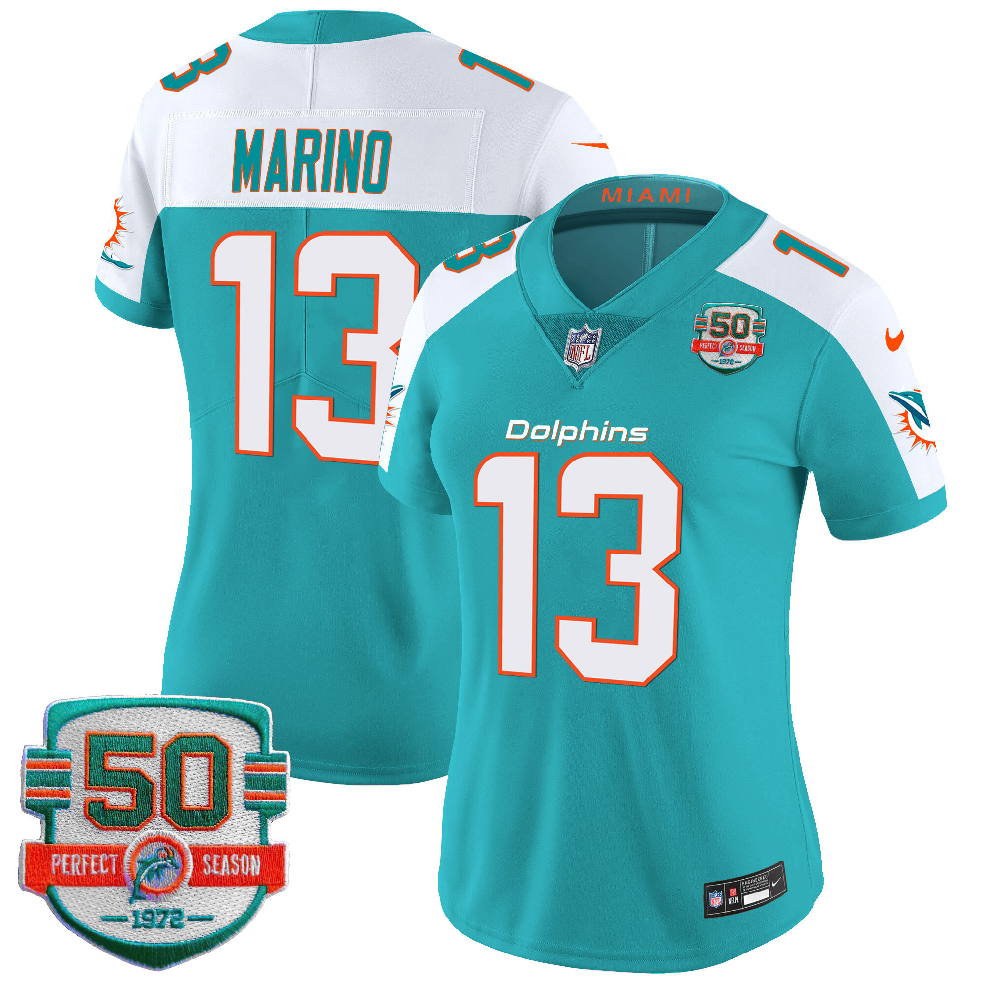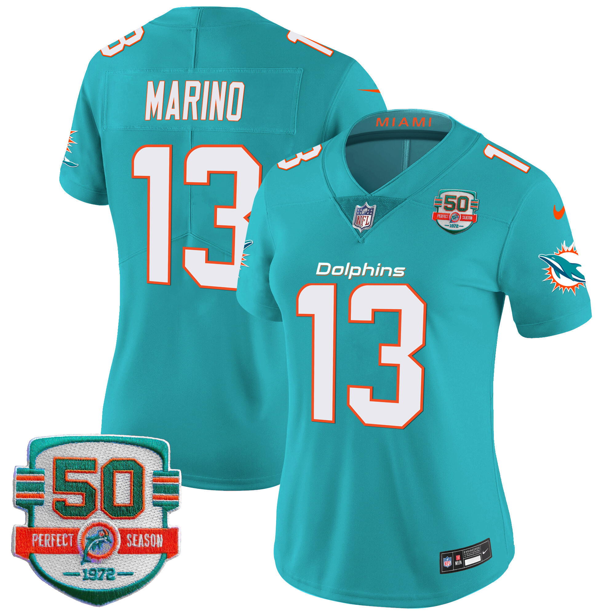 Women’s Miami Dolphins 50th 1972 Perfect Season Patch Vapor Jersey – All Stitched