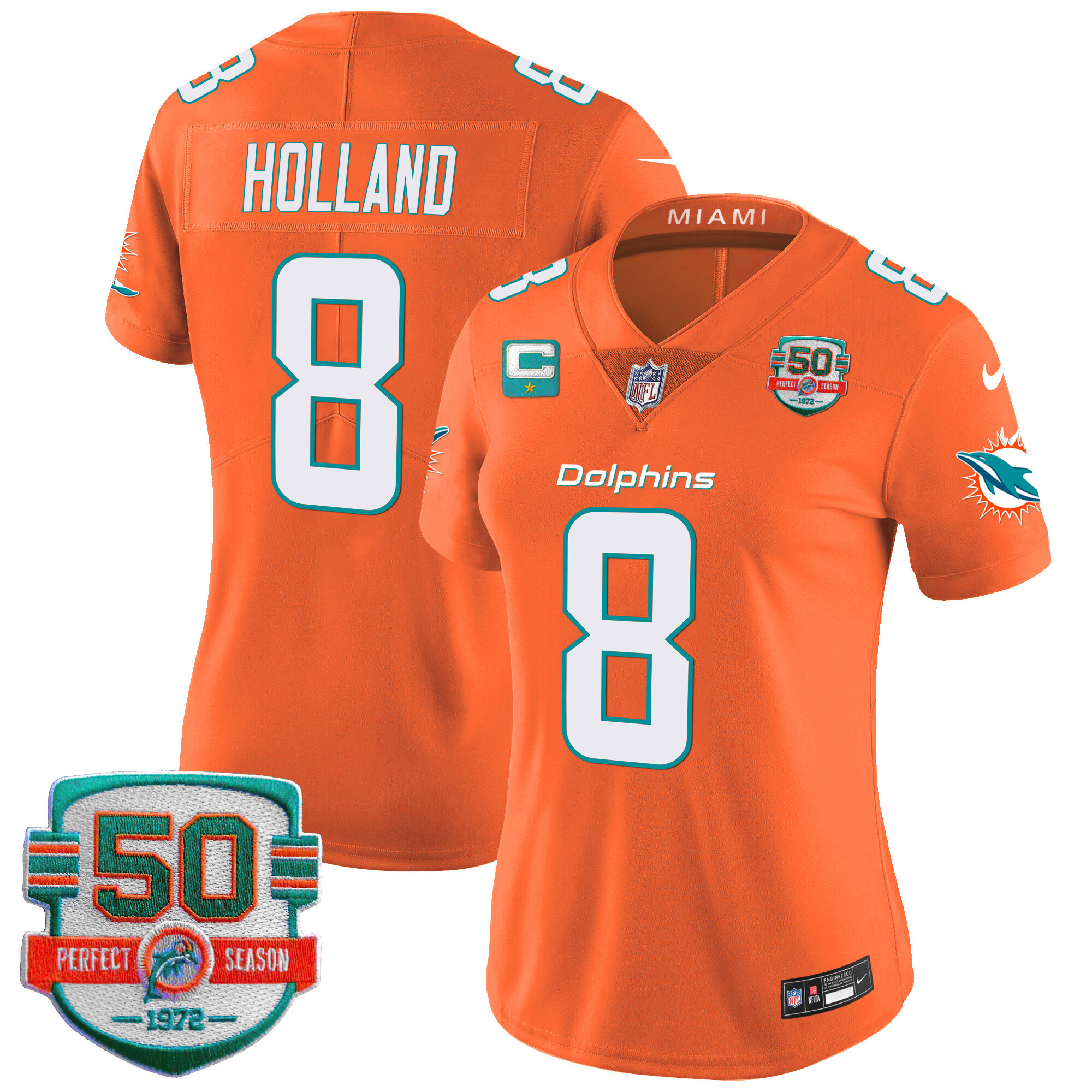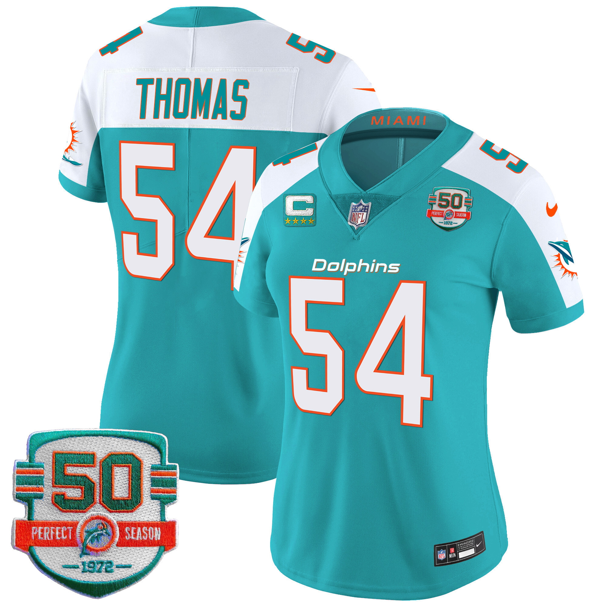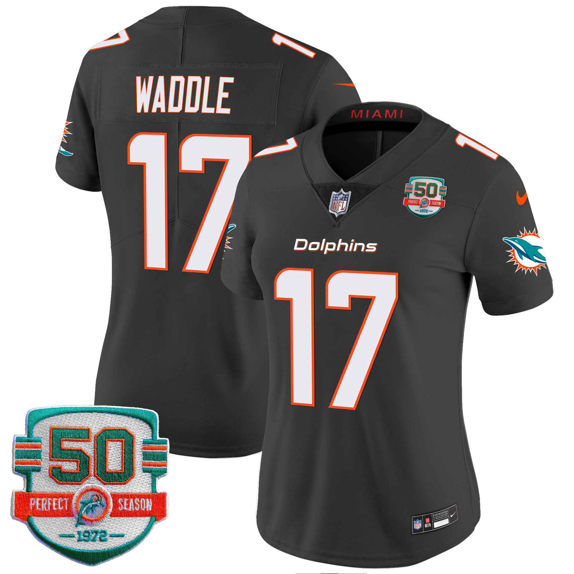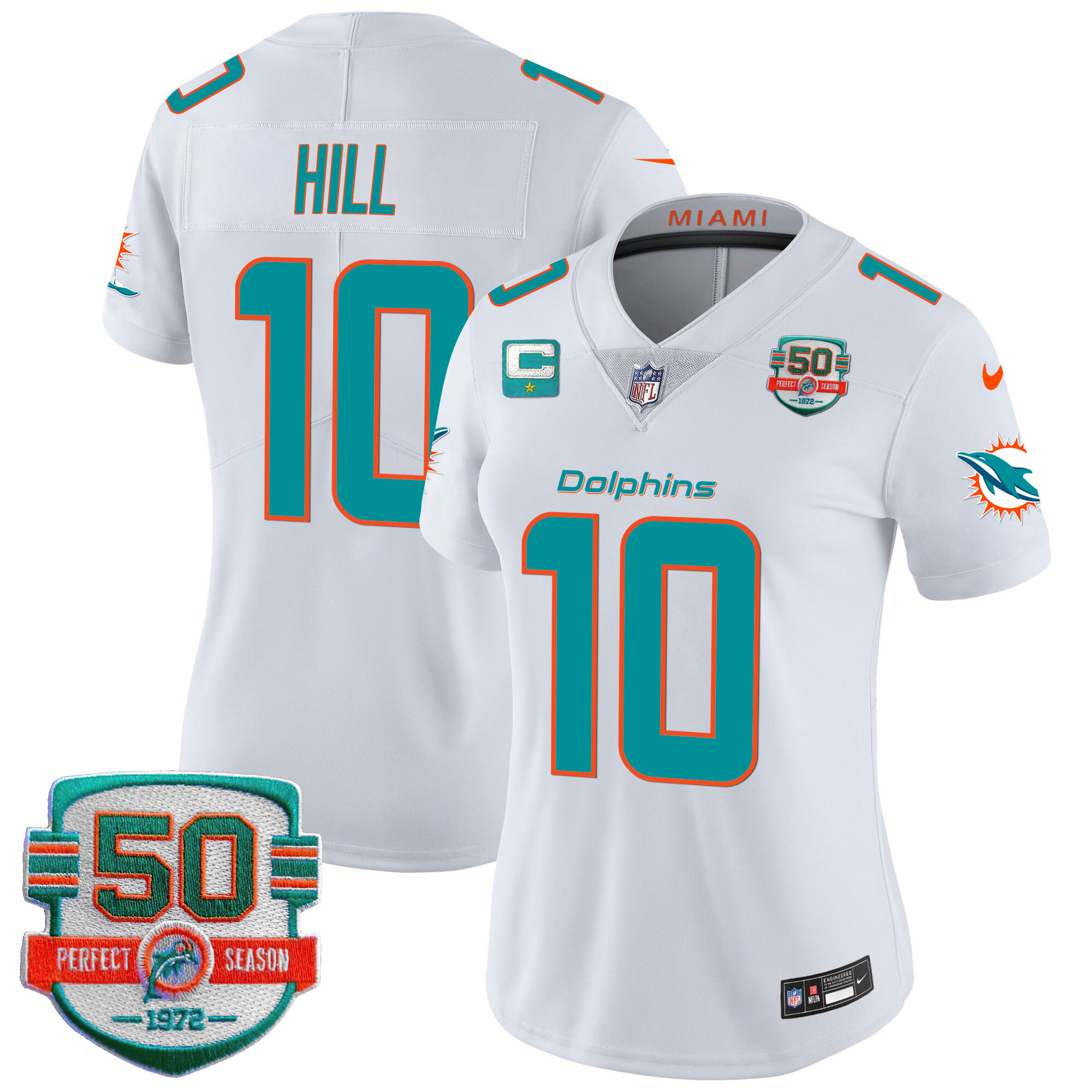 Women’s Miami Dolphins 50th 1972 Perfect Season Patch Vapor Jersey – All Stitched