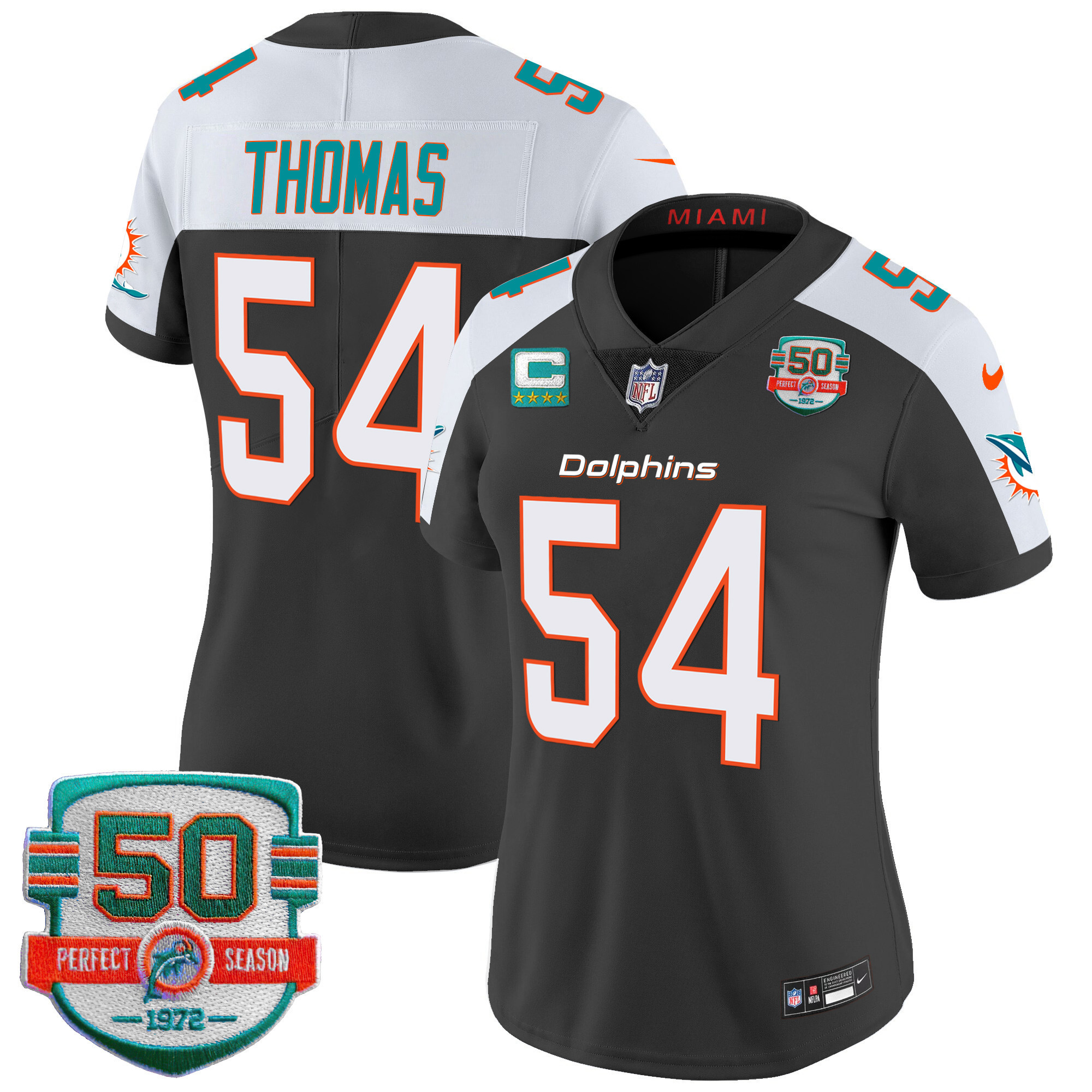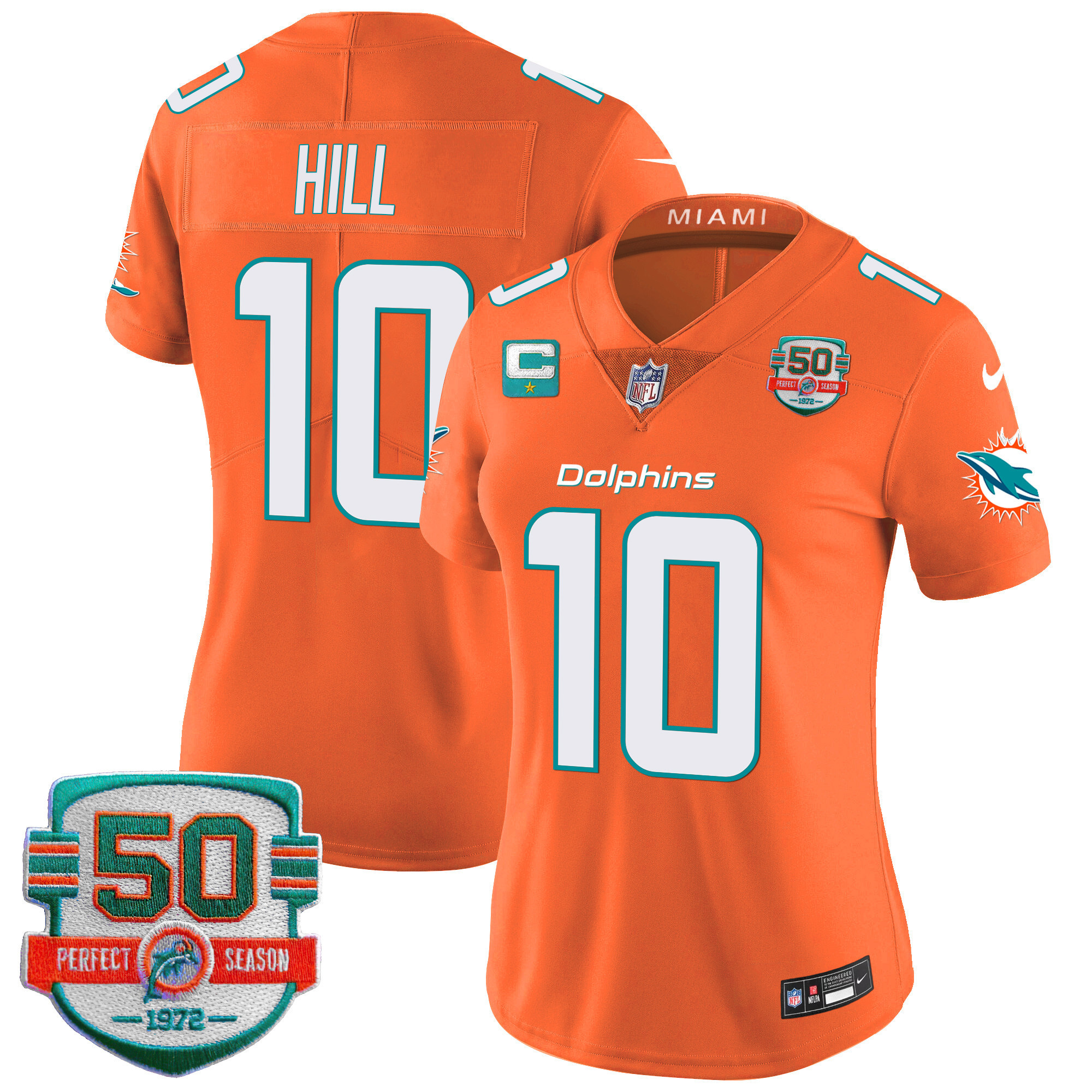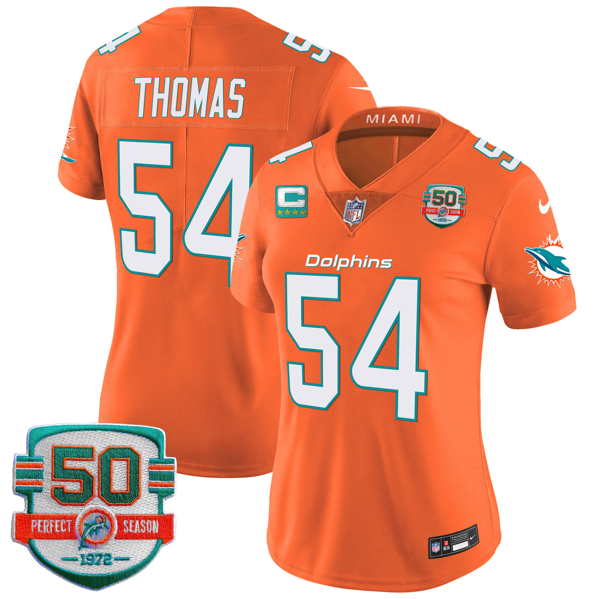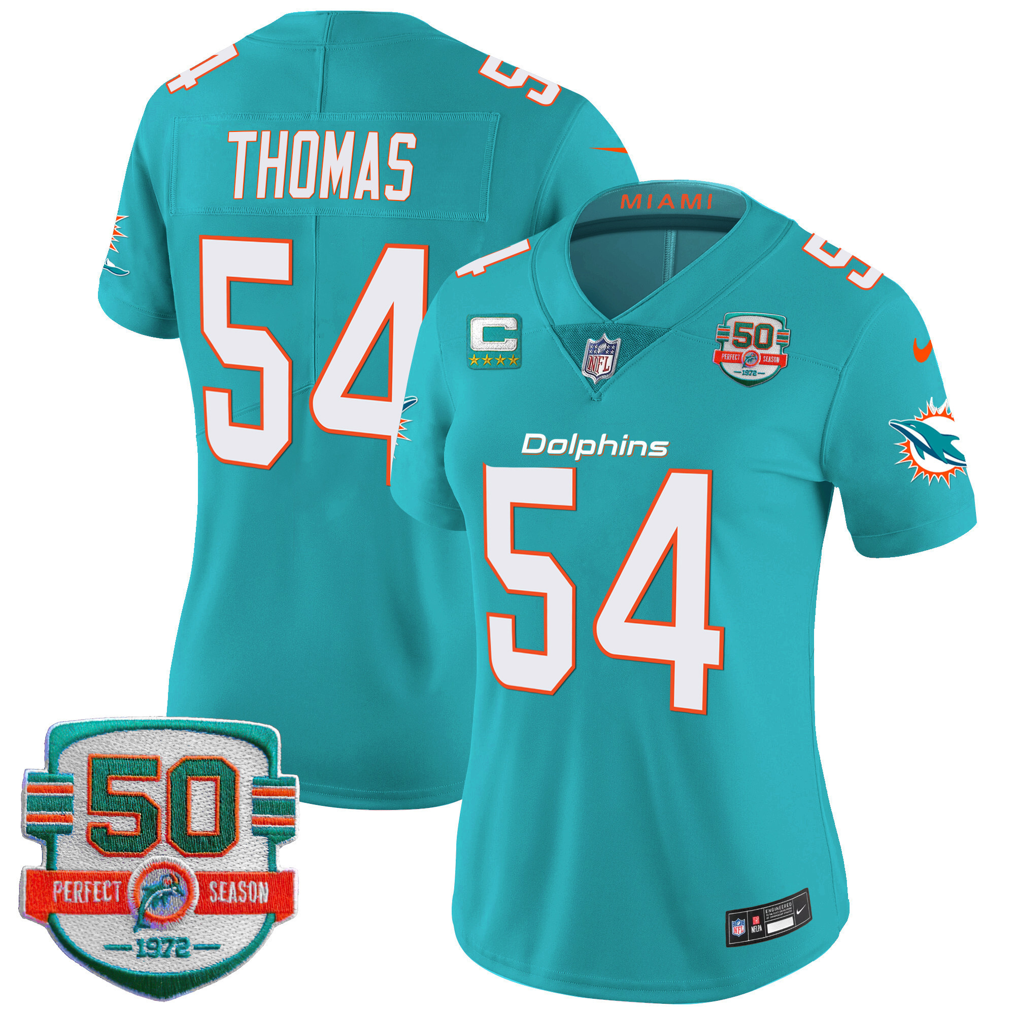Women’s Miami Dolphins 50th 1972 Perfect Season Patch Vapor Jersey – All Stitched