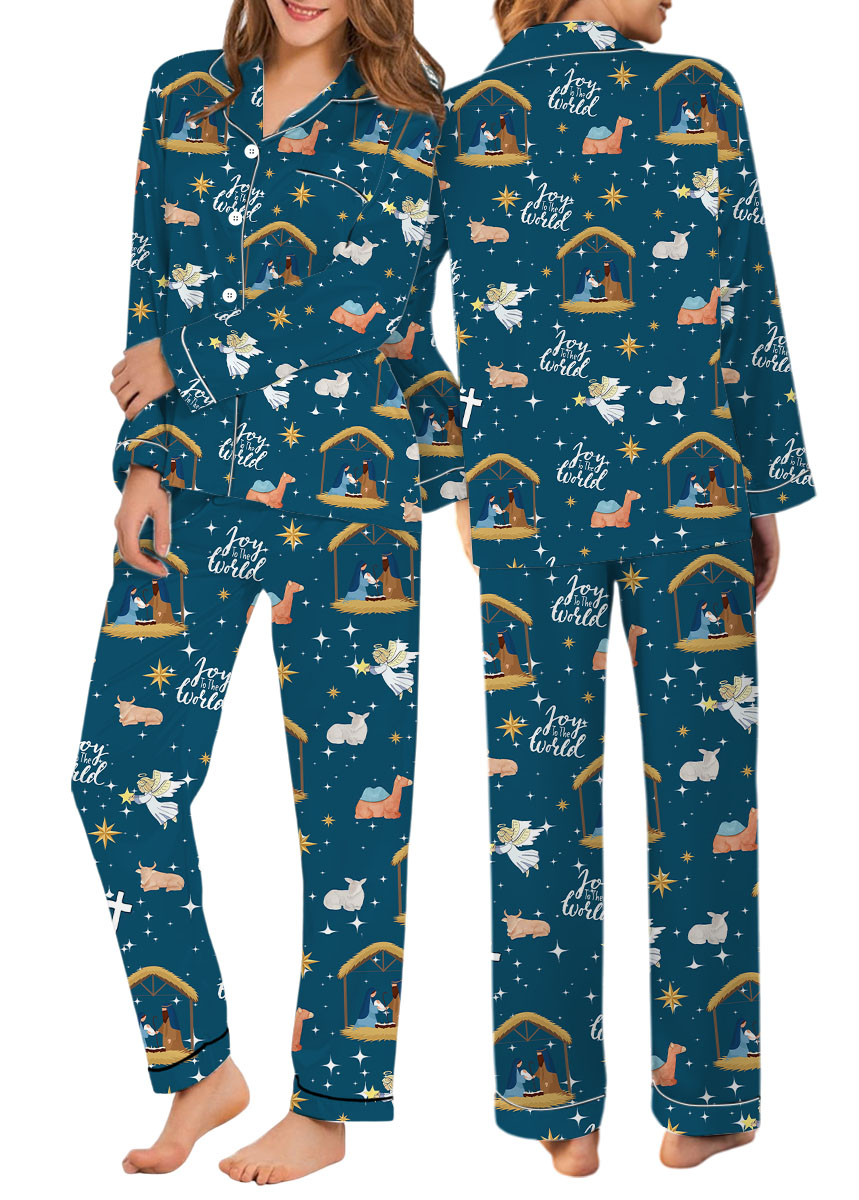 Women’s Nativity Christian Christmas Satin Pajama Set