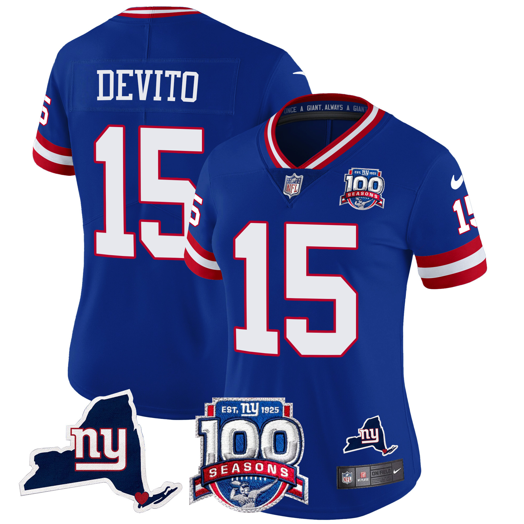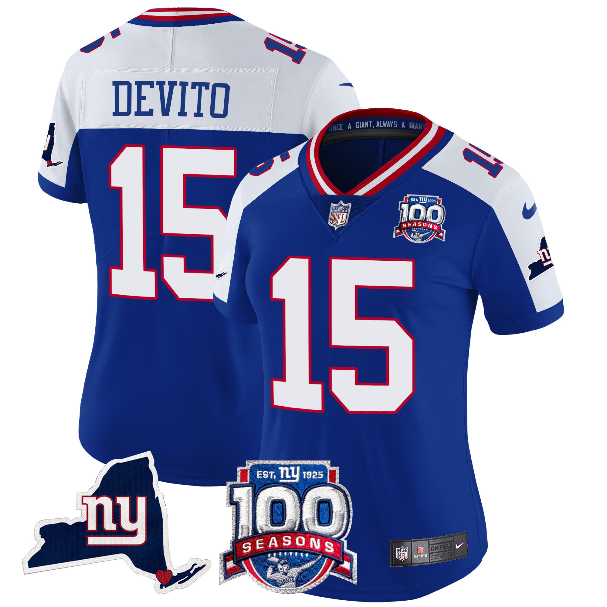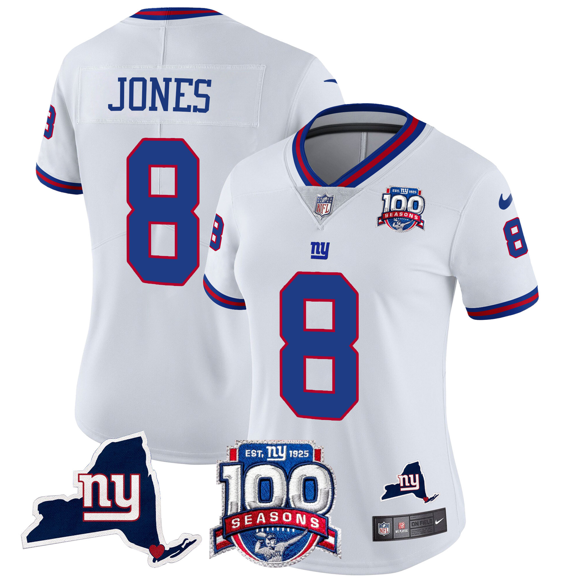 Women’s New York Giants 100th Season & State Patch Vapor Limited Jersey – All Stitched