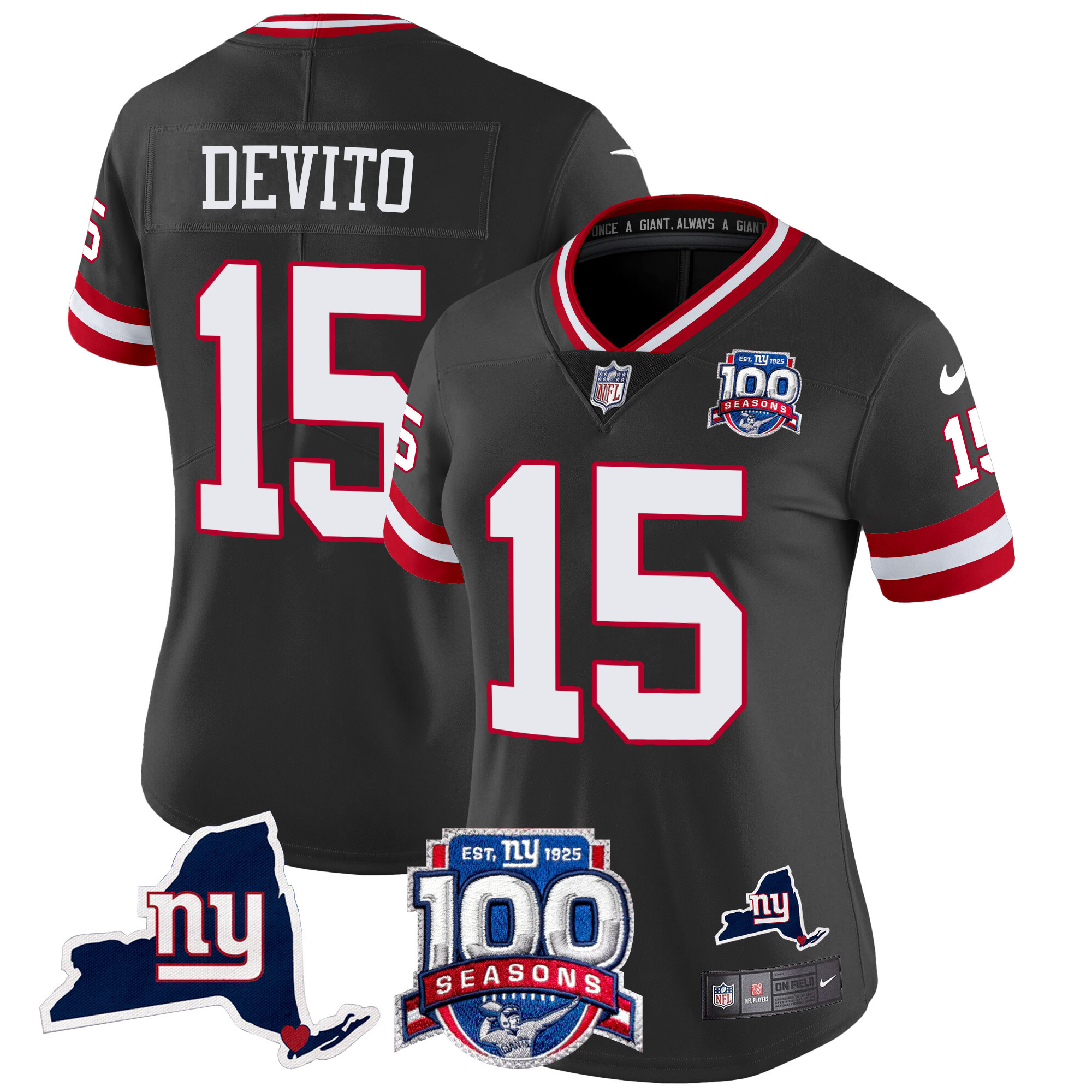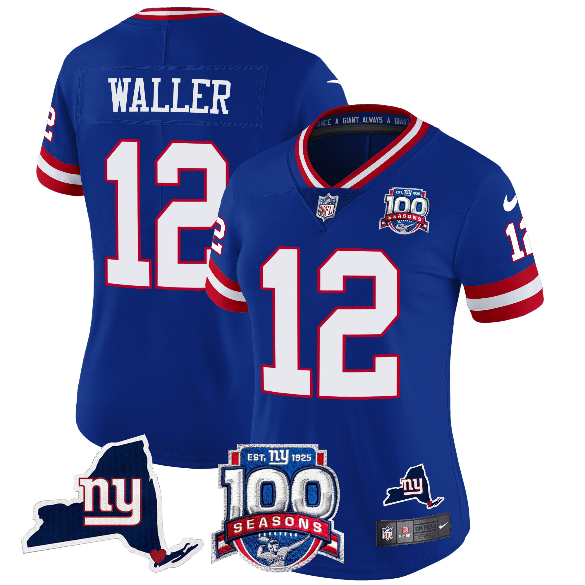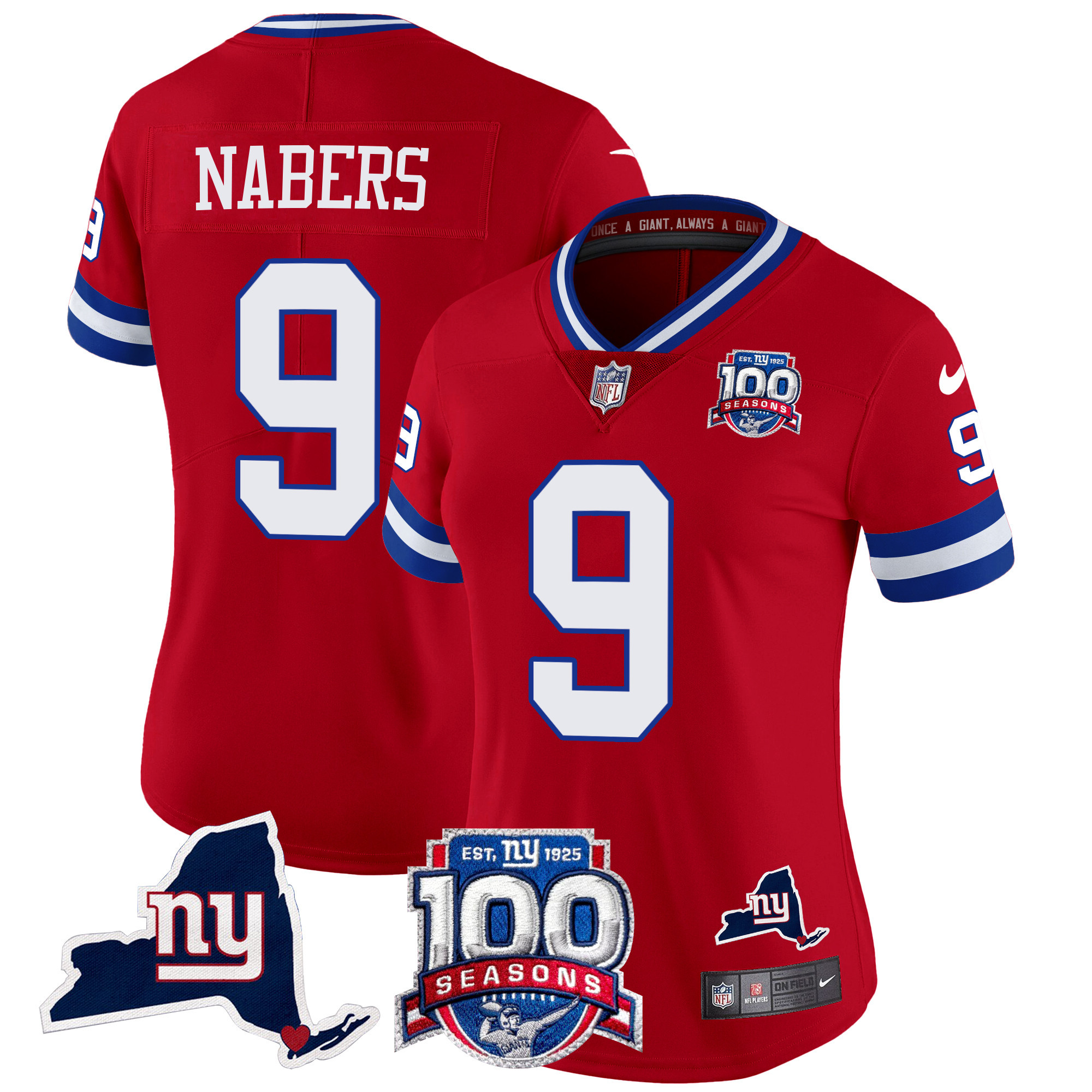 Women’s New York Giants 100th Season & State Patch Vapor Limited Jersey – All Stitched