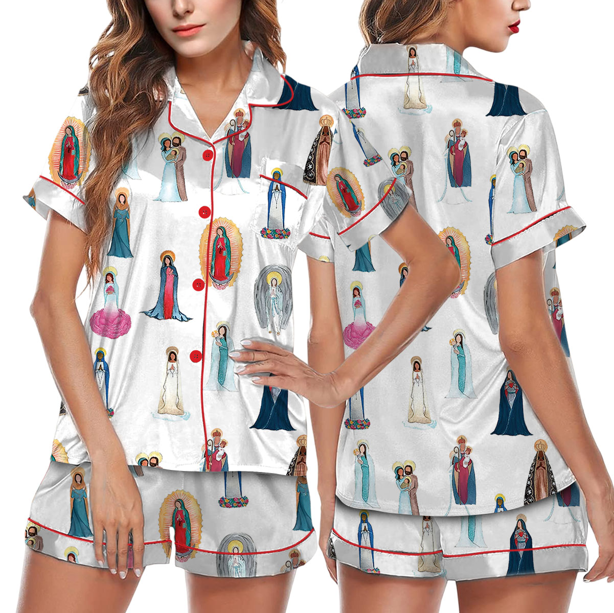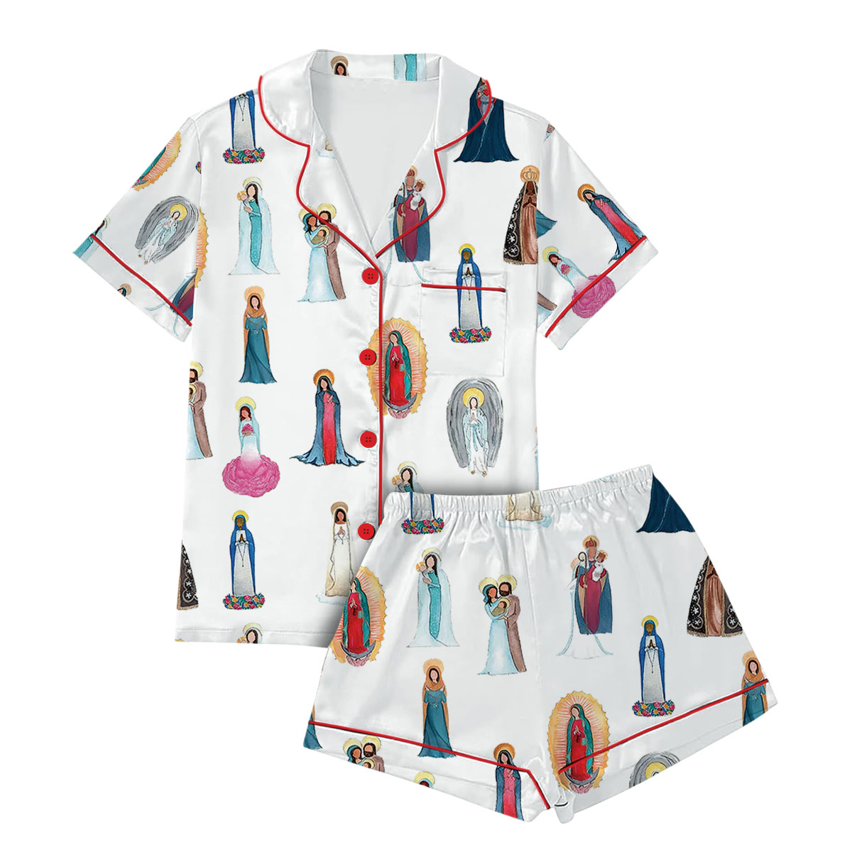 Women’s Our Lady of Guadalupe Catholic Jesus Short Sleeve Satin Pajama Set