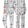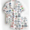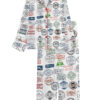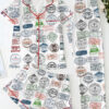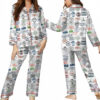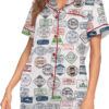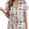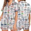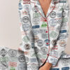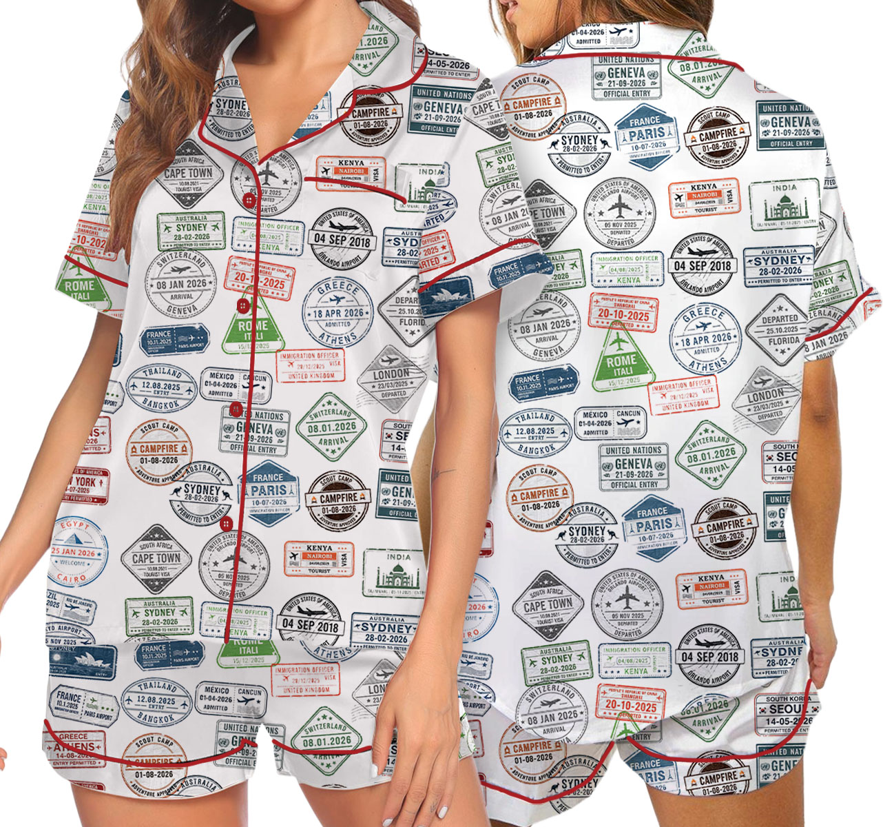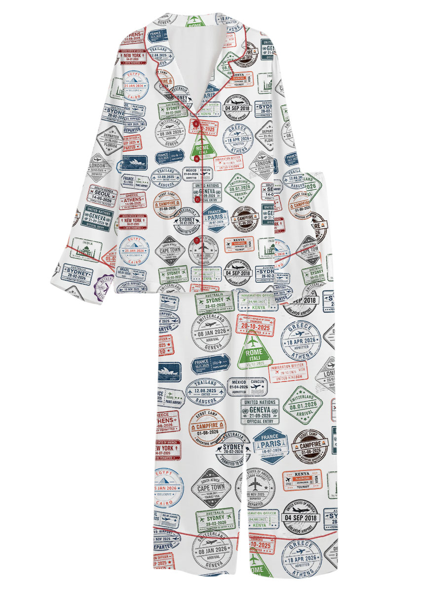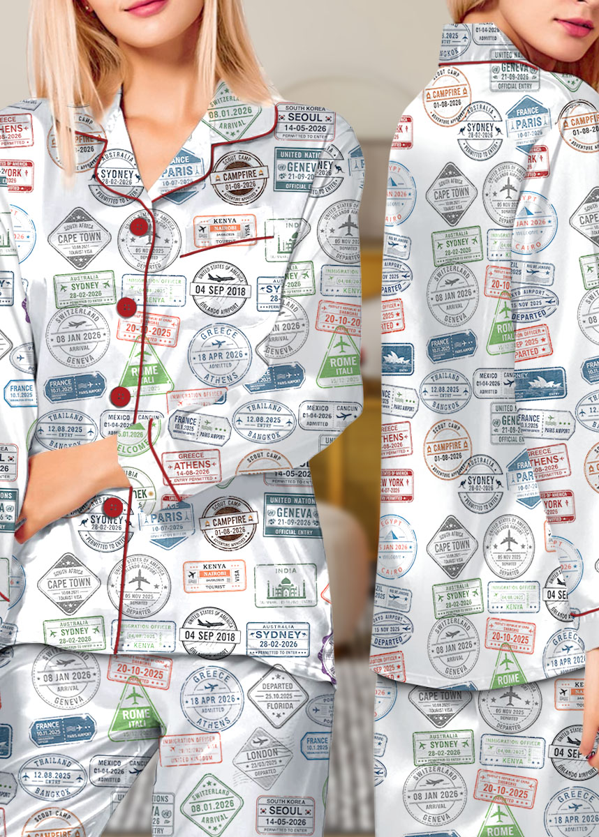 Women’s Passport Travel Stamps Satin Pajamas Set For Women, White Color, US Size S-5XL