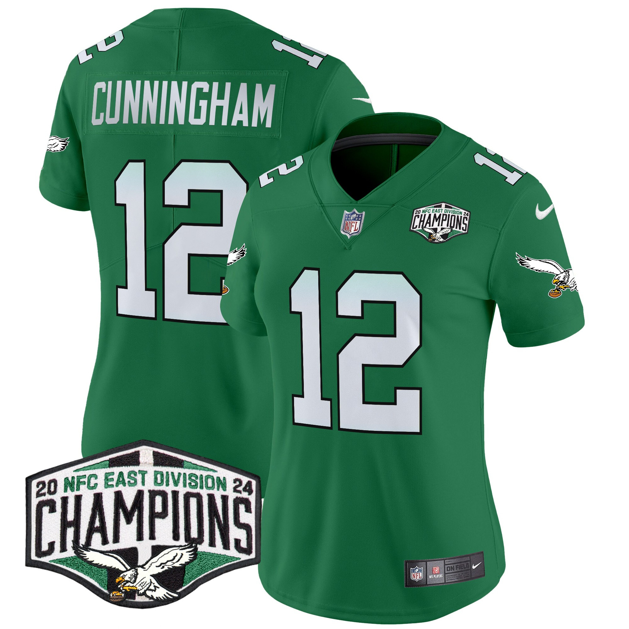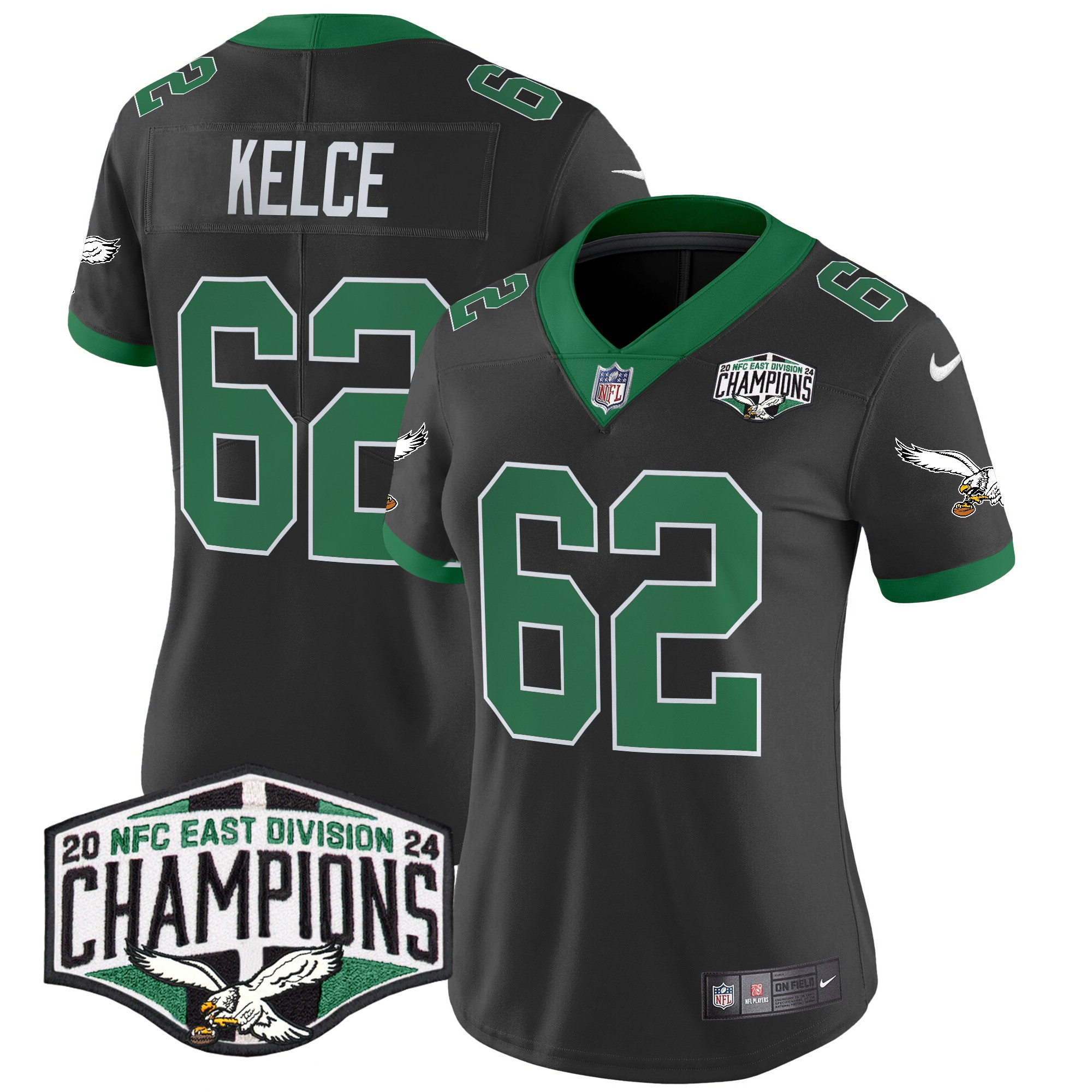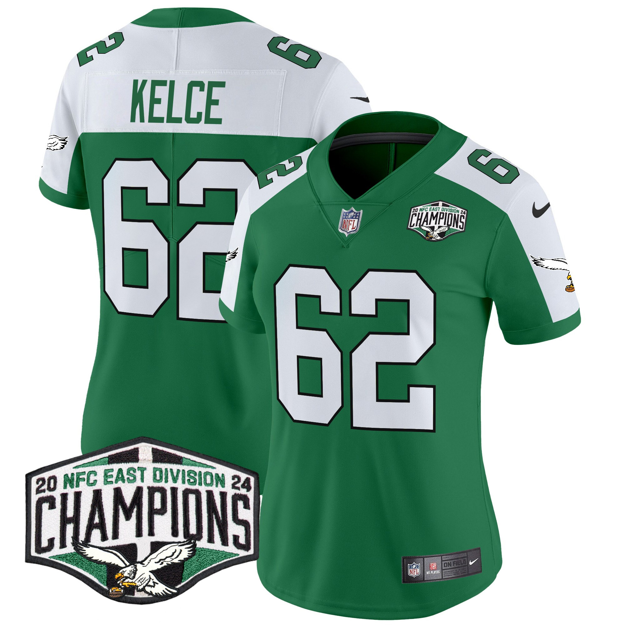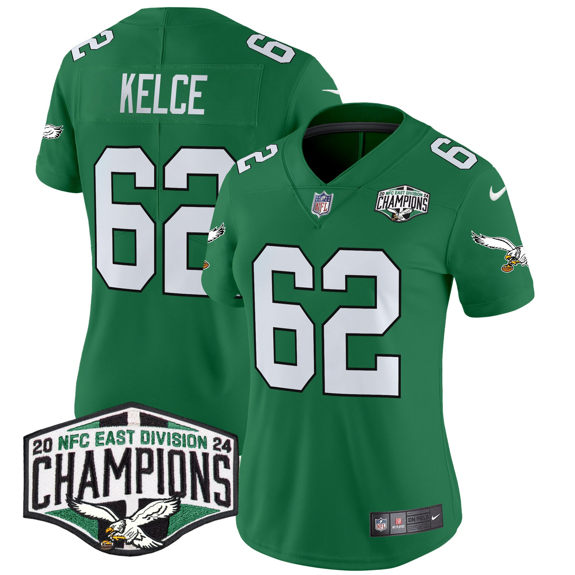 Women’s Philadelphia Eagles Kelly Green 2024 NFC East Division Champions Vapor Limited Jersey – All Stitched