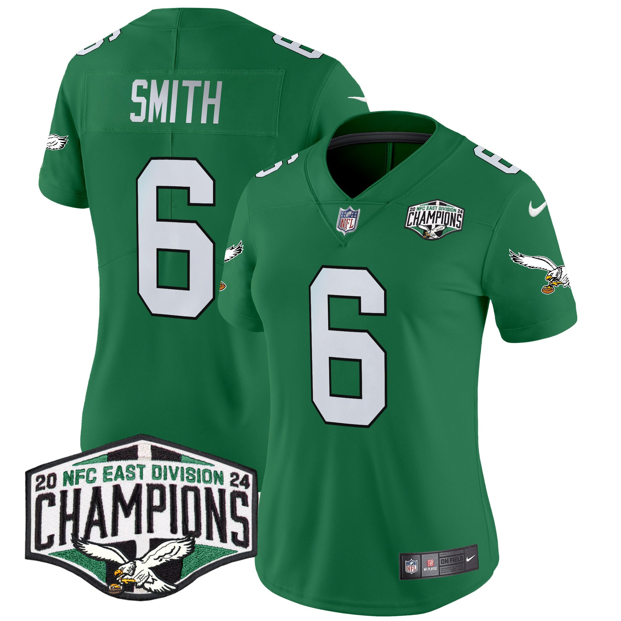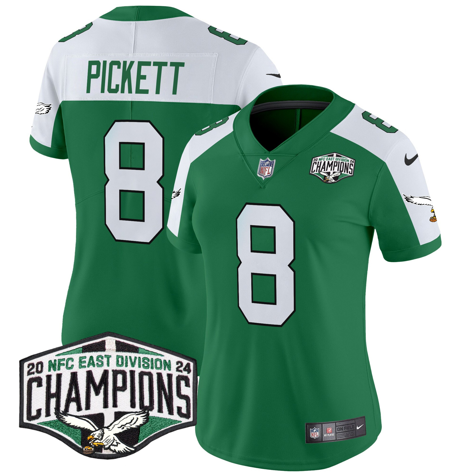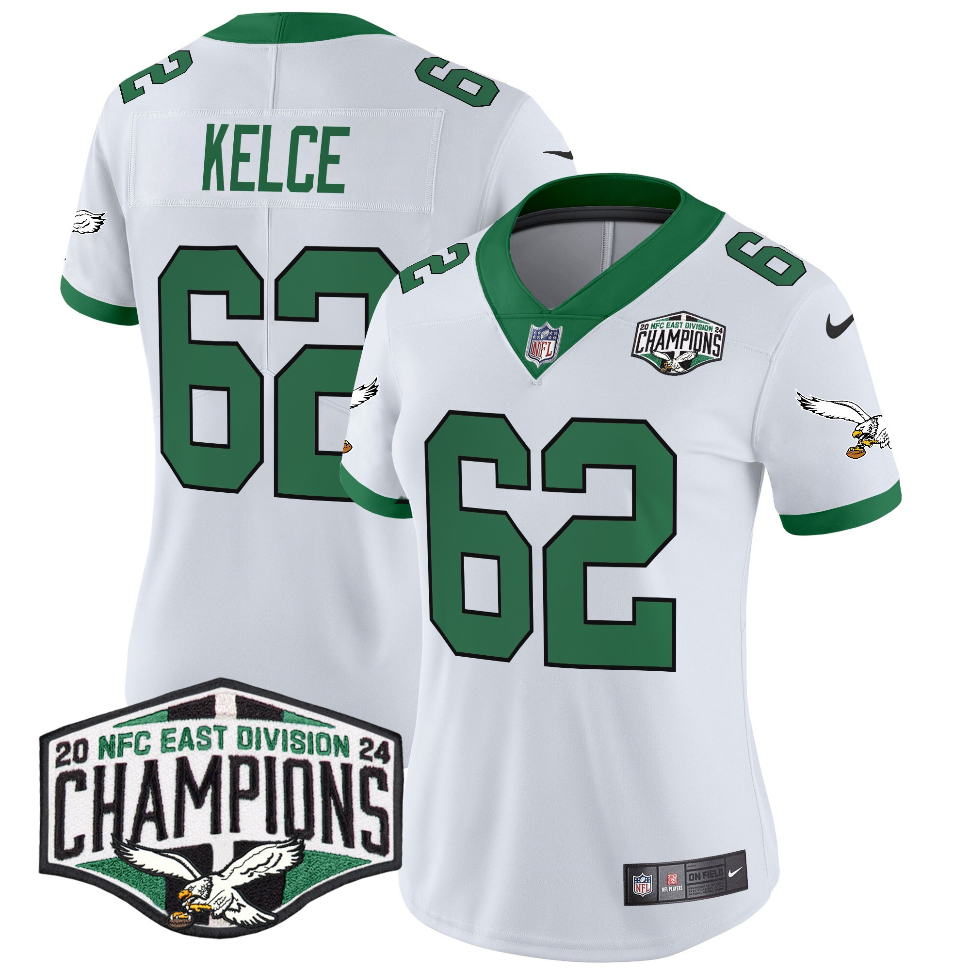 Women’s Philadelphia Eagles Kelly Green 2024 NFC East Division Champions Vapor Limited Jersey – All Stitched