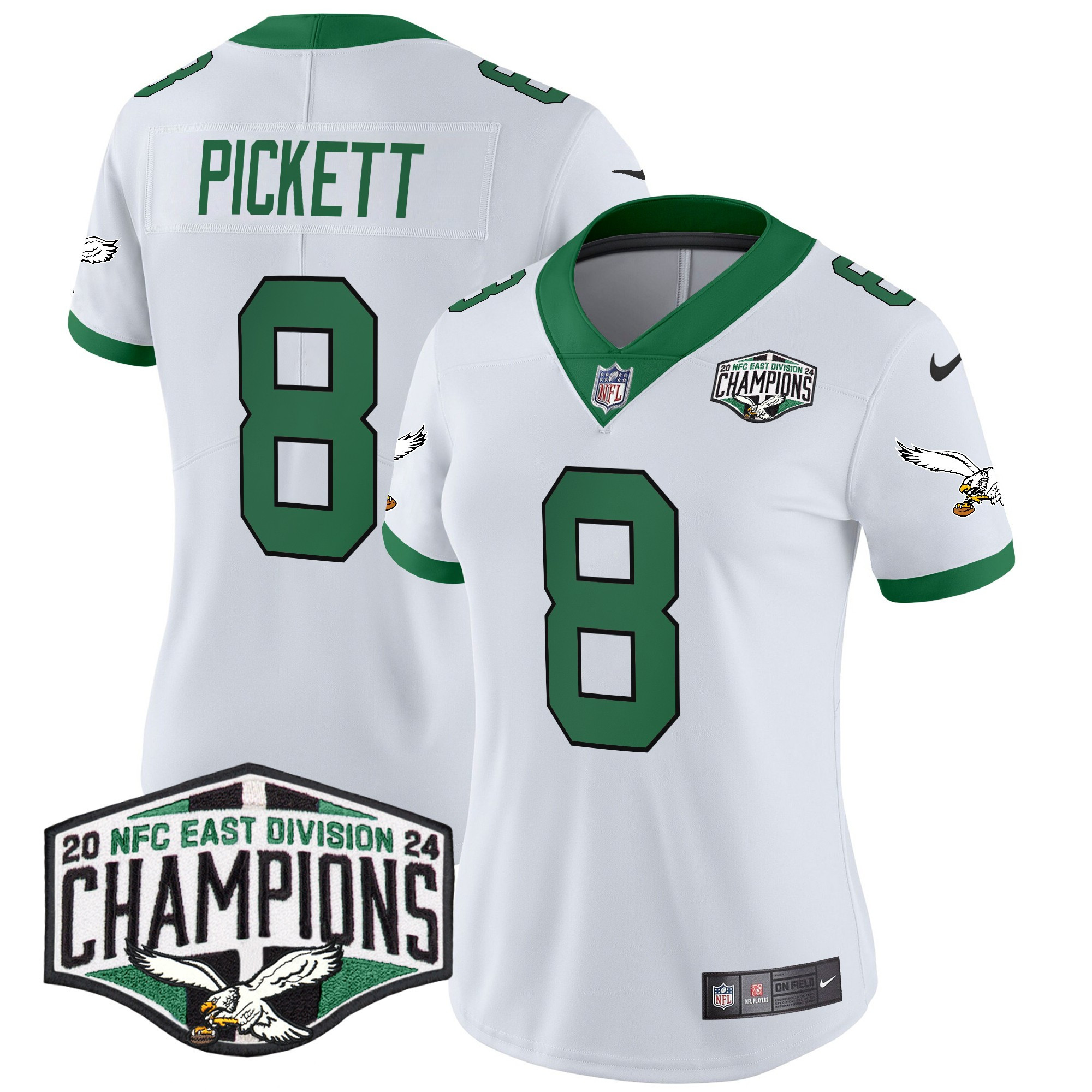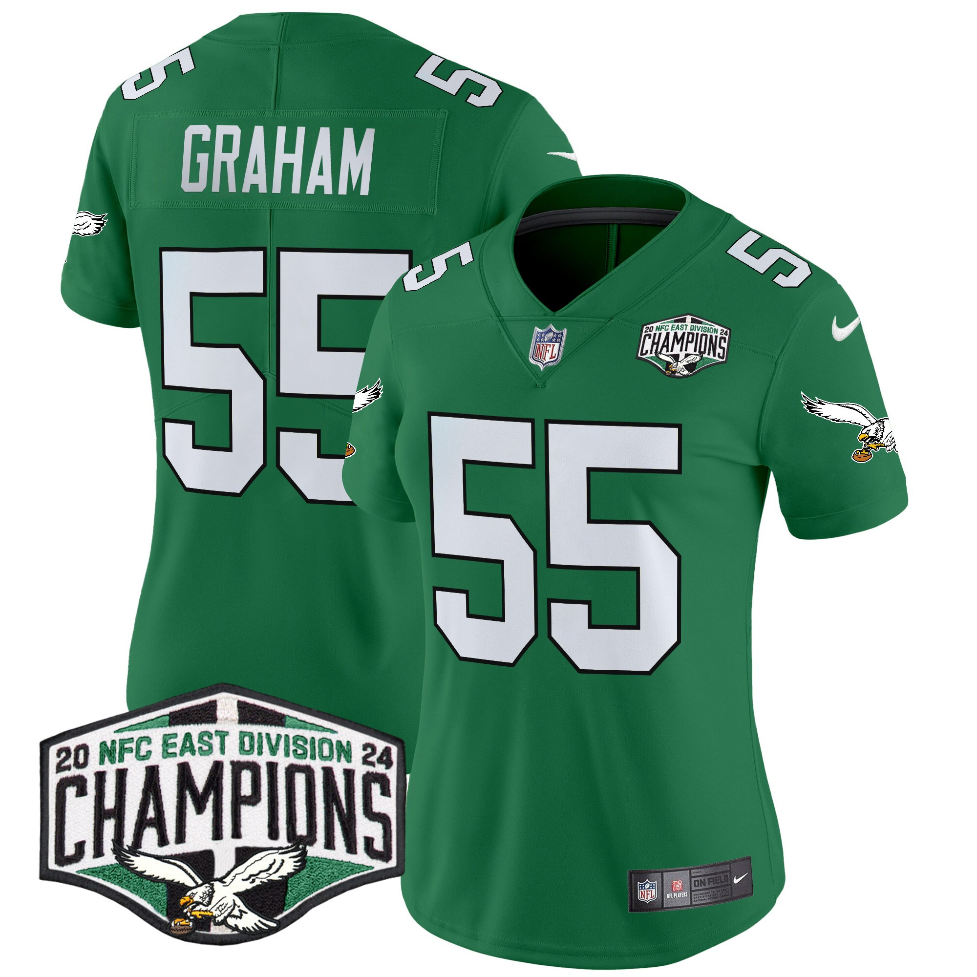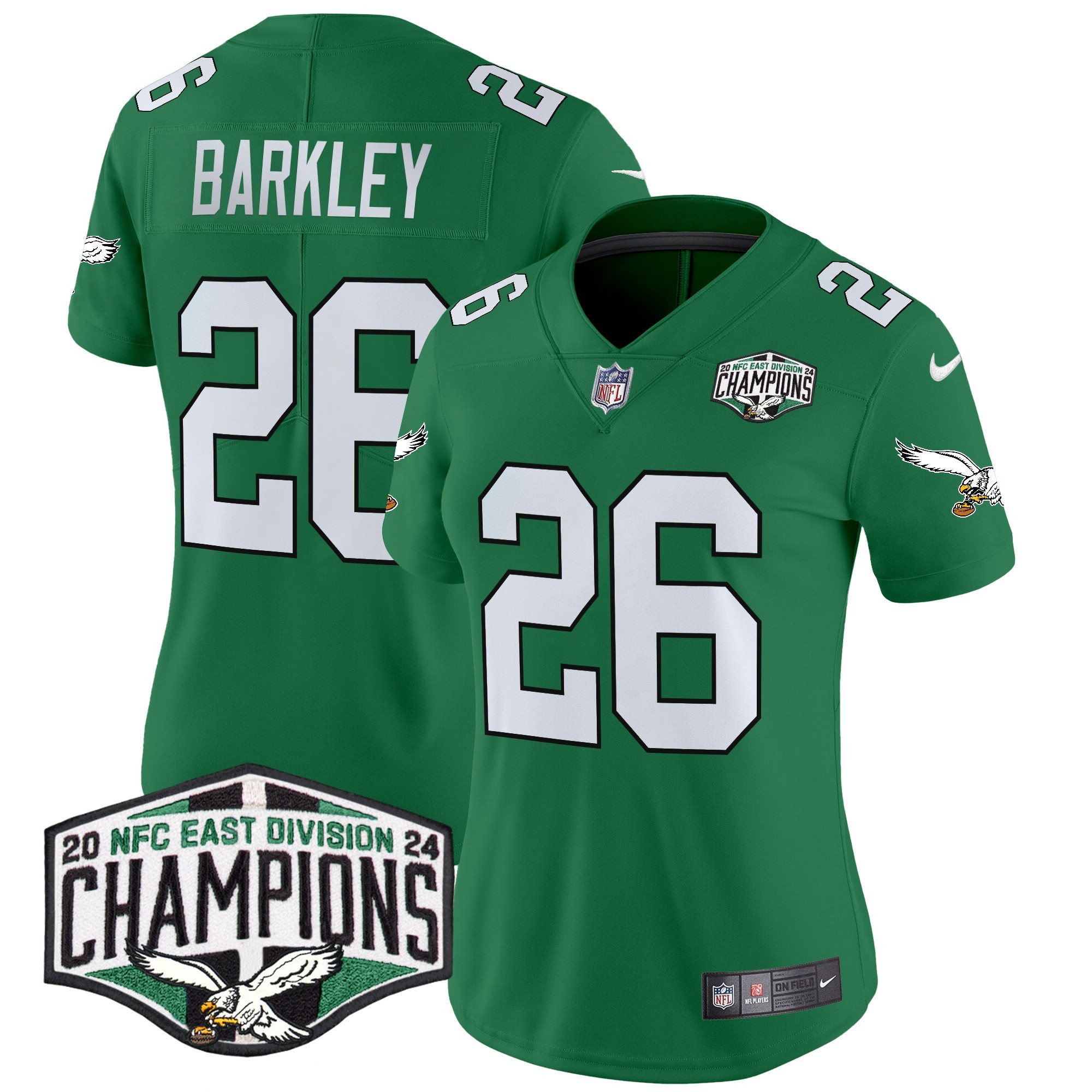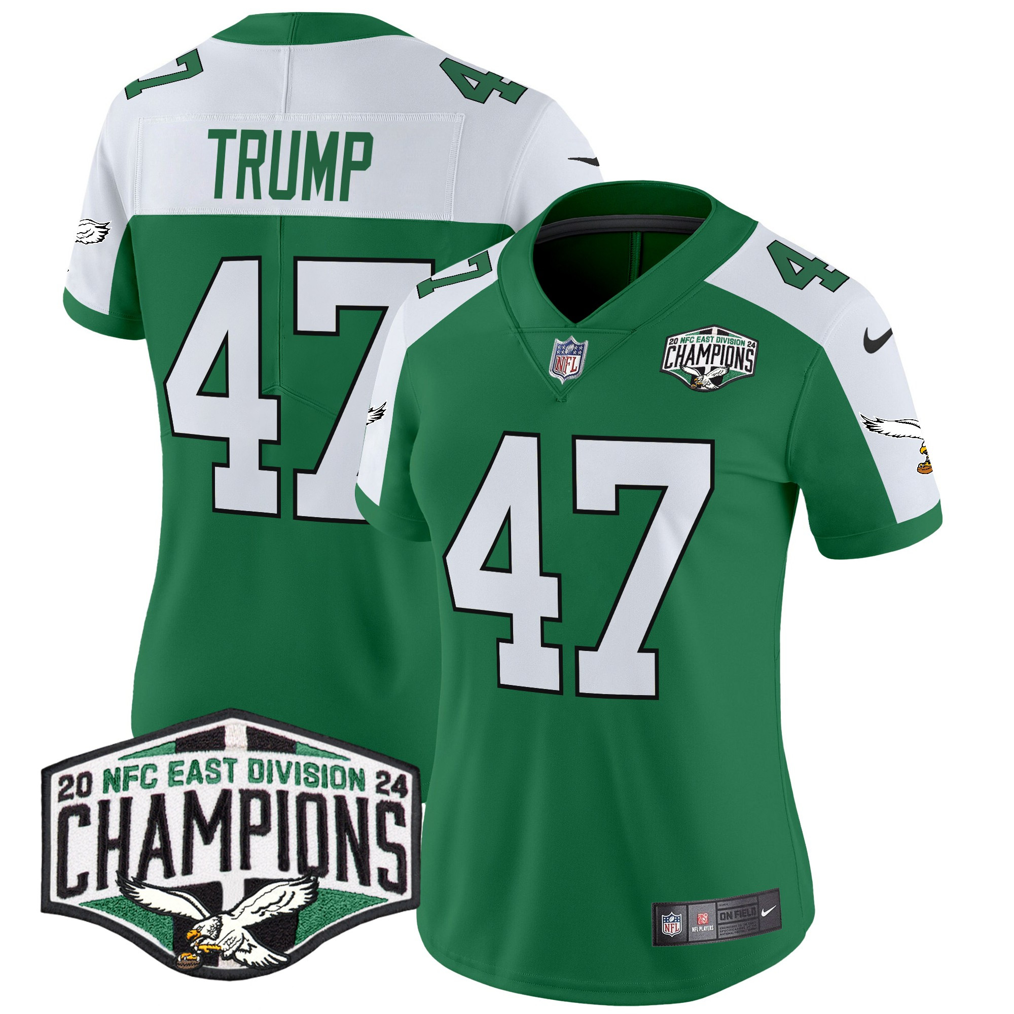 Women’s Philadelphia Eagles Kelly Green 2024 NFC East Division Champions Vapor Limited Jersey – All Stitched
