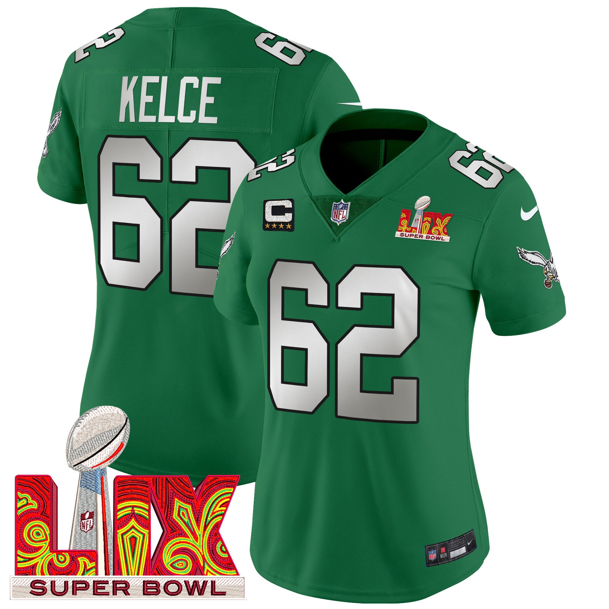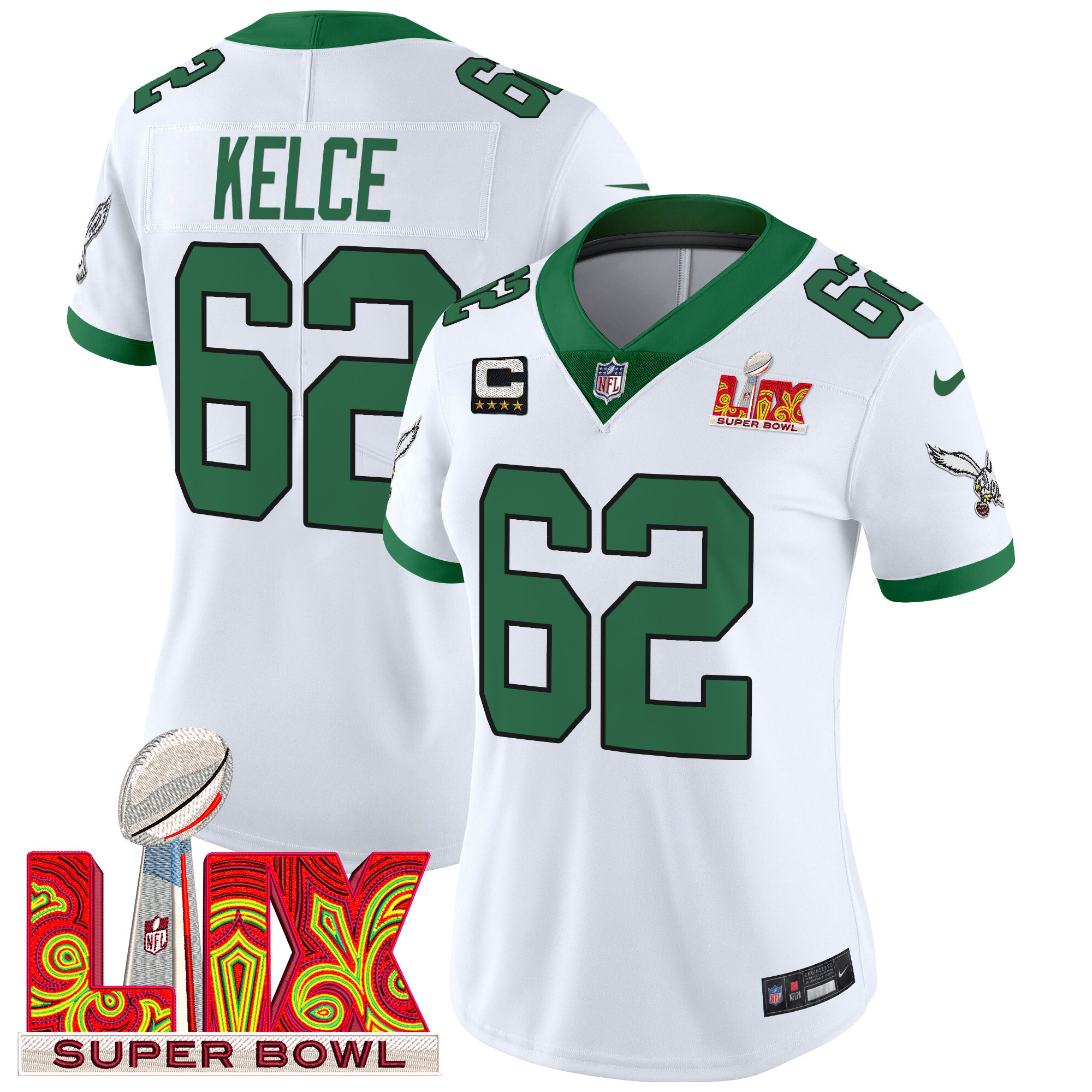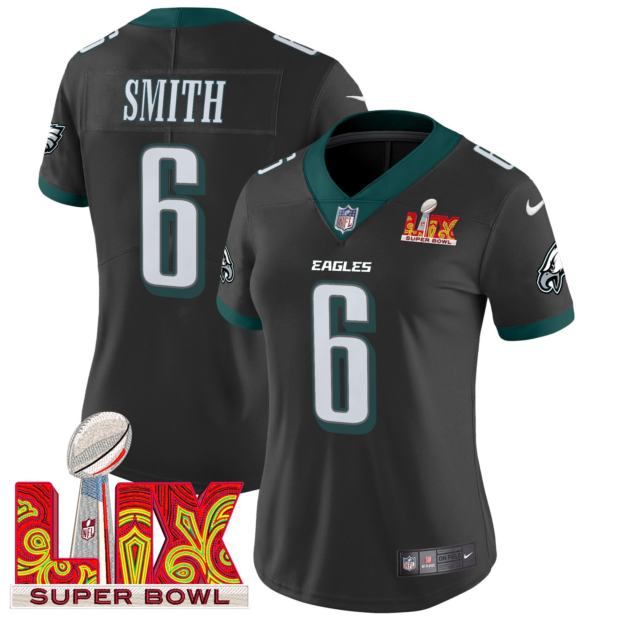 Women’s Philadelphia Eagles Super Bowl LIX Patch Vapor Limited Jersey – All Stitched