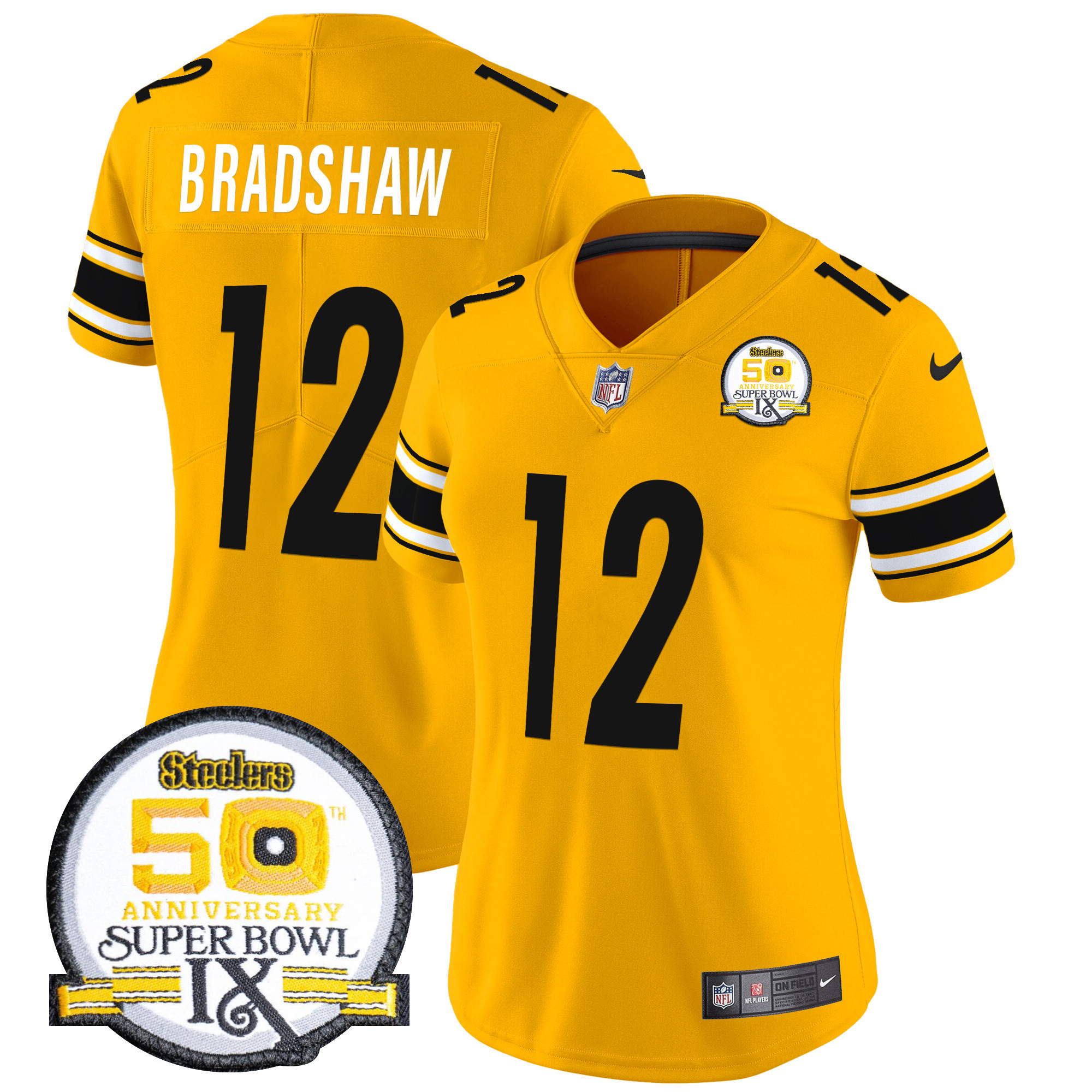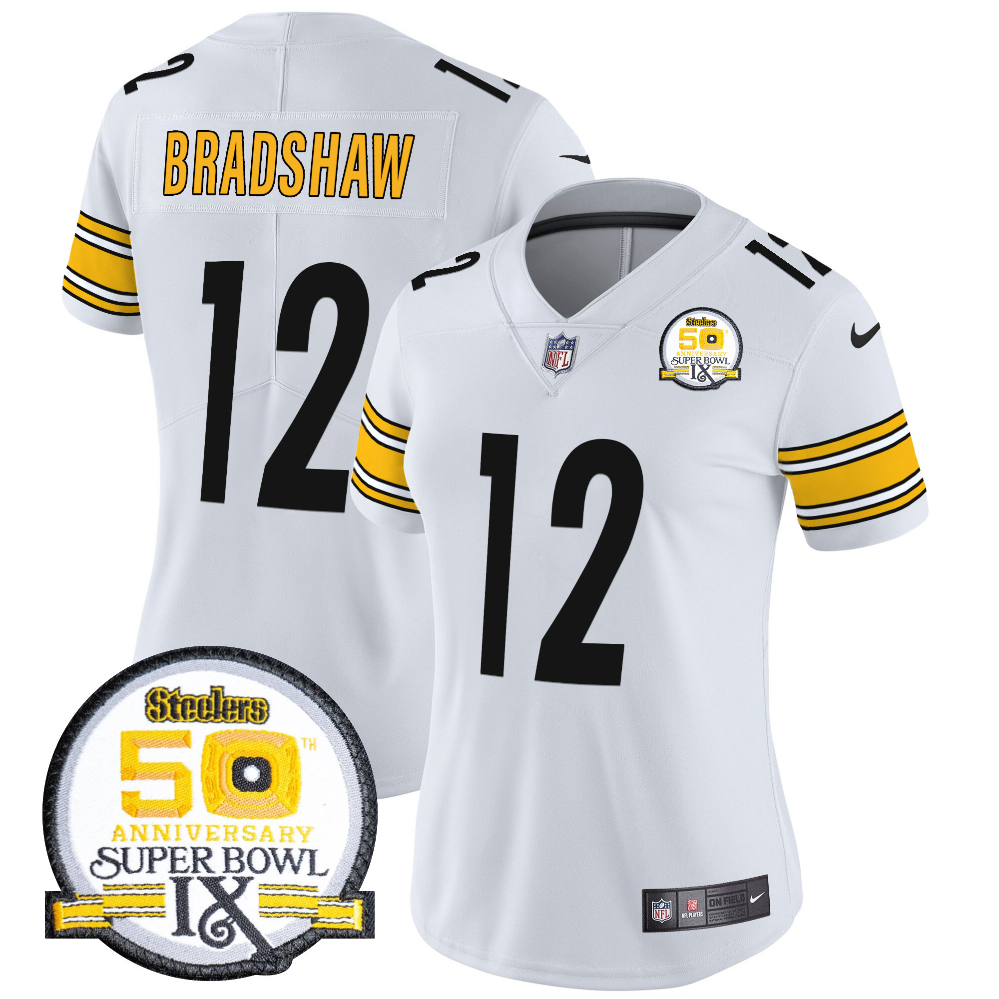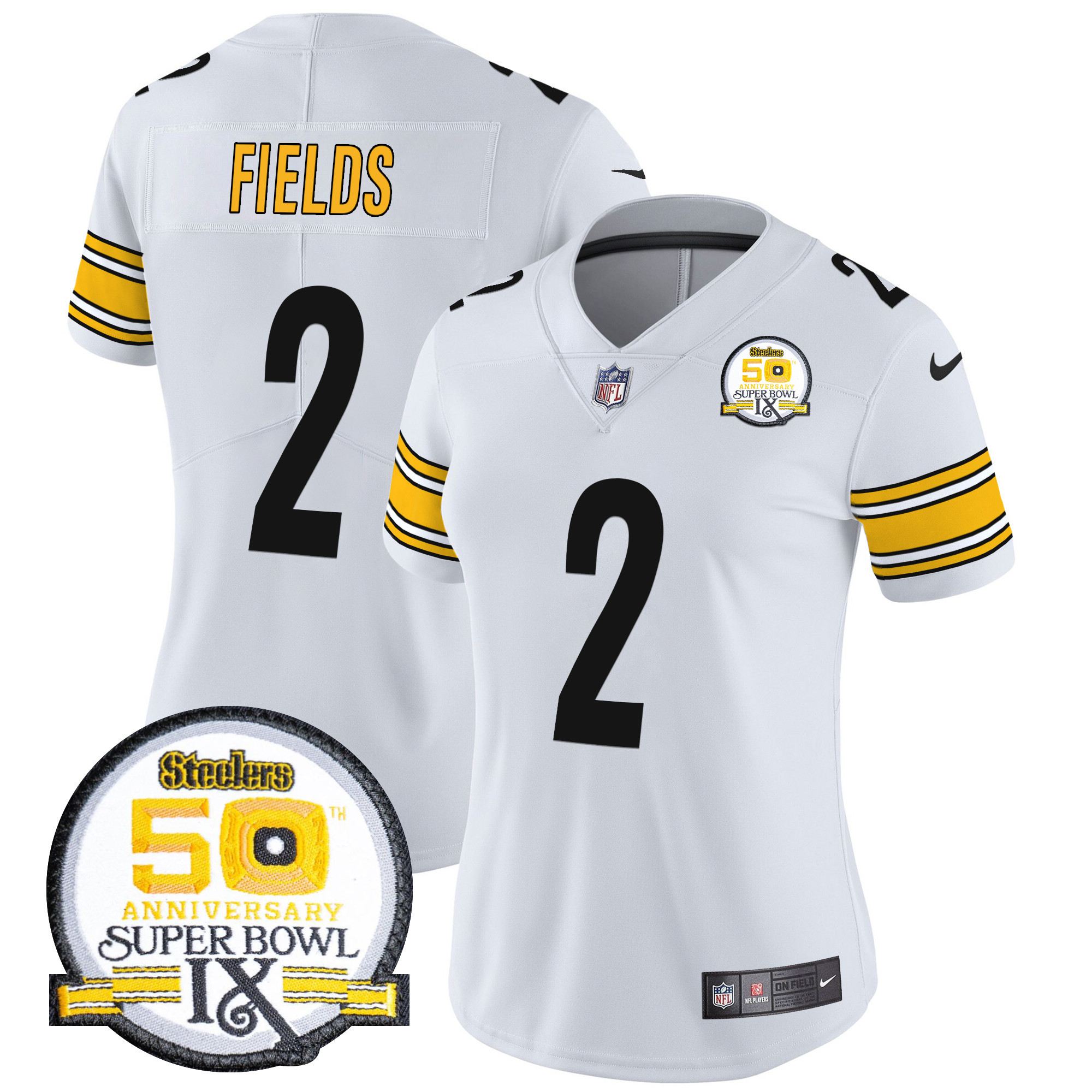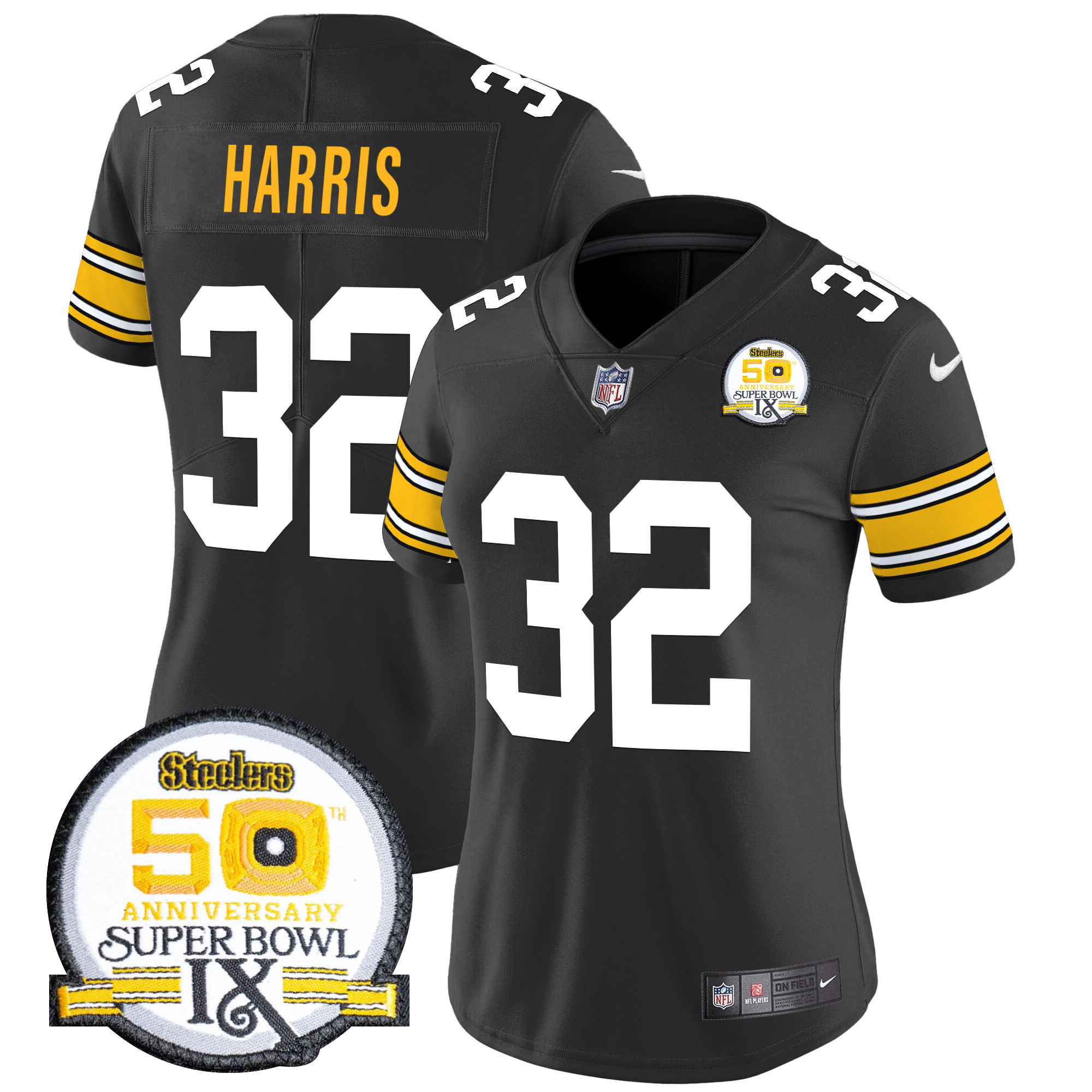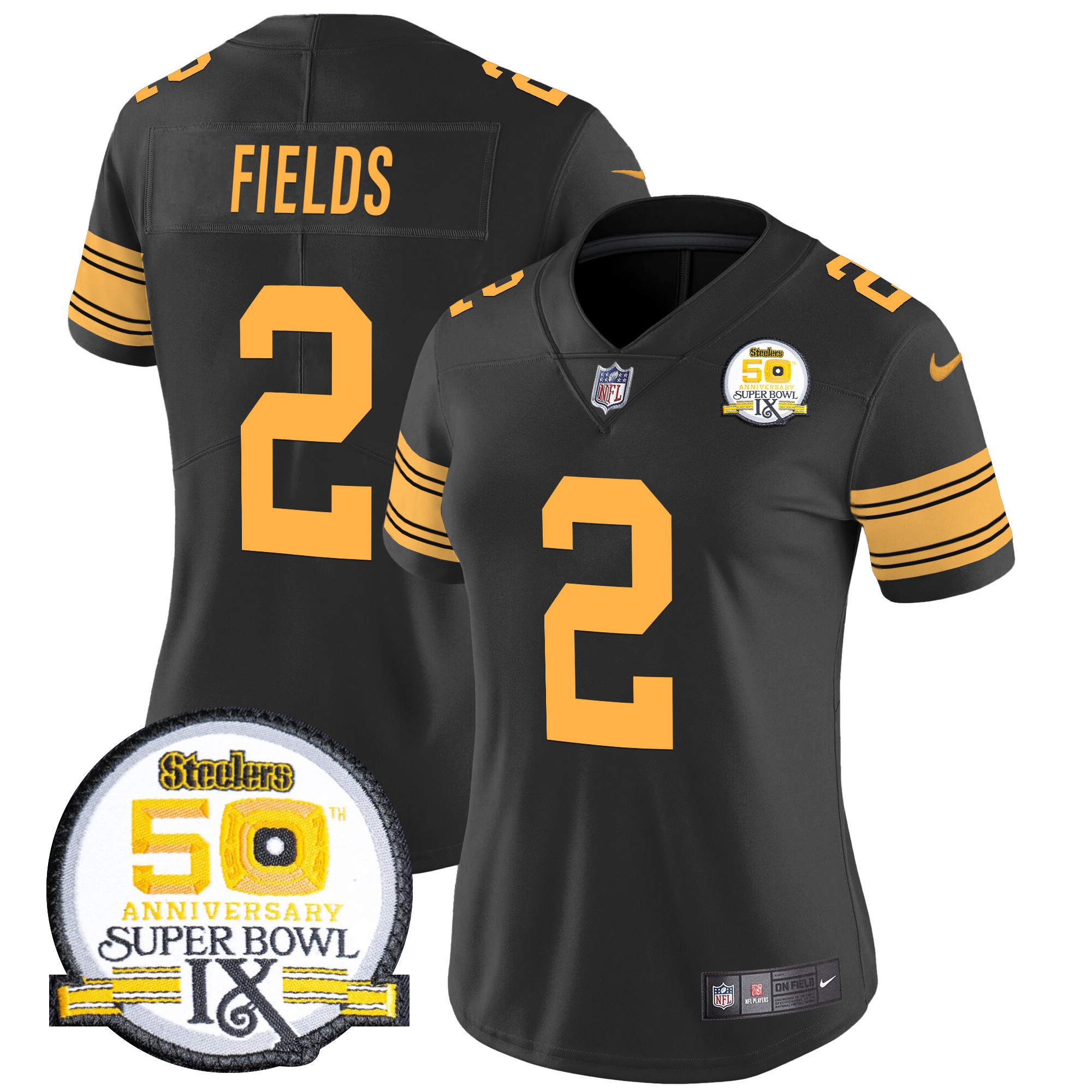 Women’s Pittsburgh Steelers 50th Anniversary Of Super Bowl IX Patch Vapor Limited Jersey – All Stitched