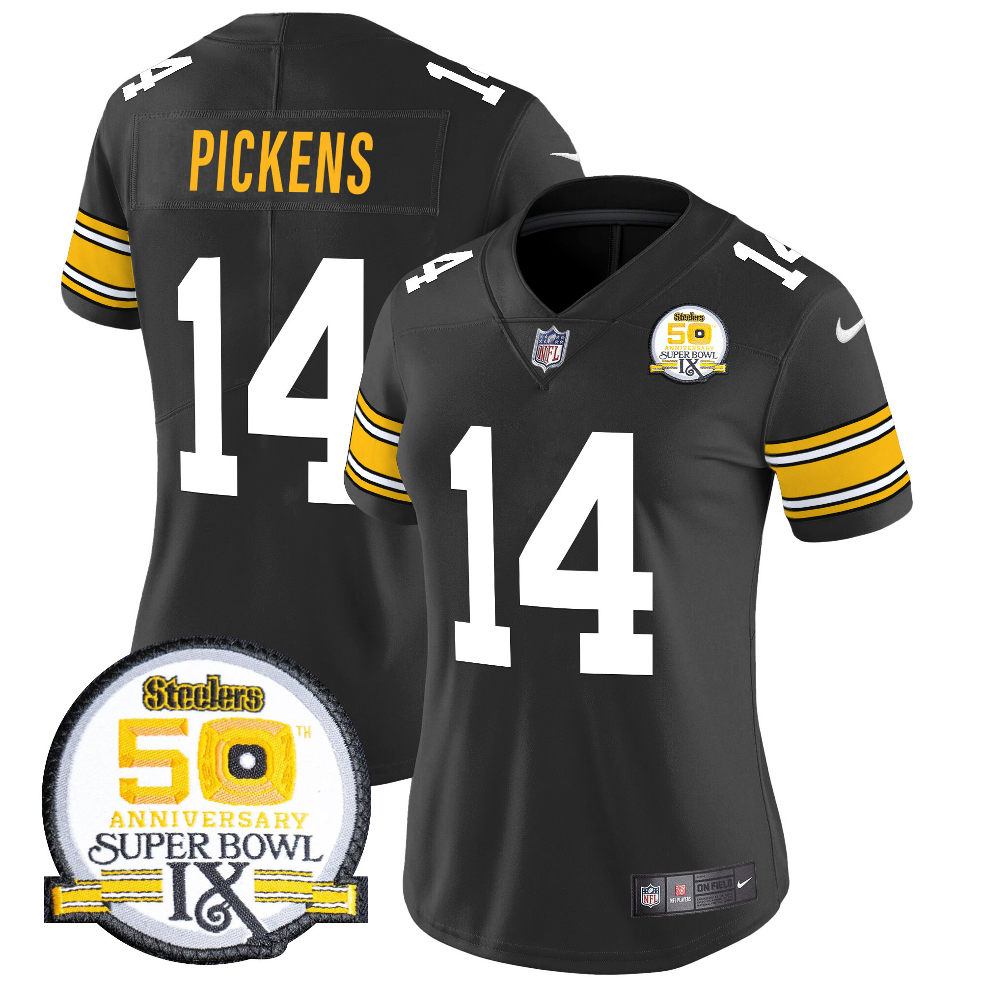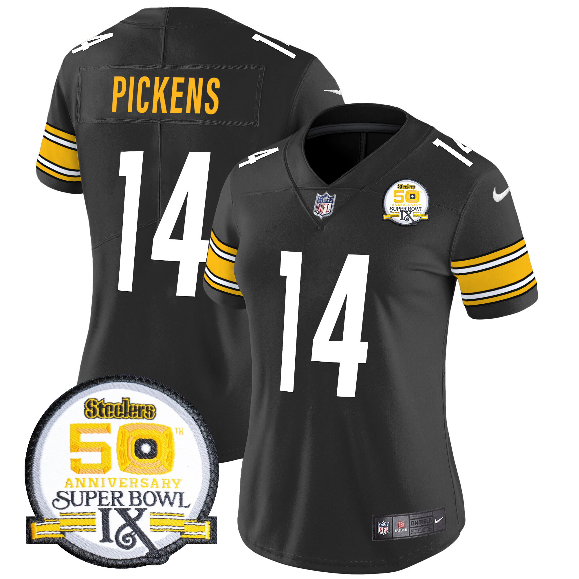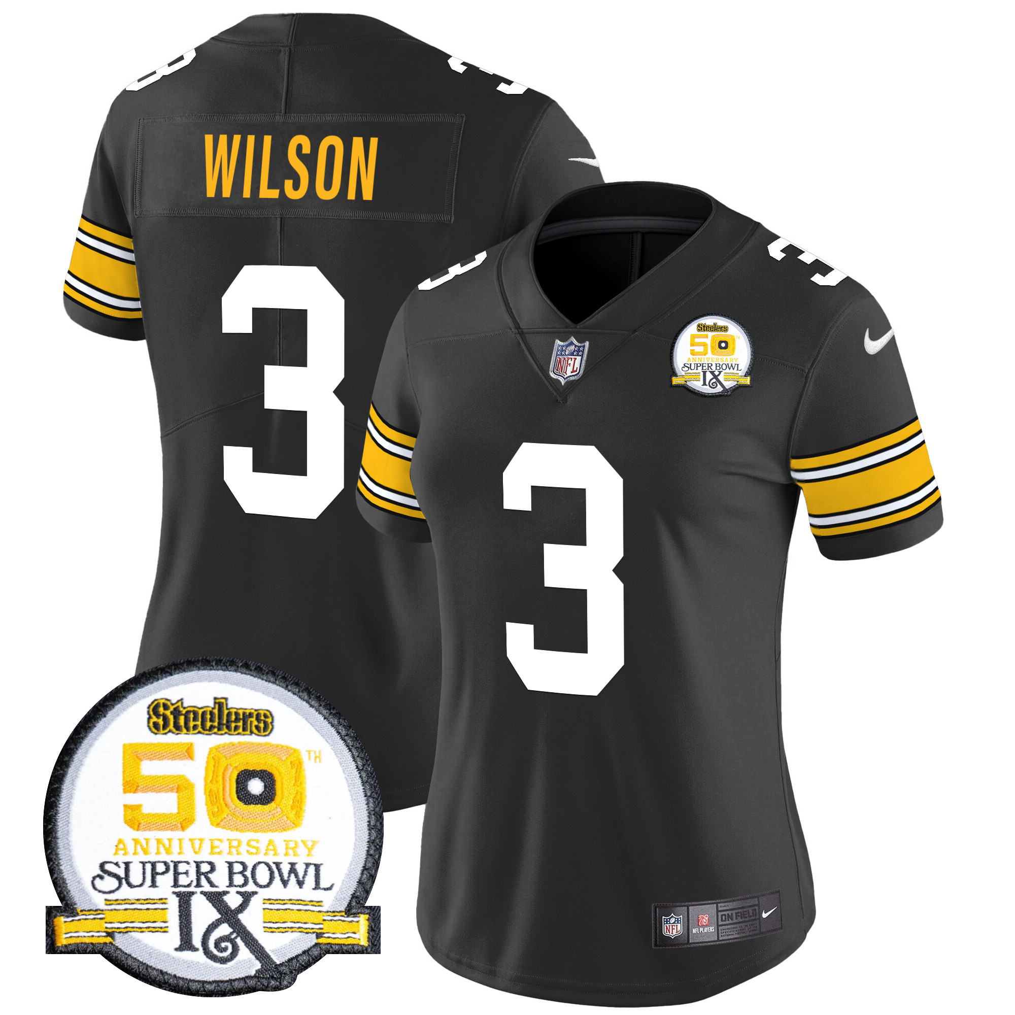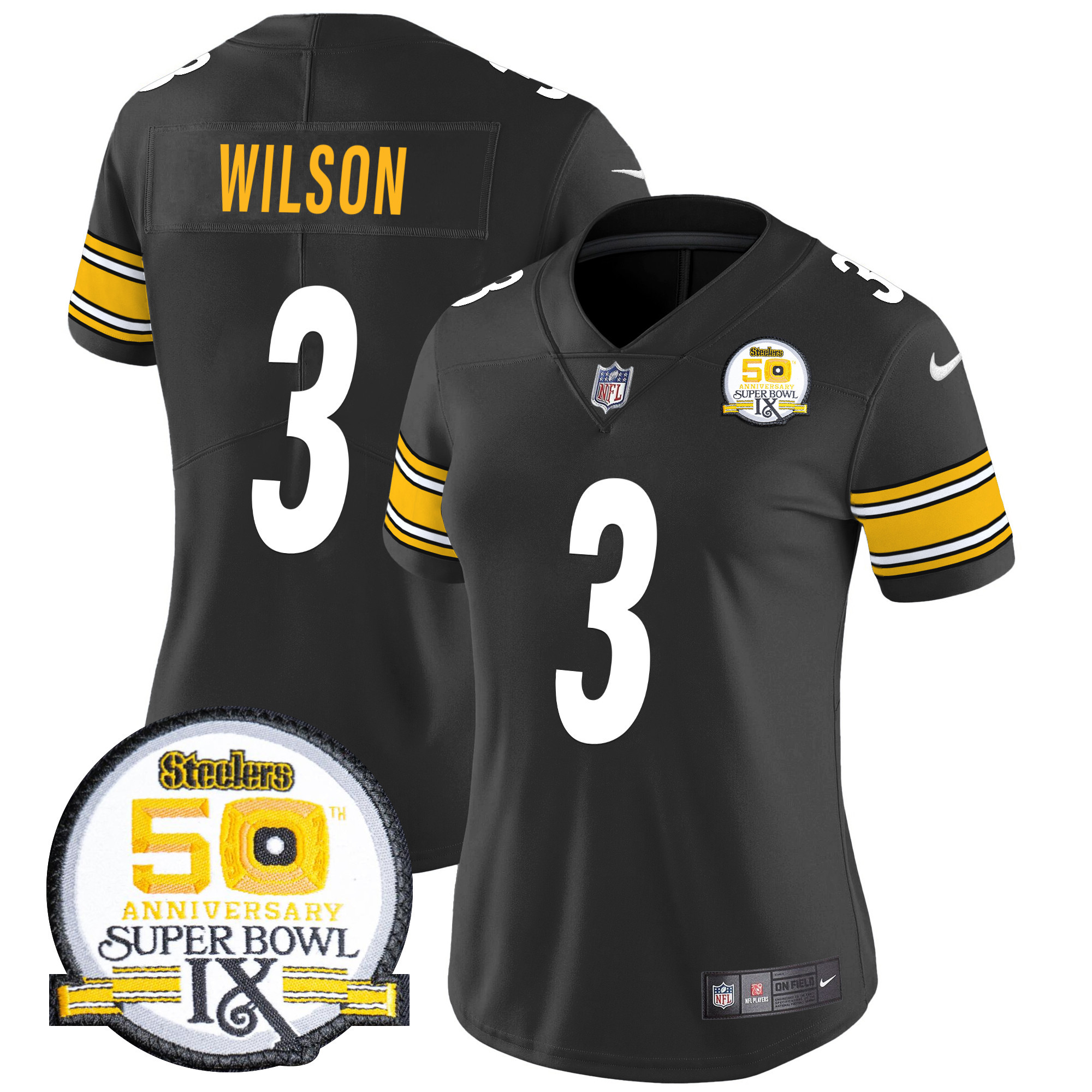 Women’s Pittsburgh Steelers 50th Anniversary Of Super Bowl IX Patch Vapor Limited Jersey – All Stitched