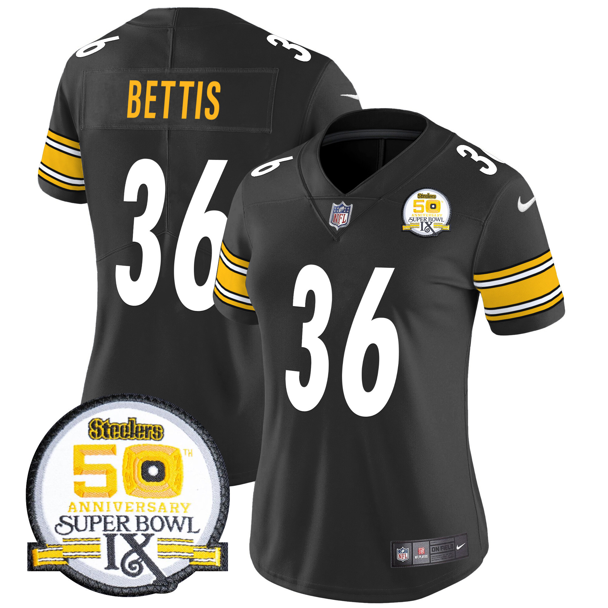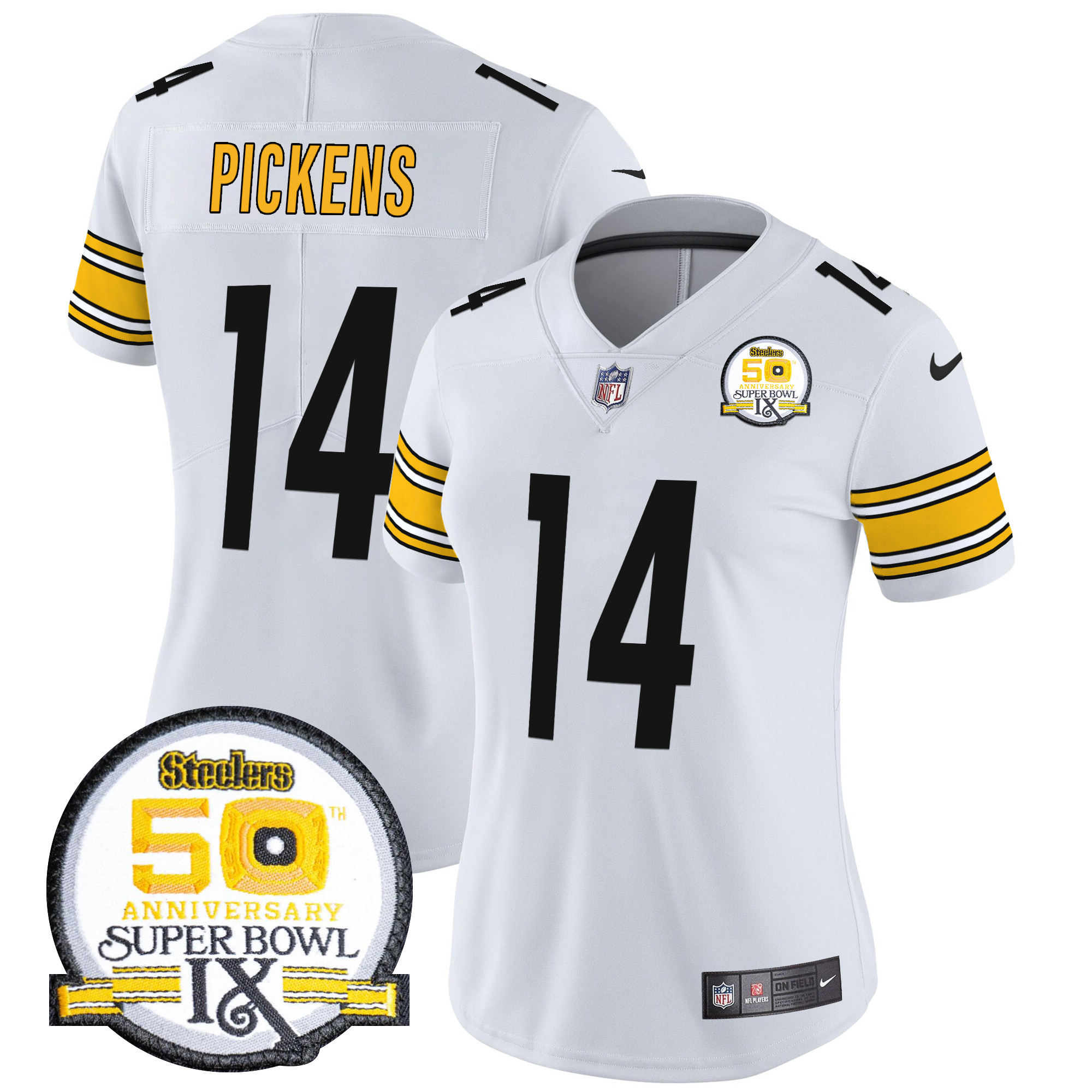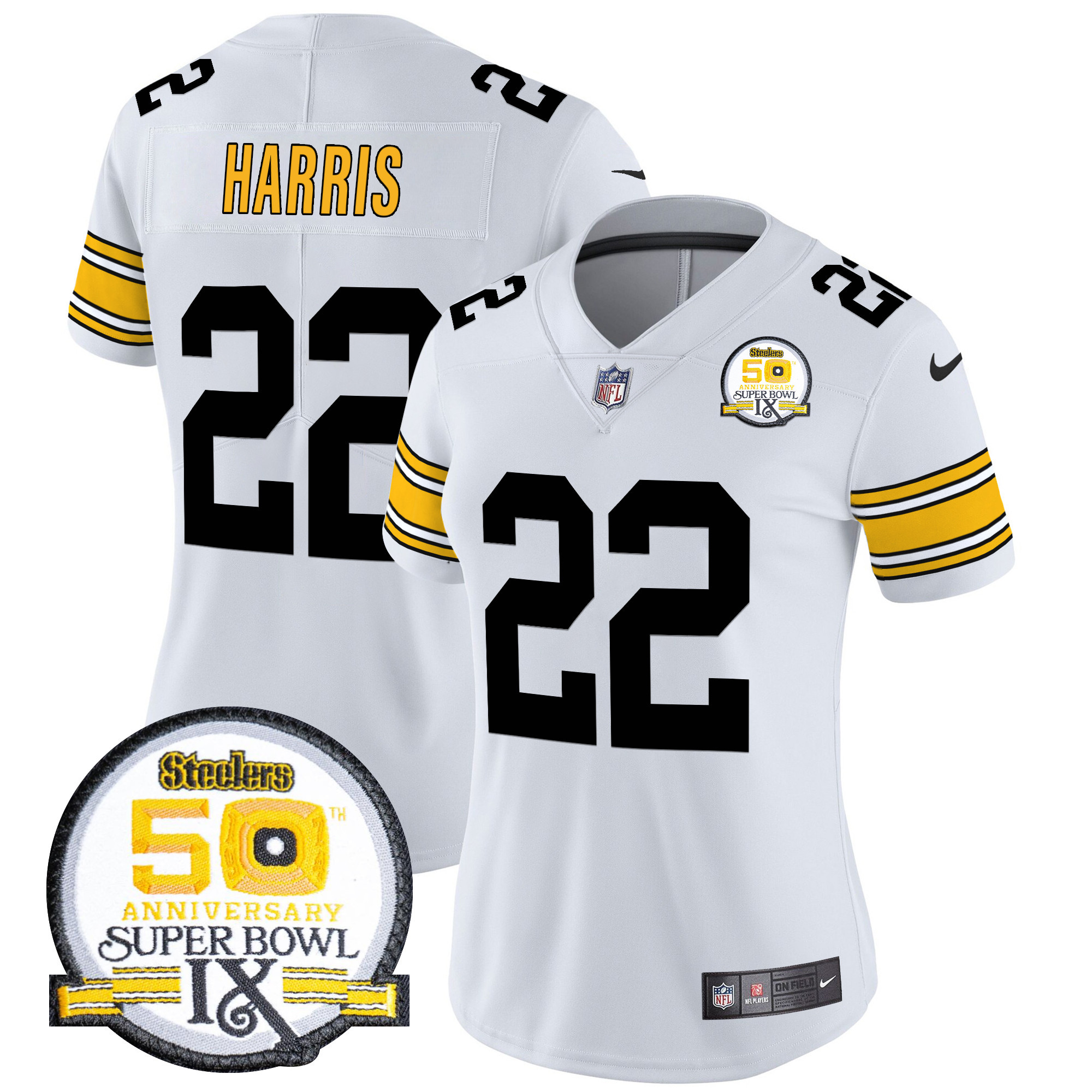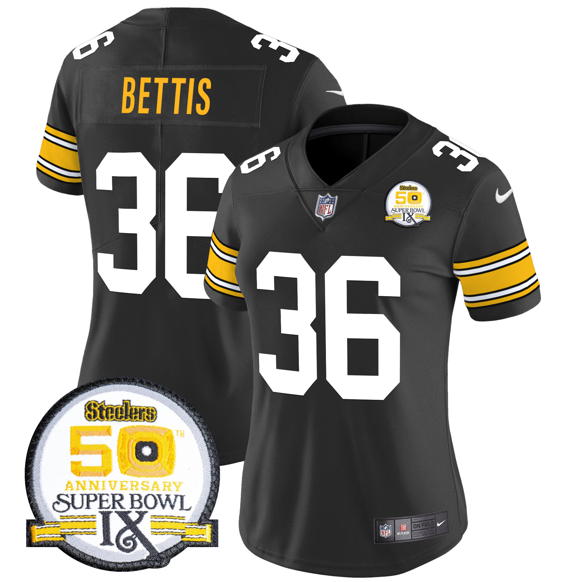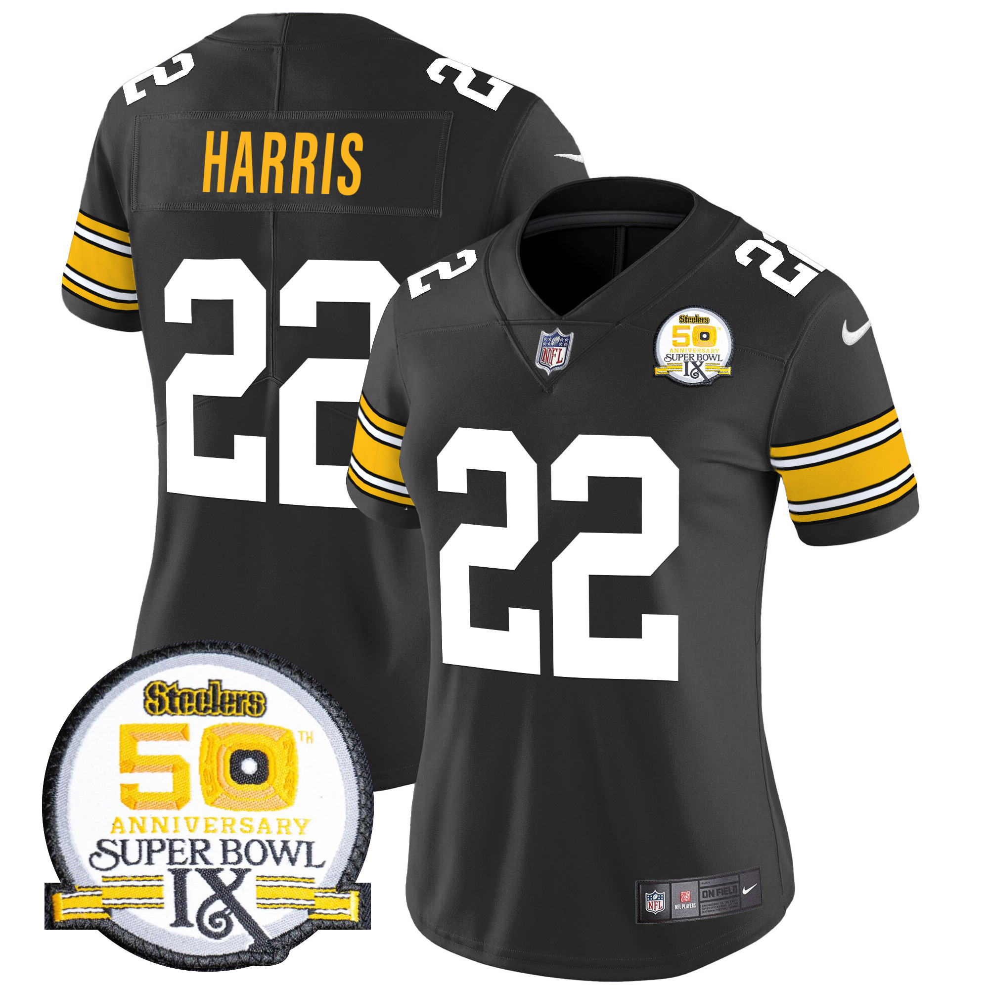 Women’s Pittsburgh Steelers 50th Anniversary Of Super Bowl IX Patch Vapor Limited Jersey – All Stitched