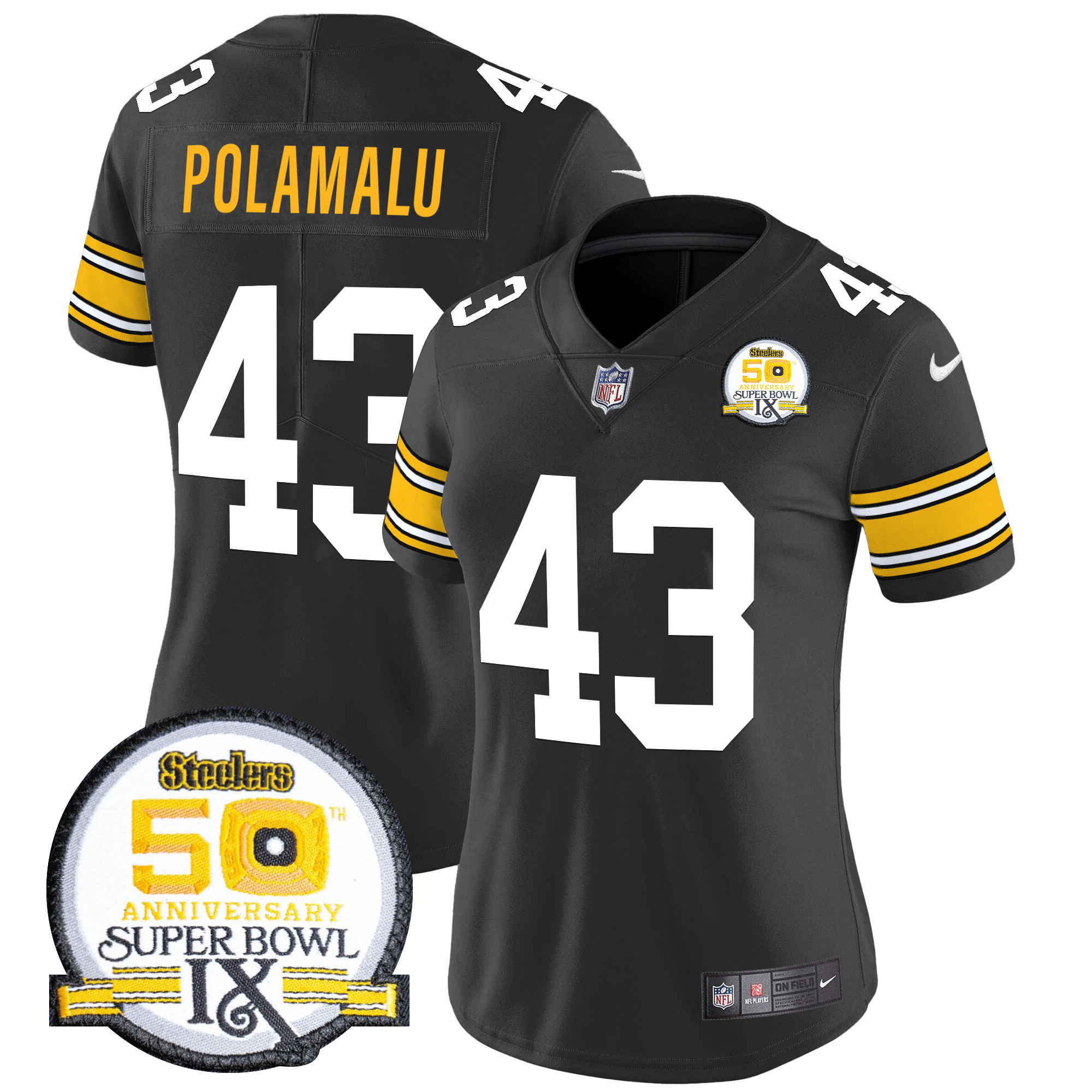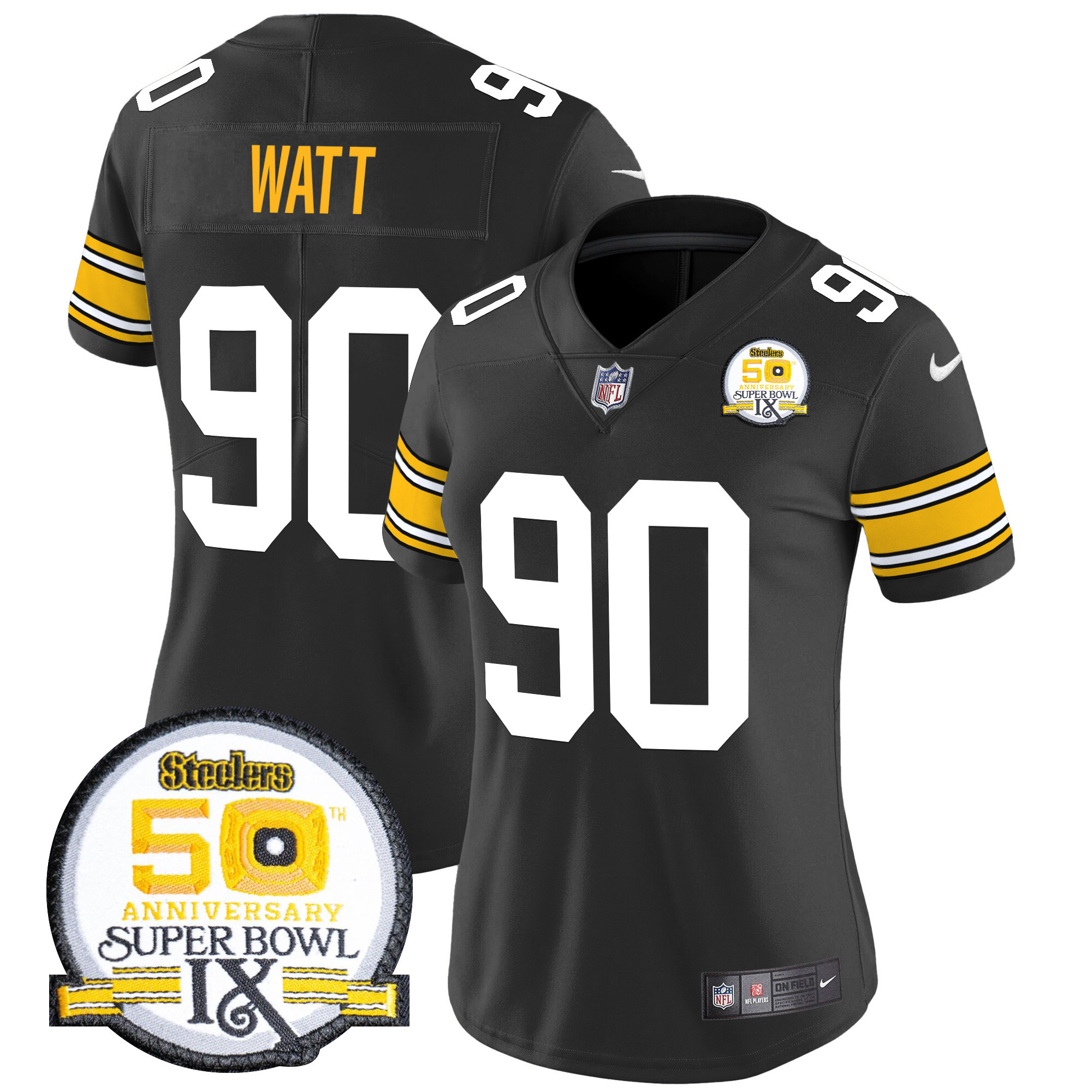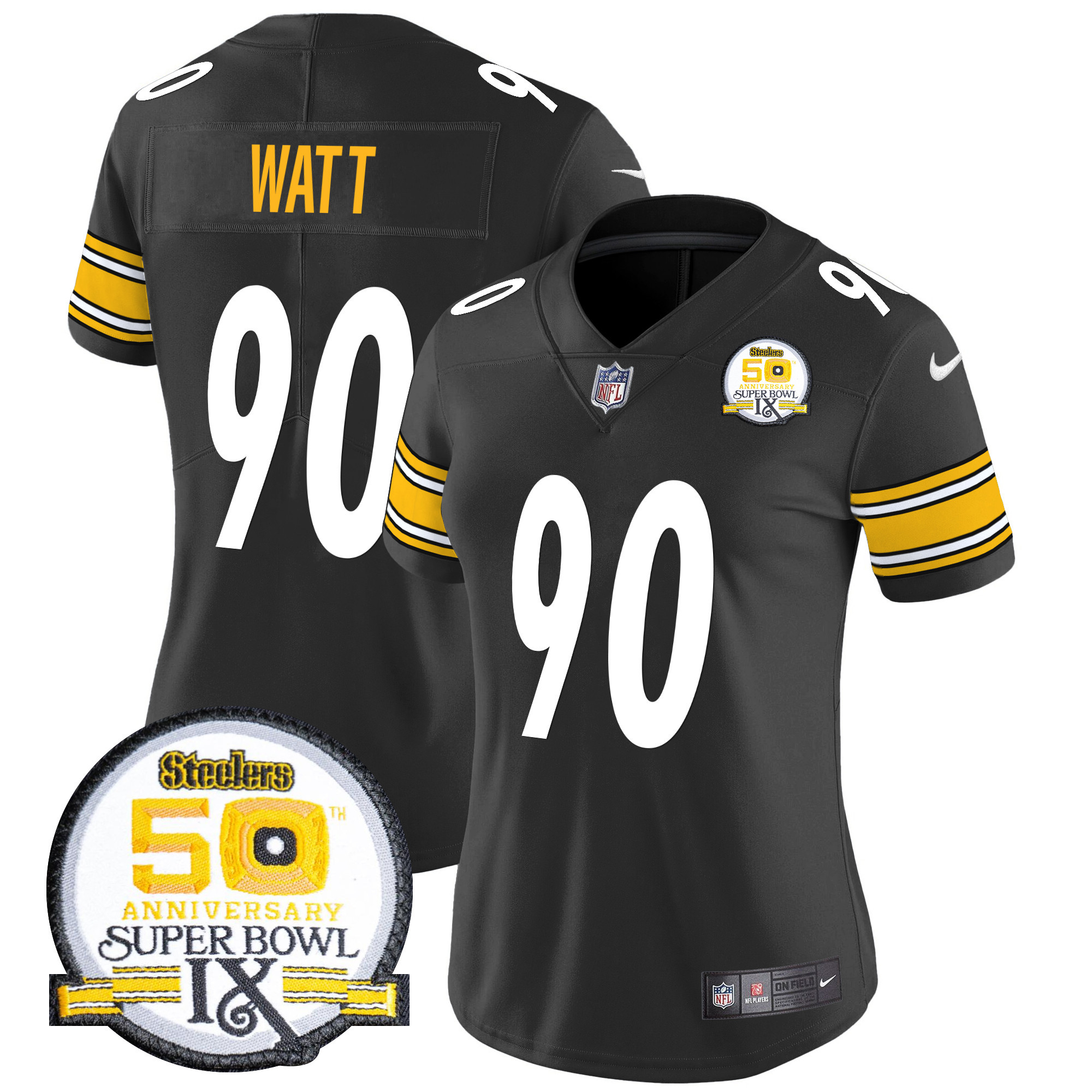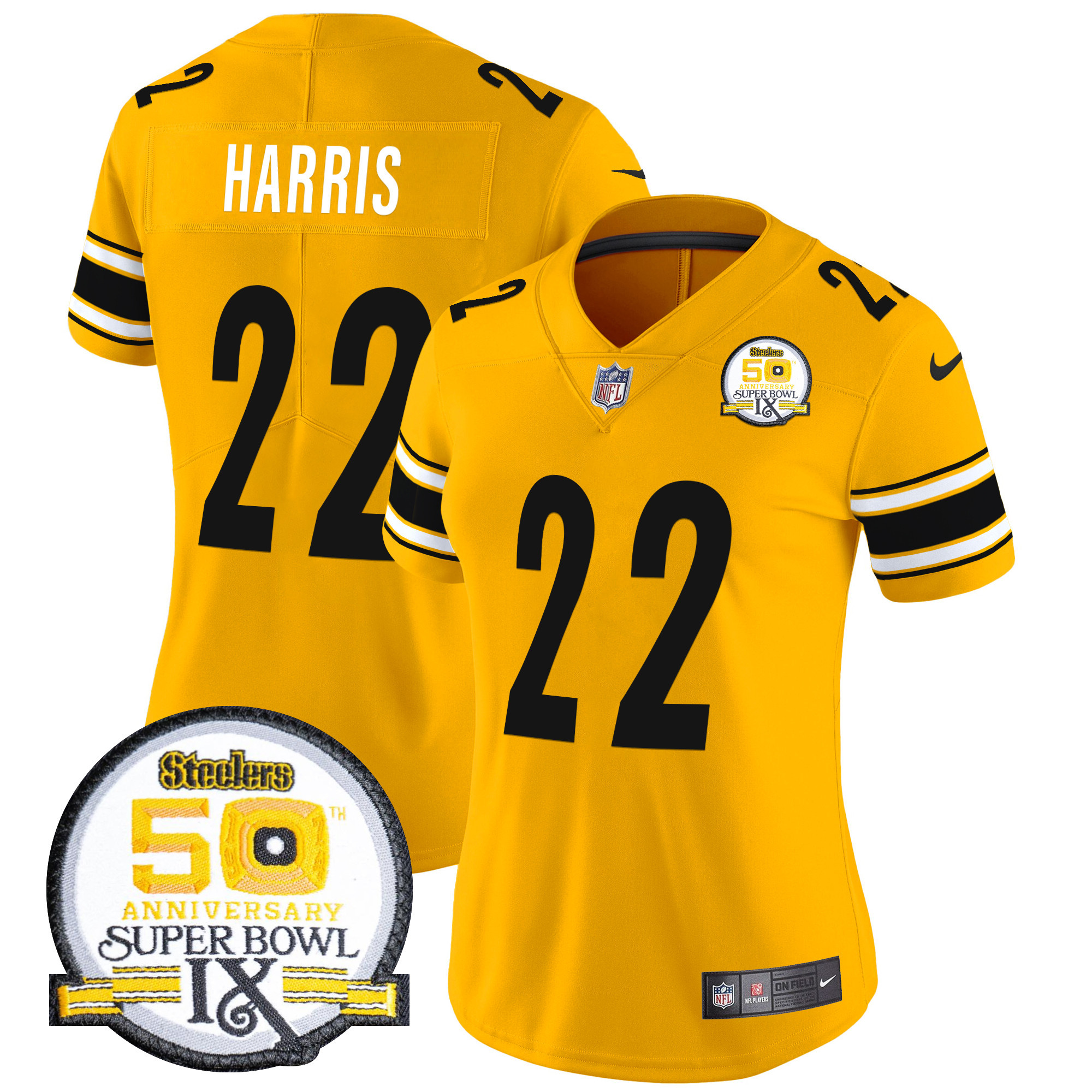 Women’s Pittsburgh Steelers 50th Anniversary Of Super Bowl IX Patch Vapor Limited Jersey – All Stitched