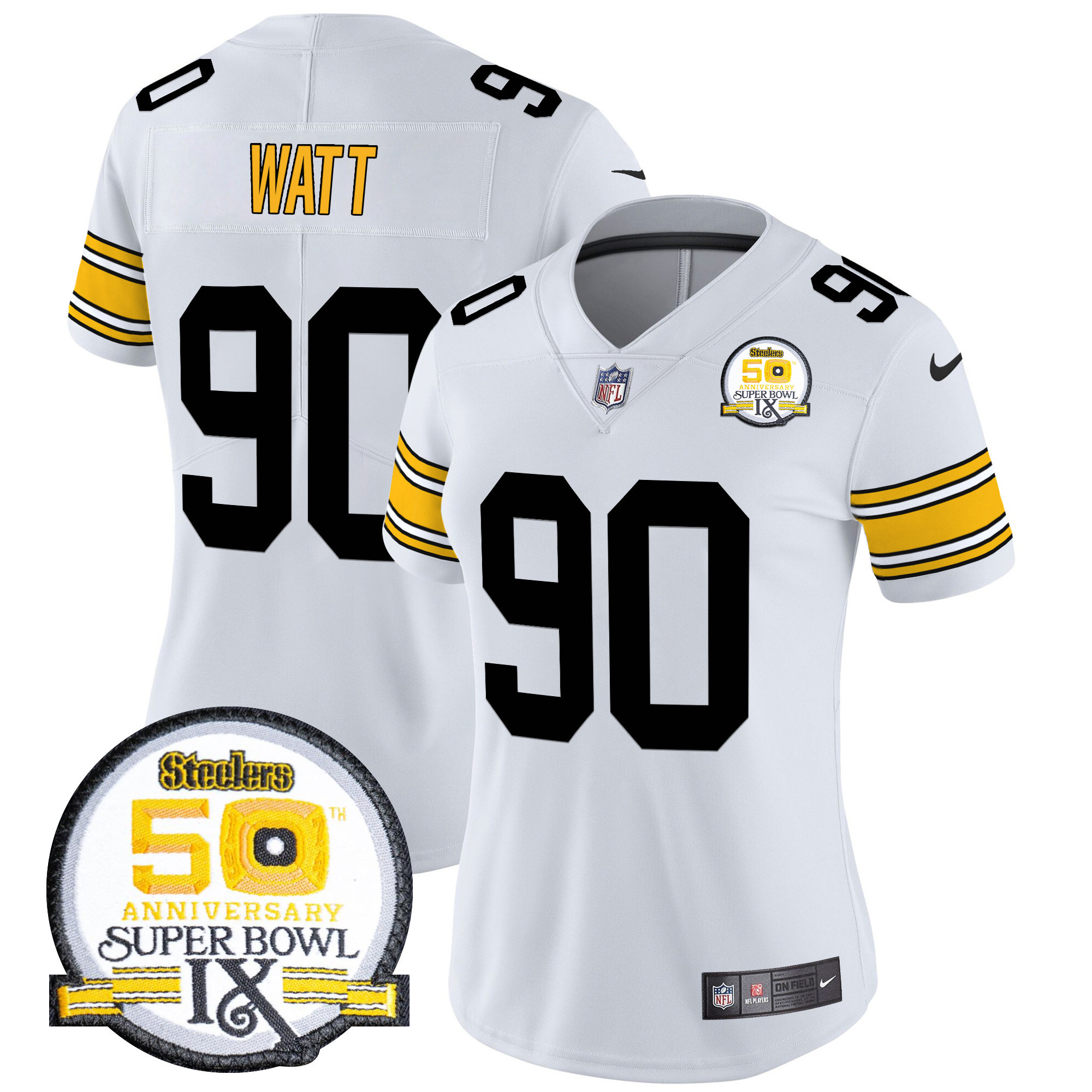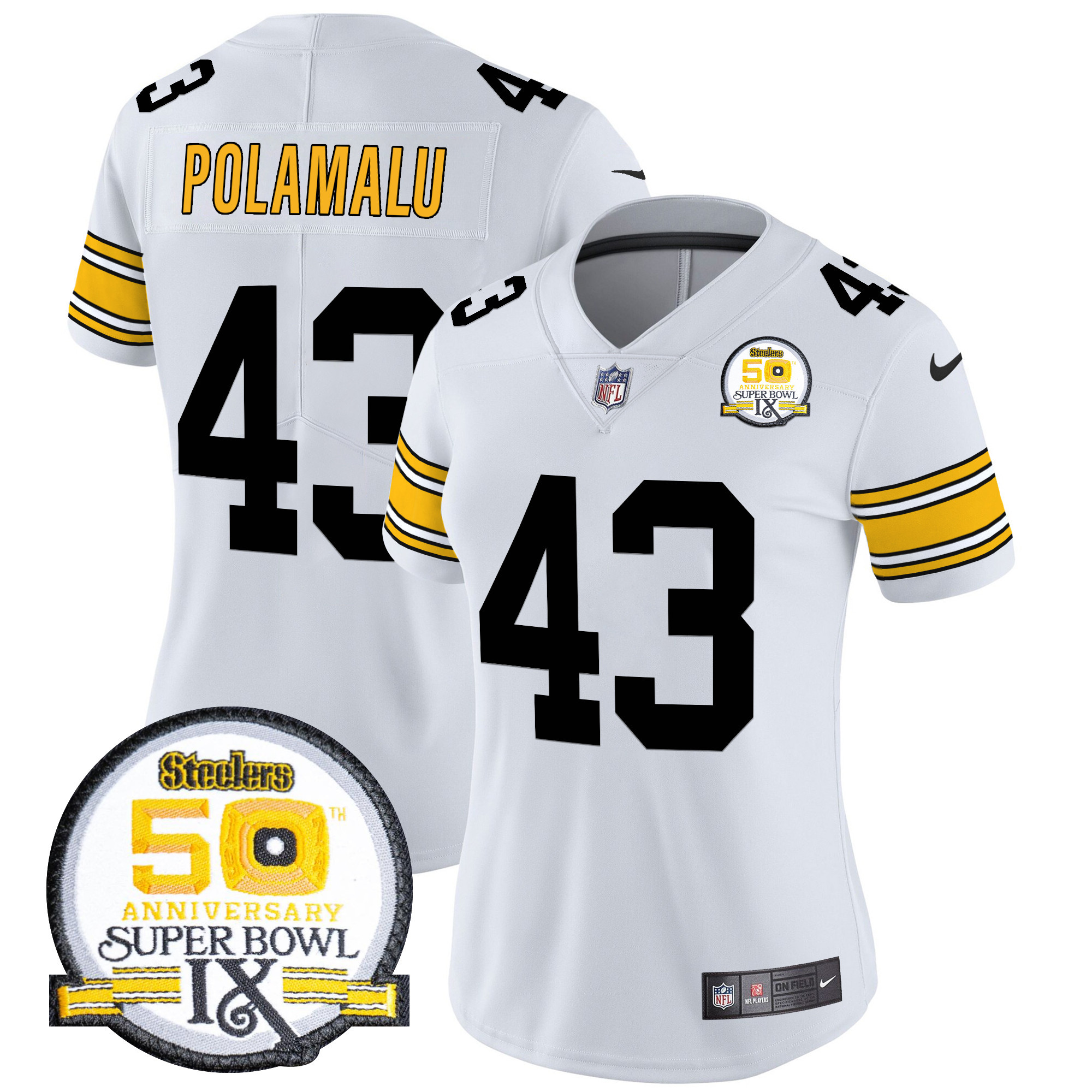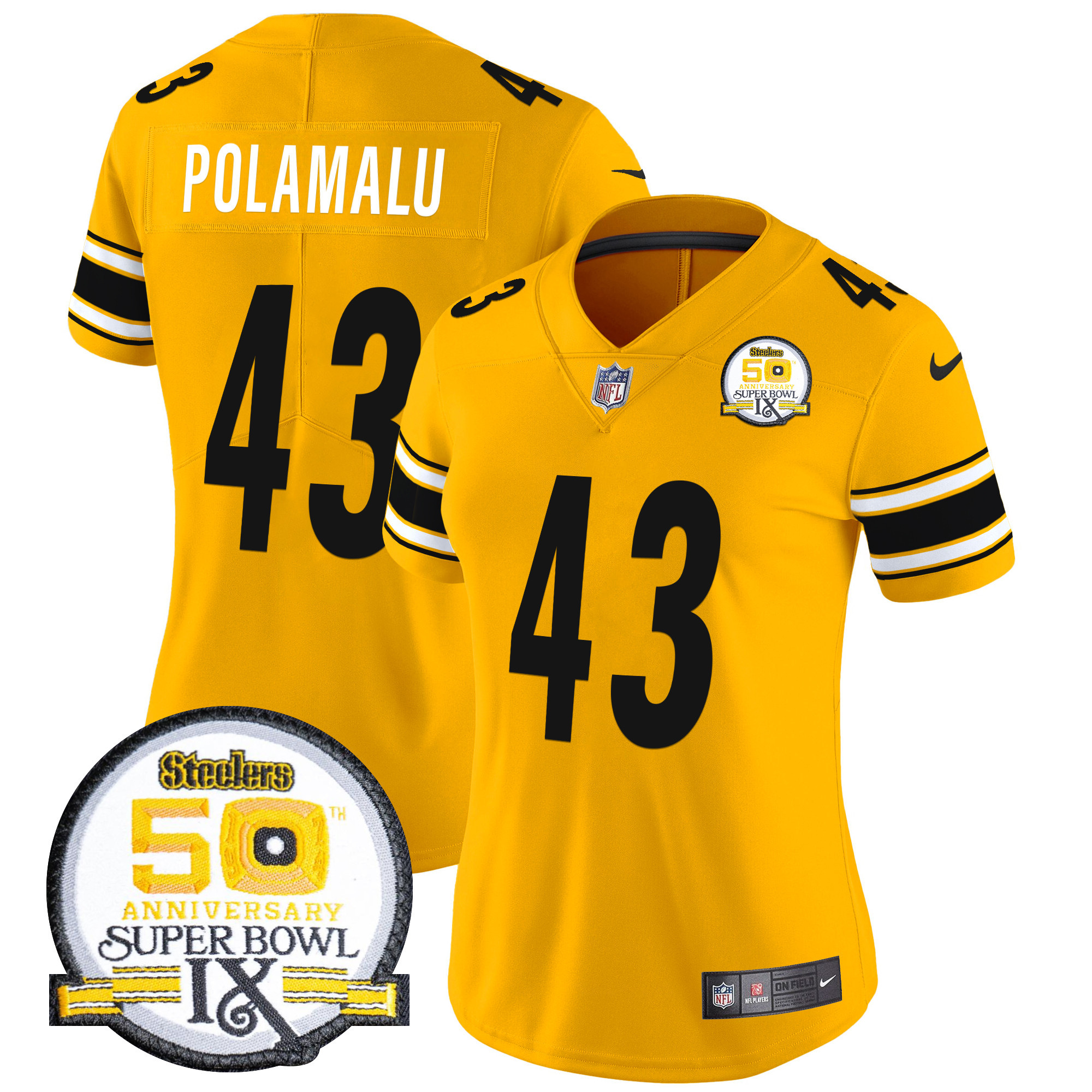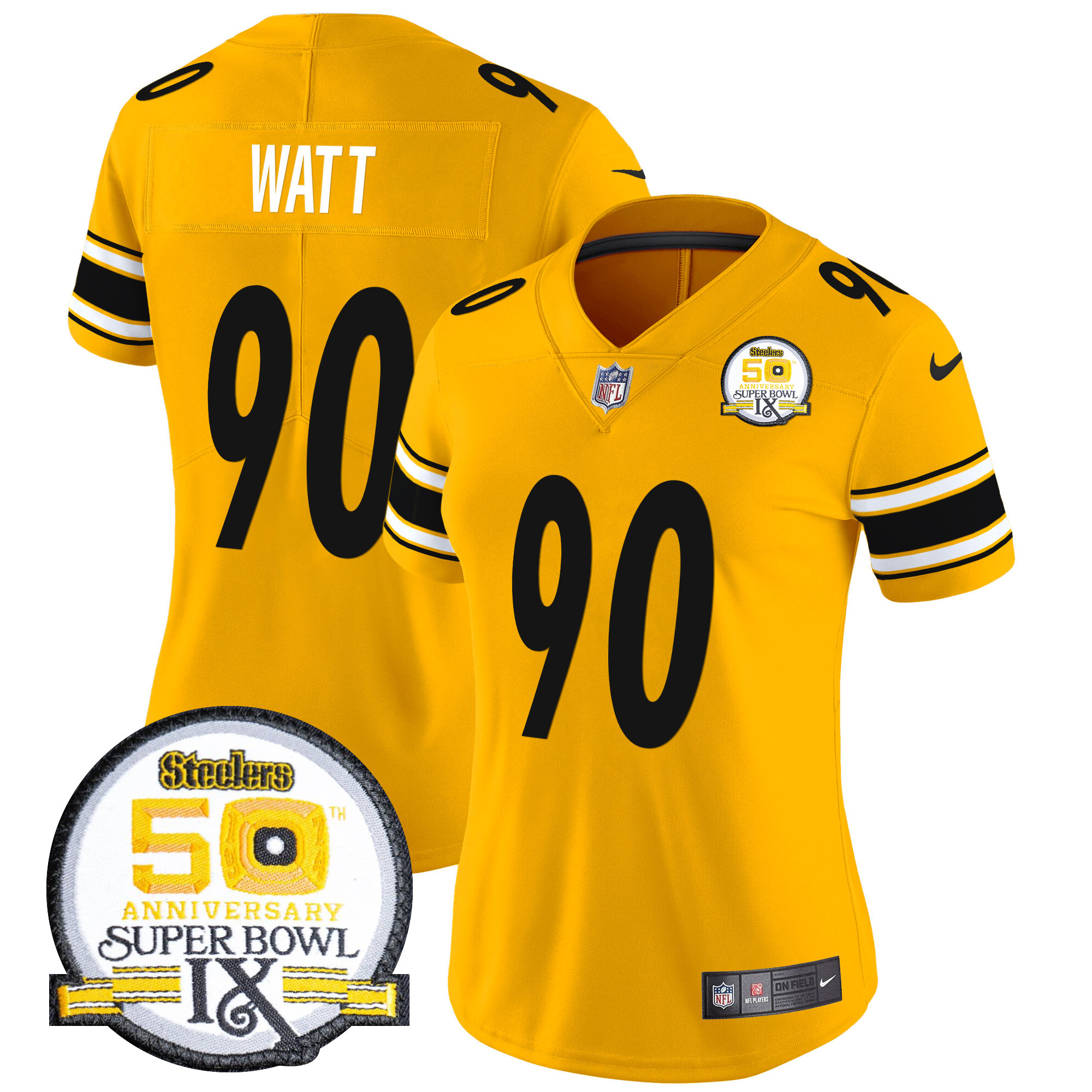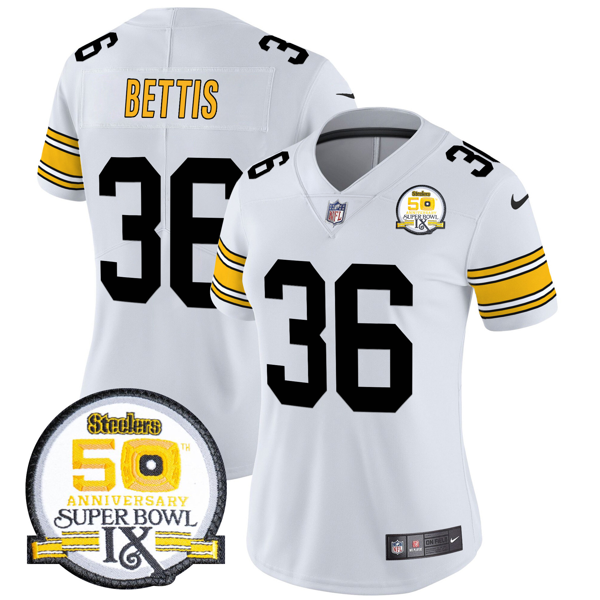 Women’s Pittsburgh Steelers 50th Anniversary Of Super Bowl IX Patch Vapor Limited Jersey – All Stitched