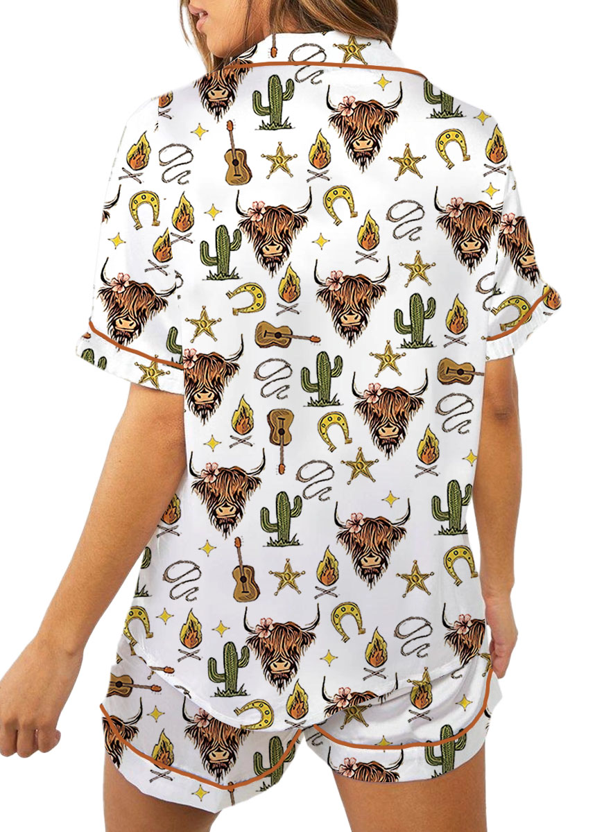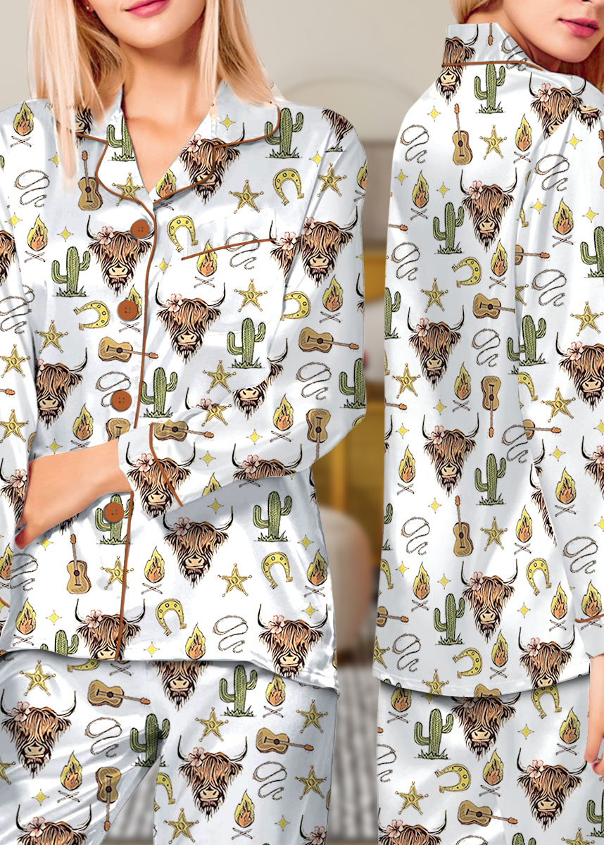 Women’s Rustic Americana Western Satin Pajama Set For Women