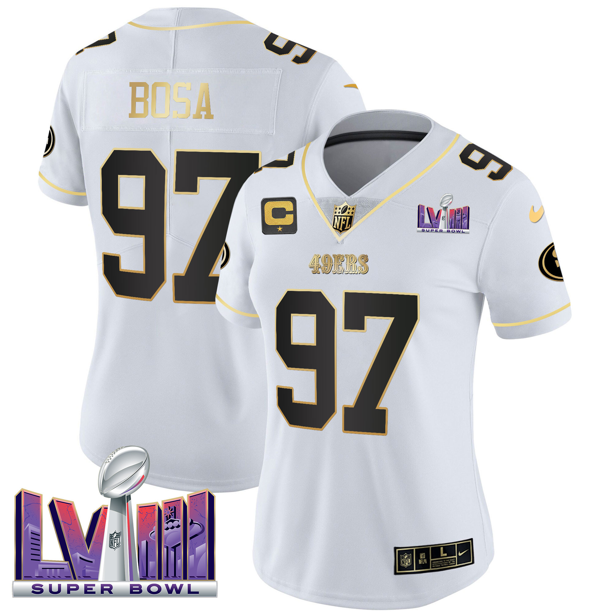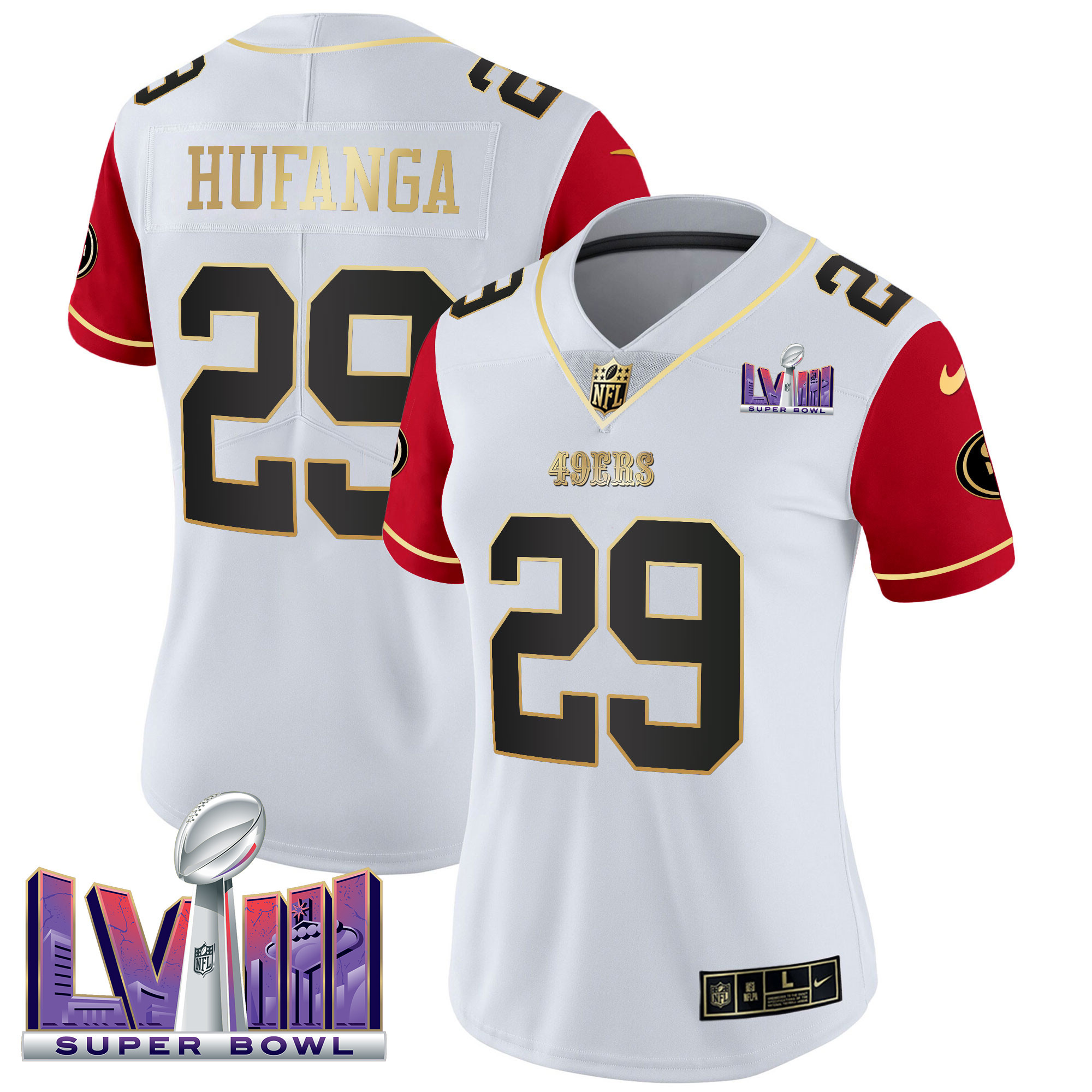 Women’s San Francisco 49ers Super Bowl LVIII Patch Vapor Jersey V2 – All Stitched