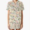 Women’s Summer Satin Pajamas Set, Cartoon Food Print Lapel Button Short Satin Pajama Set
