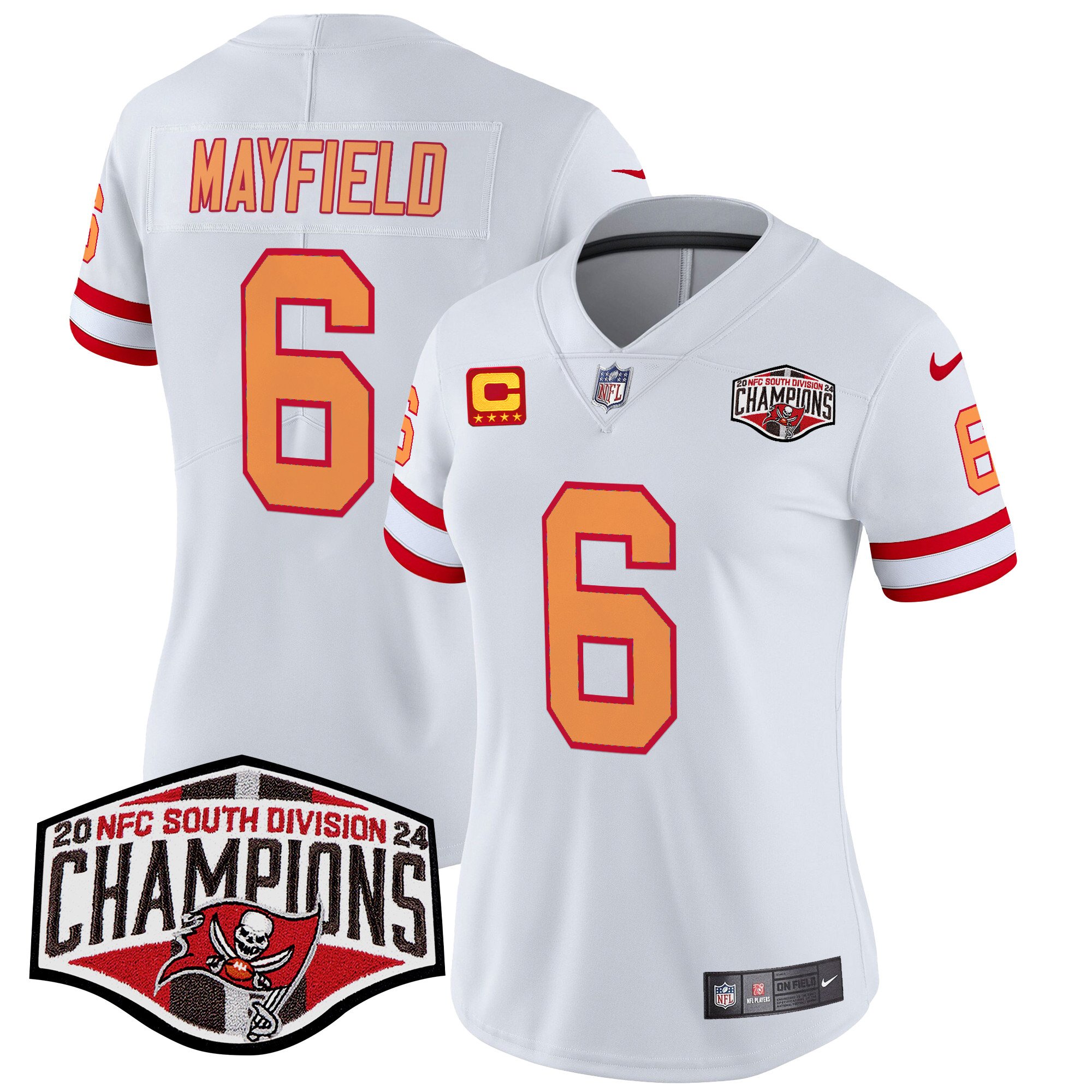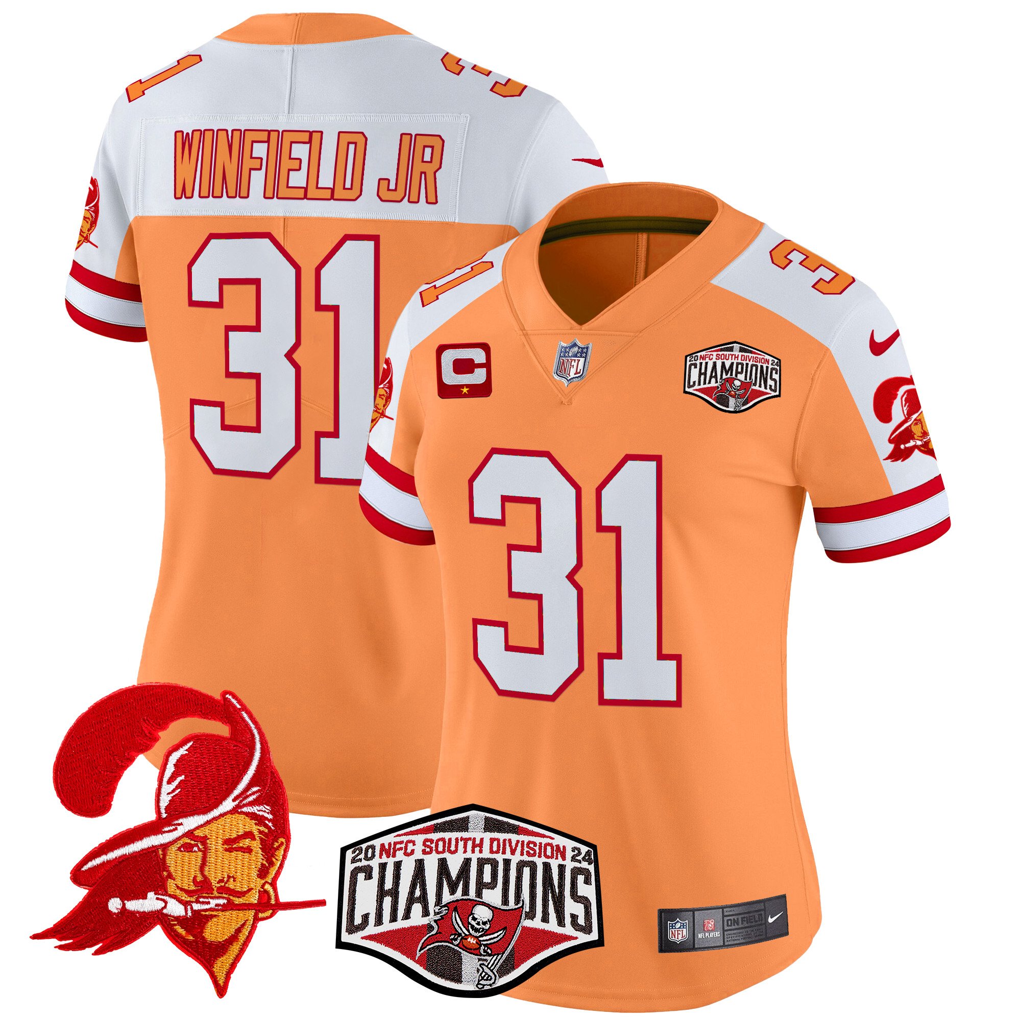 Women’s Tampa Bay Buccaneers Creamsicle 2024 NFC South Division Champions Patch Vapor Limited Jersey – All Stitched