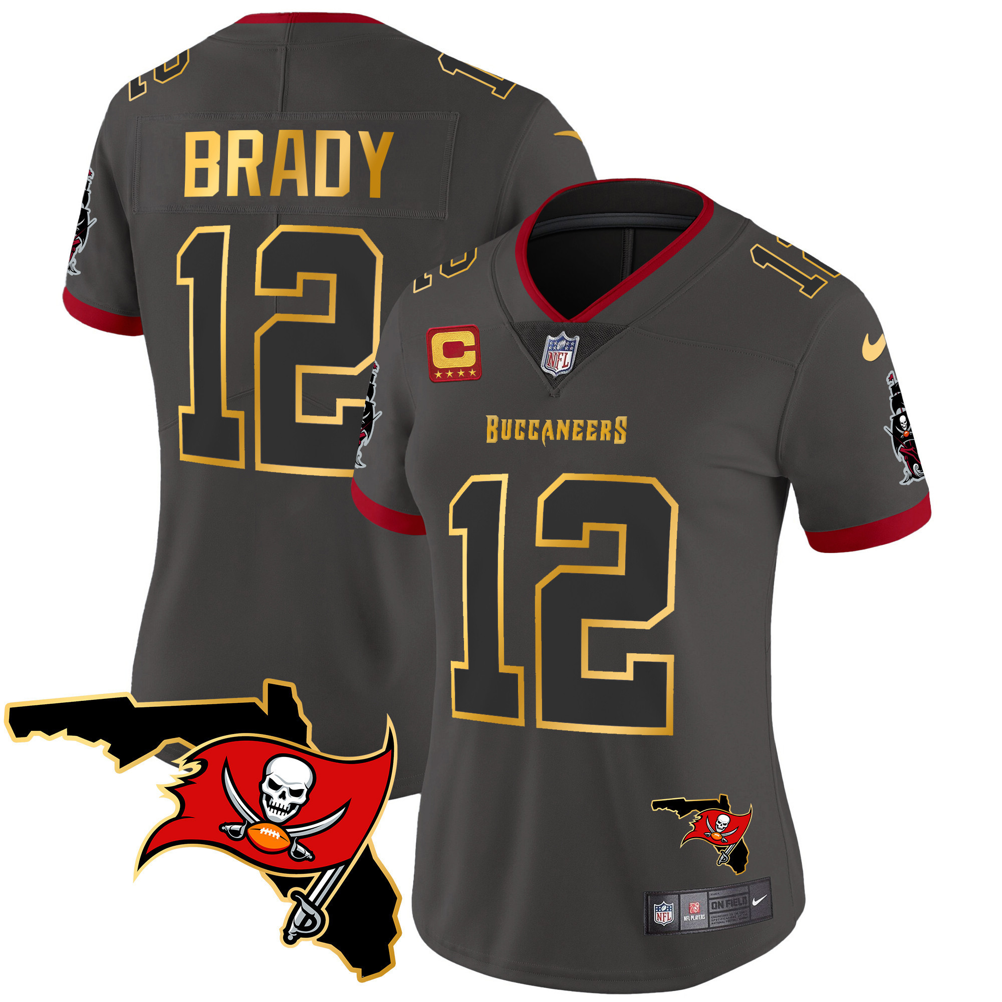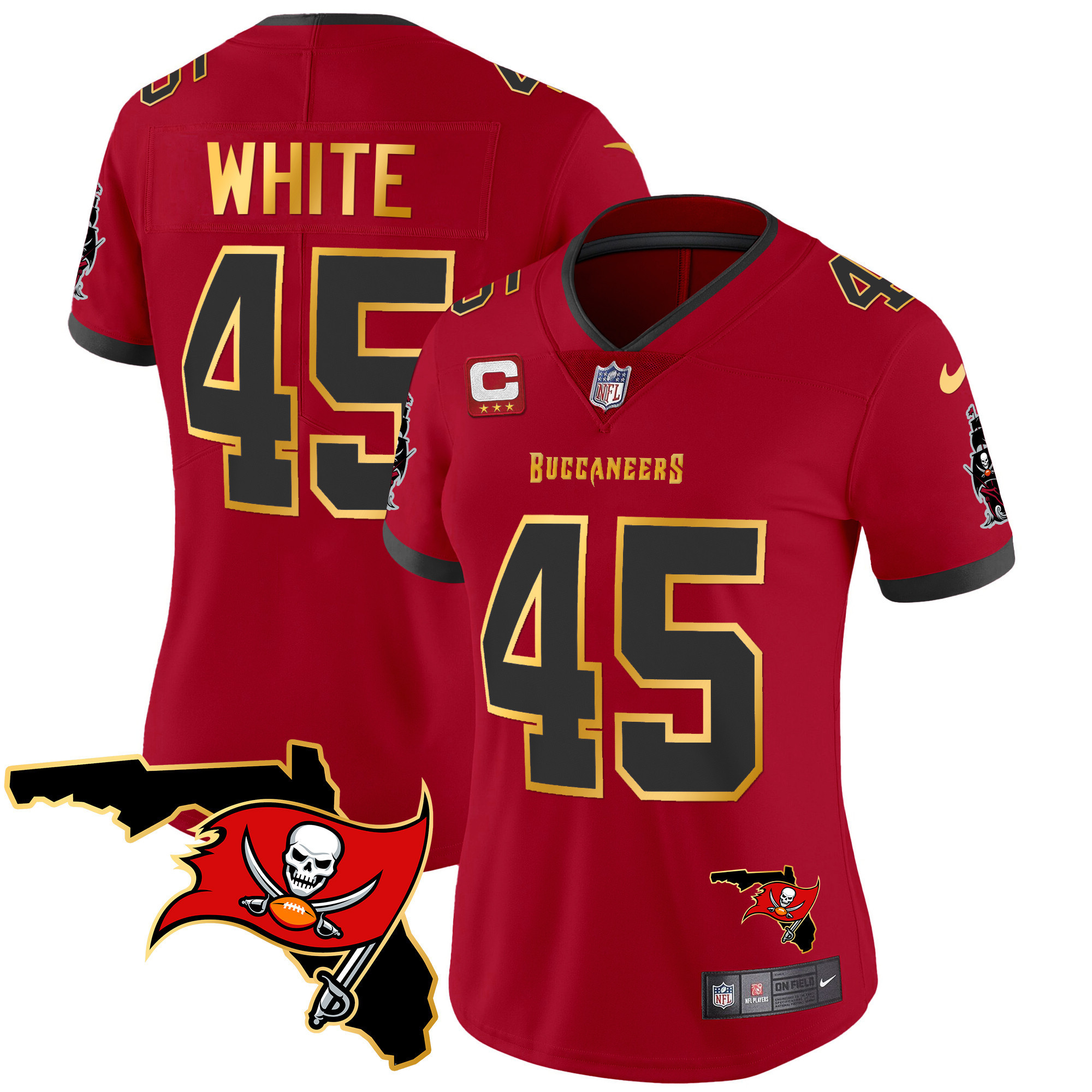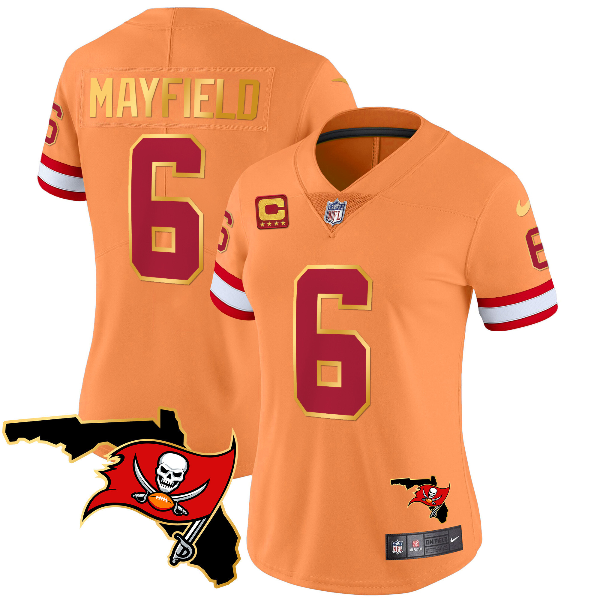 Women’s Tampa Bay Buccaneers Florida Patch Gold Trim Vapor Jersey – All Stitched